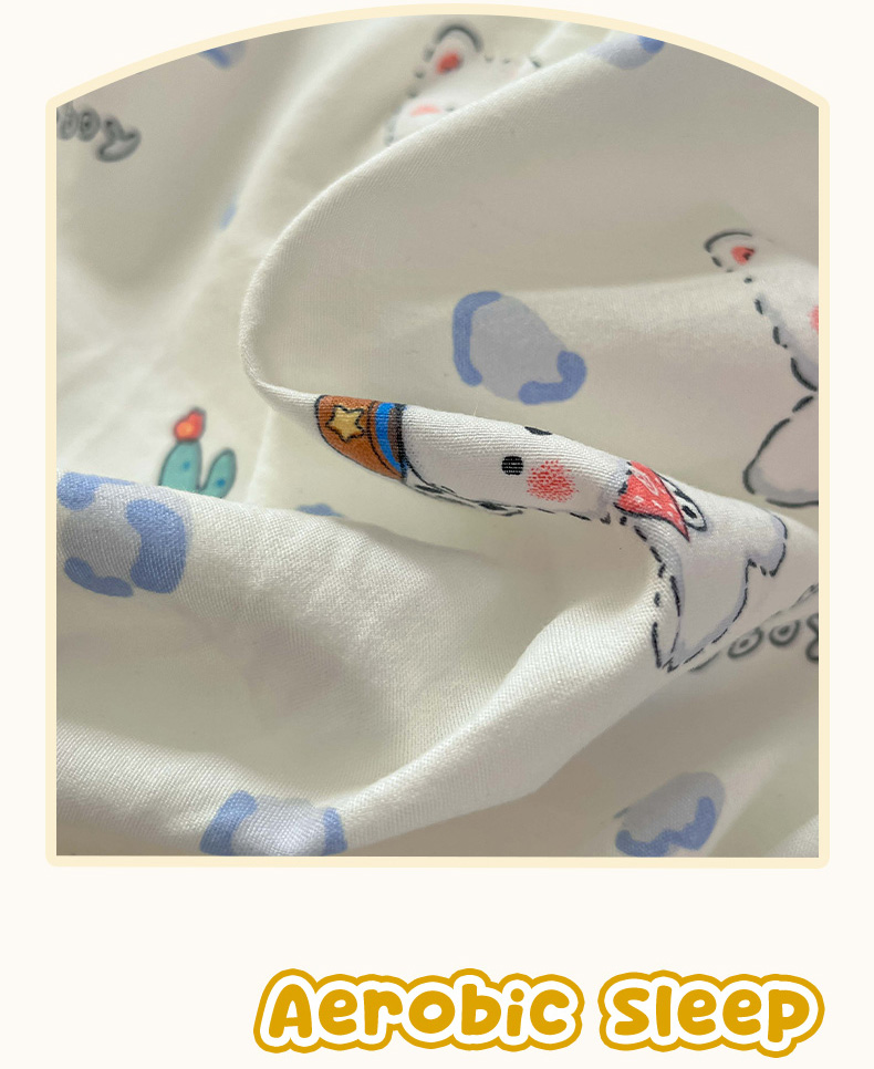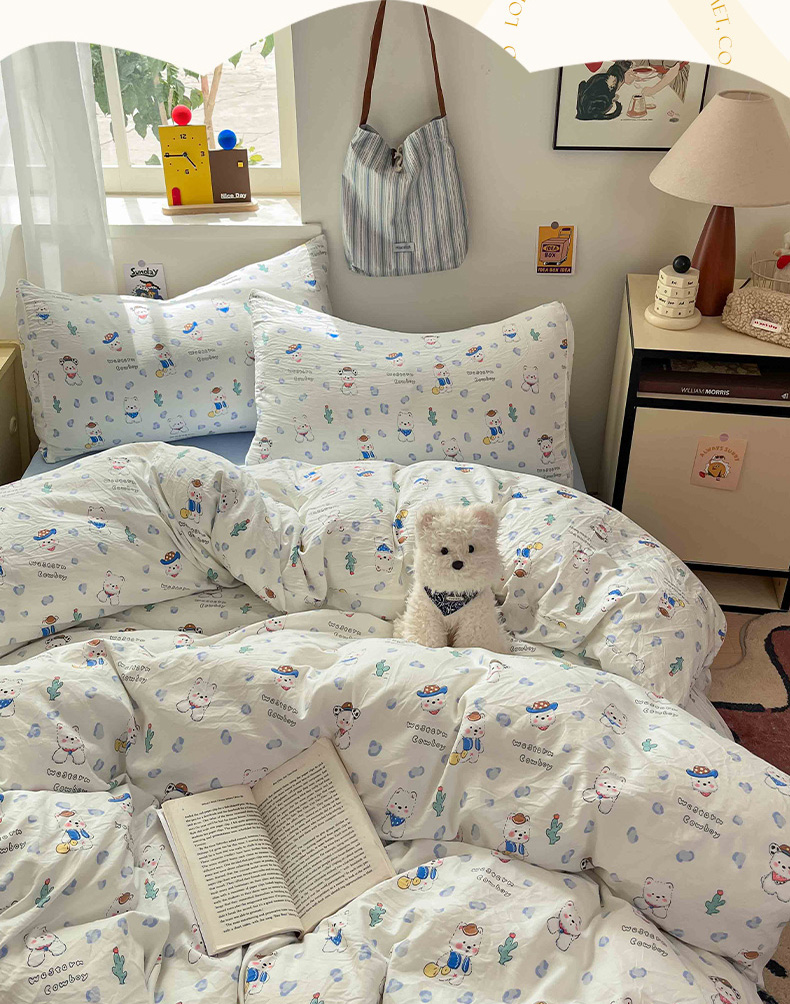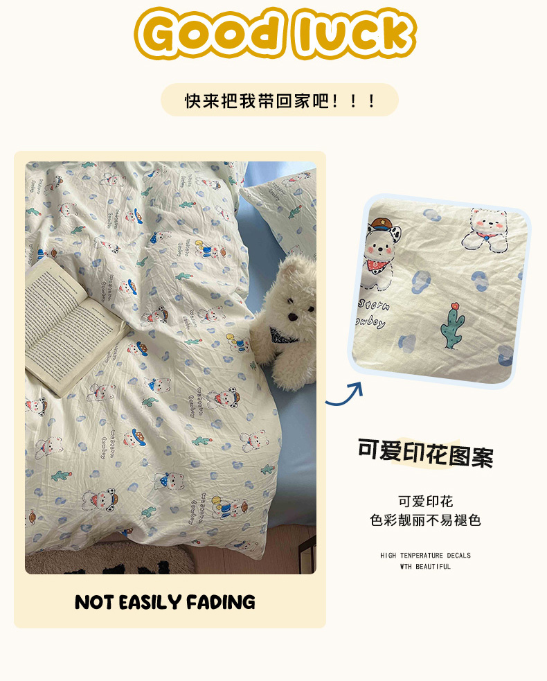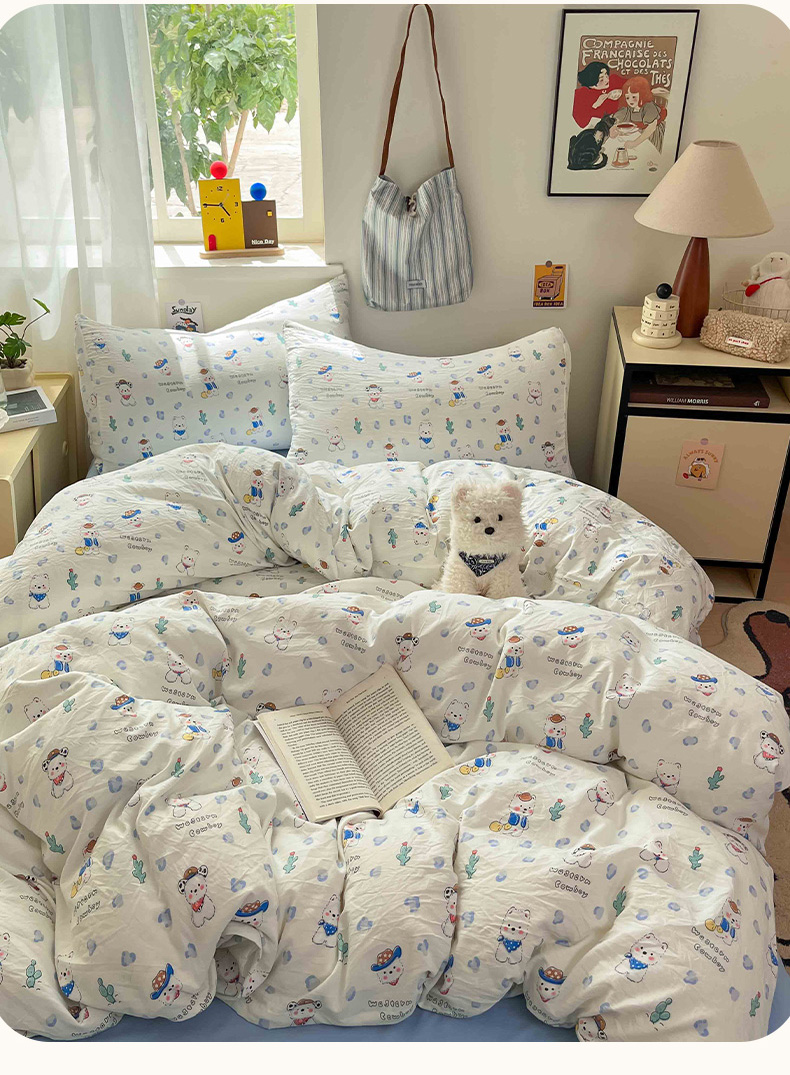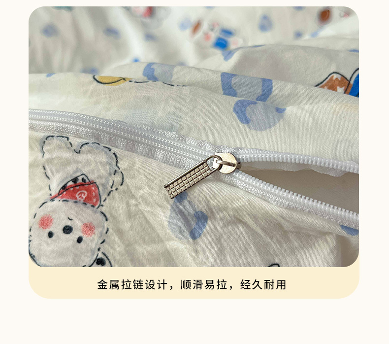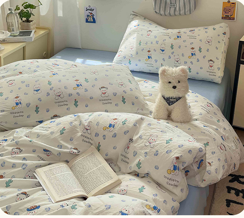 商品名称:罗亿家纺 2025新款软绵绵的双拼印花小清新水洗云朵棉四件套(含买家秀场景二) 小狗安安蓝
