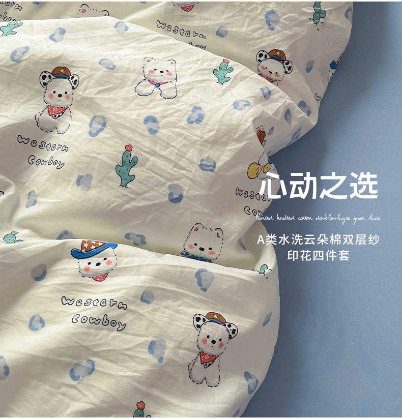 (总)罗亿家纺 2026新款A类古法水洗仿棉云感纱四件套,俏皮豹纹-kt-粉,小幸运,花颜,甜品小猫,爱心甜猫,梦境花园,芝士莓莓熊,蝴蝶结,冰淇淋超甜,奶味星人,狗狗乐园,花花kt梦,小时光,小鱼的心事,旋转木马,樱桃格格,葡萄很甜,花集小兔,焦糖LABUBU,梦幻乐园,绿萌兔子,烟花星语