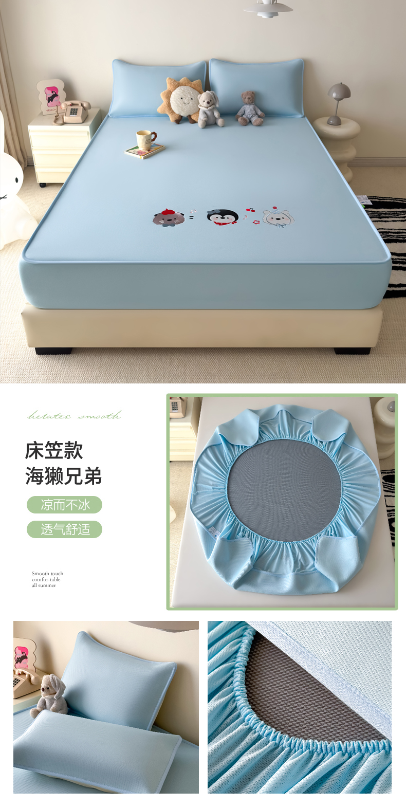 商品名称:九花鹿 2025新款凉感PE卡通冰丝席-床笠款 床笠款-海獭兄弟