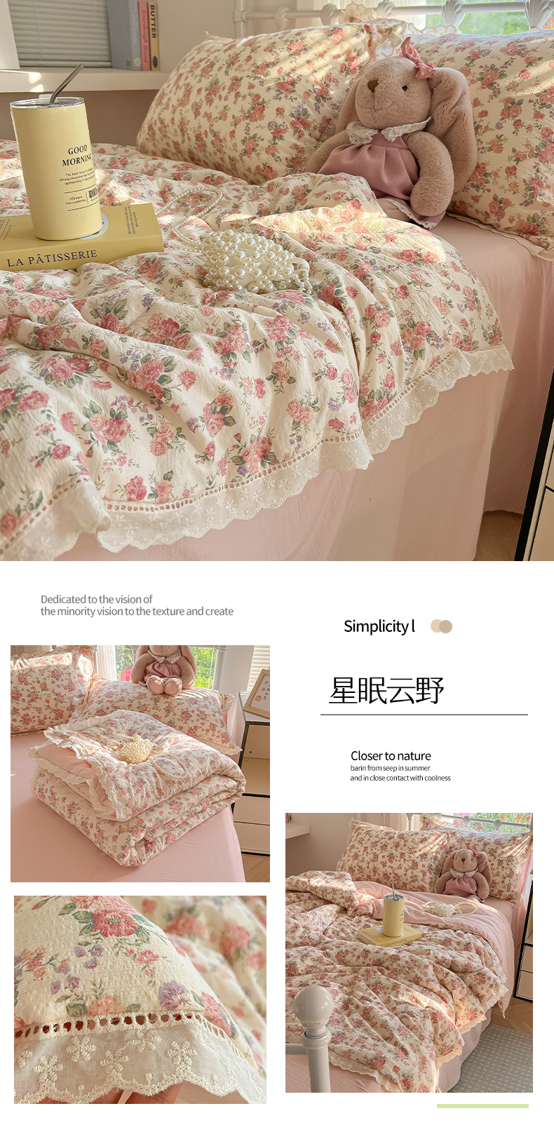 商品名称:(总)罗亿家纺 2025新款全棉花边云感双层纱夏被