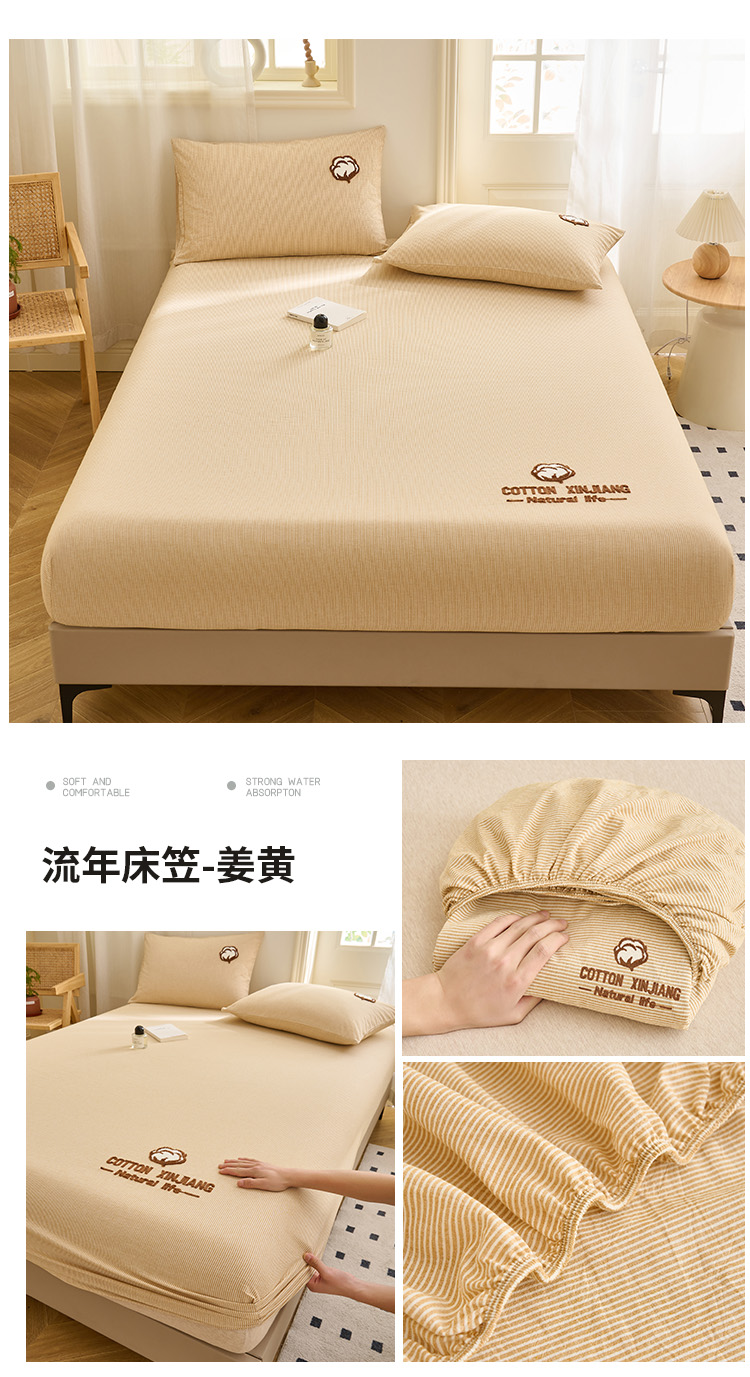 早晨家纺 2025新款色织纯棉水洗棉毛巾绣床笠 流年床笠-姜黄