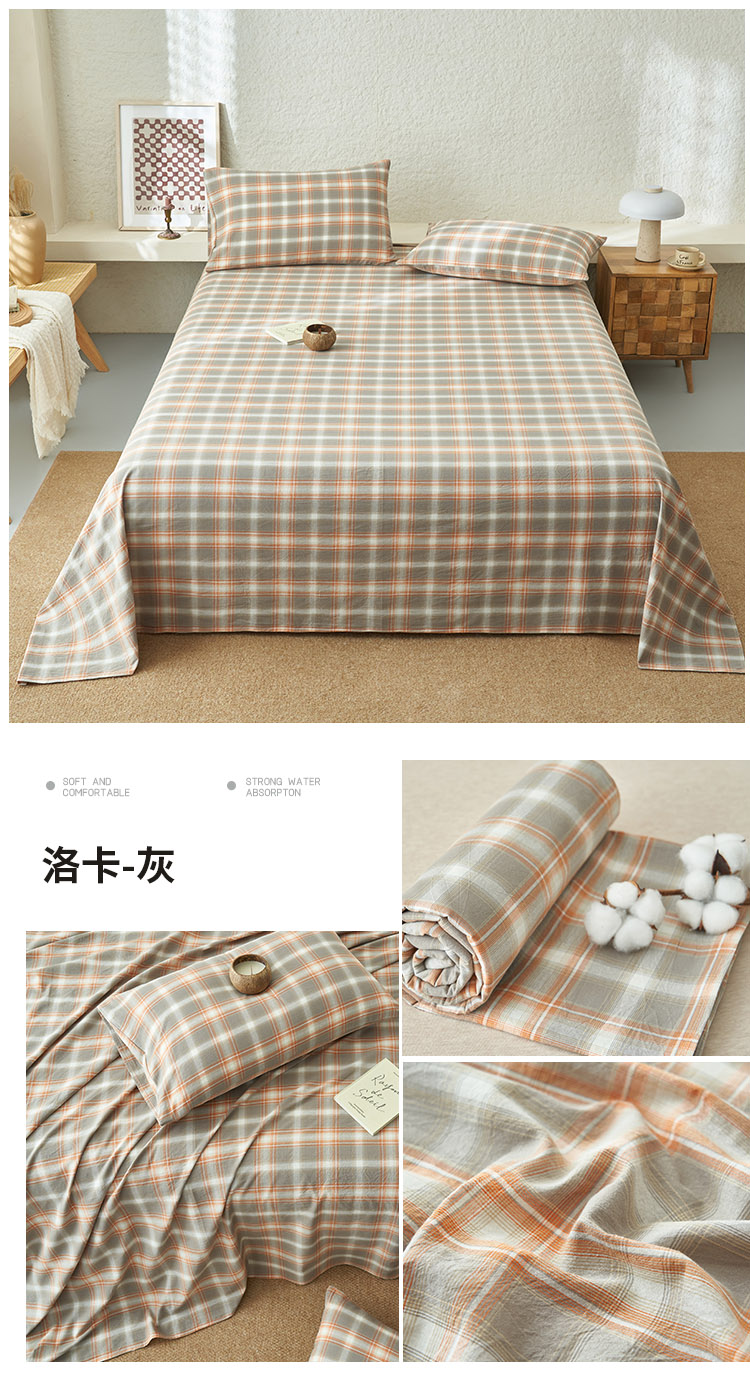 • 91家纺网 家纺一手货源 找家纺 早晨家纺 2025新款色织纯棉水洗棉床单 洛卡-灰