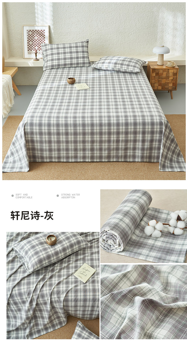 早晨家纺 2025新款色织纯棉水洗棉床单 轩尼诗-灰