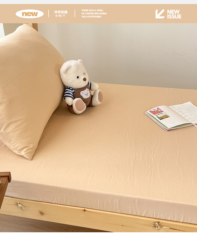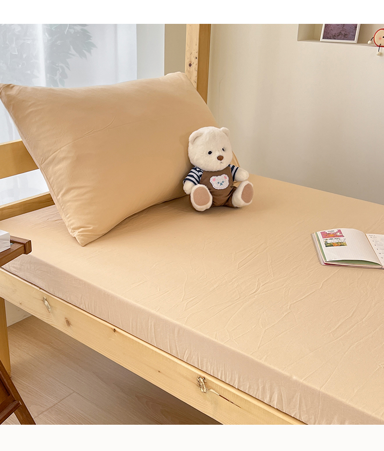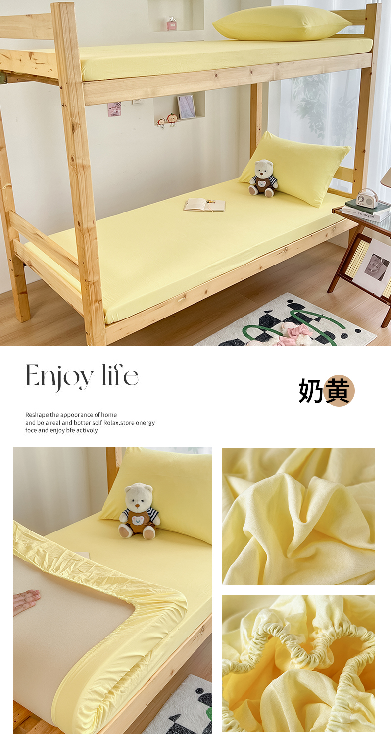 多品家纺 2025春夏新款超柔水洗棉学生宿舍床笠 杏黄