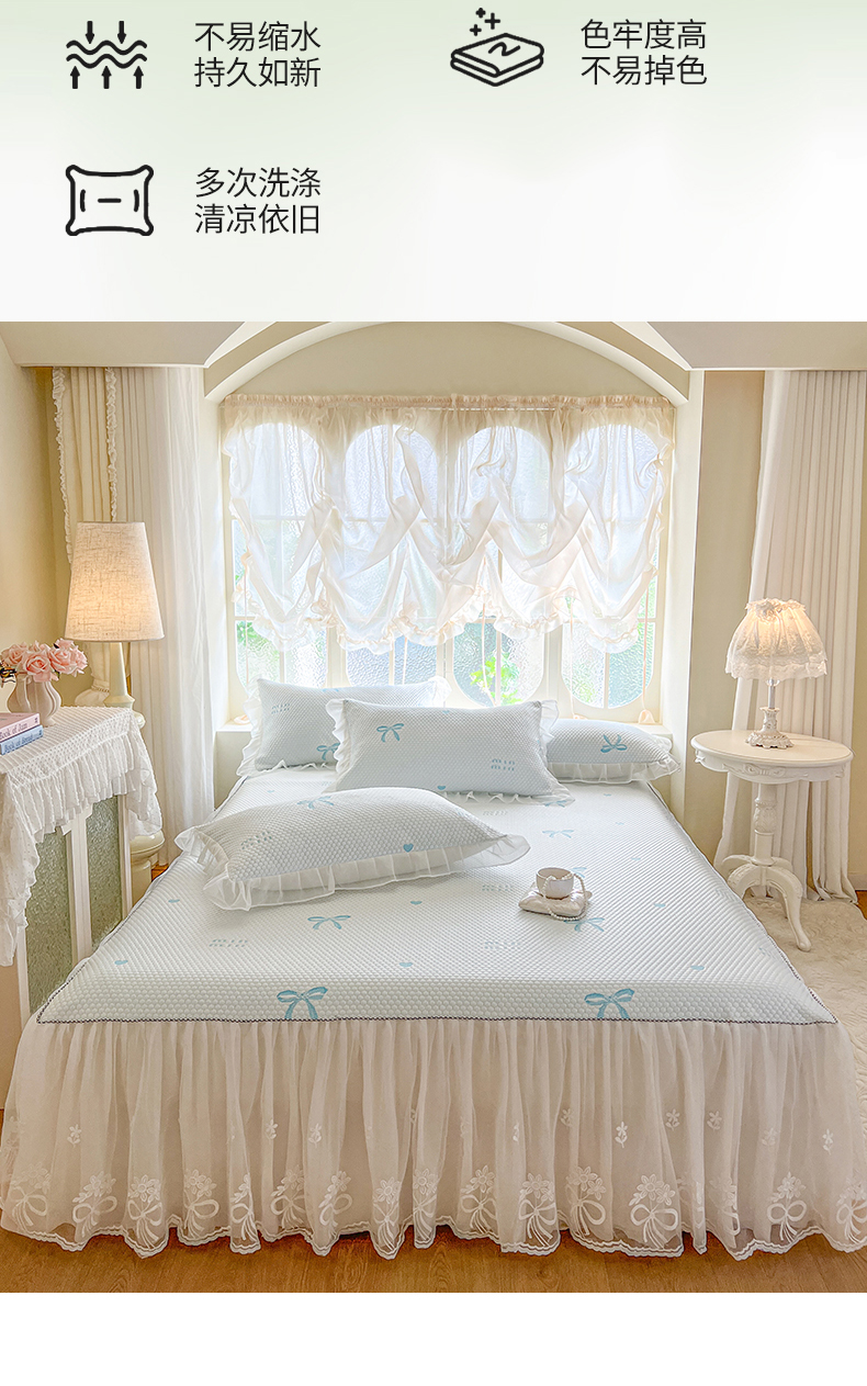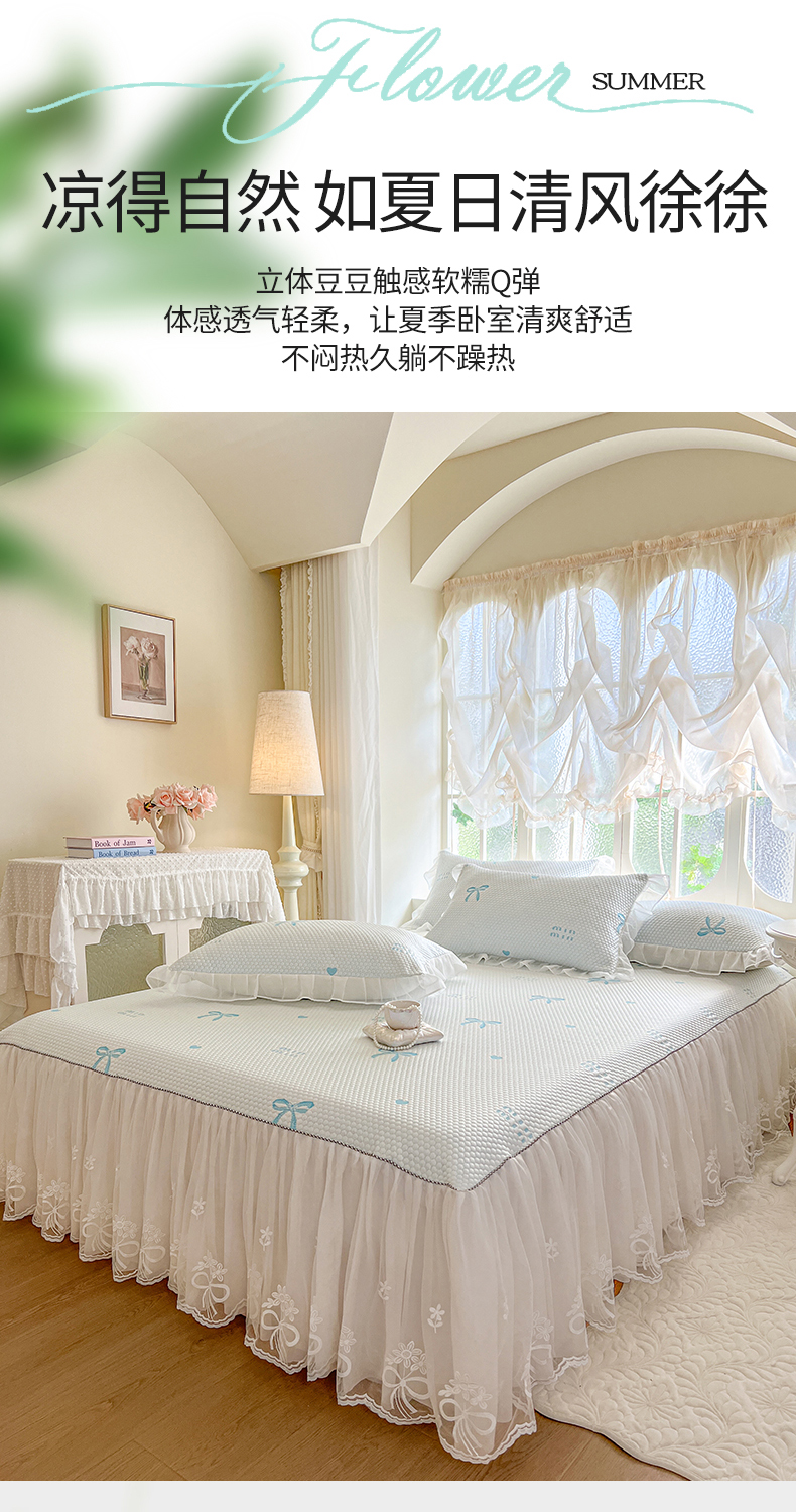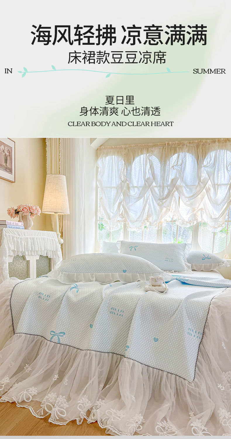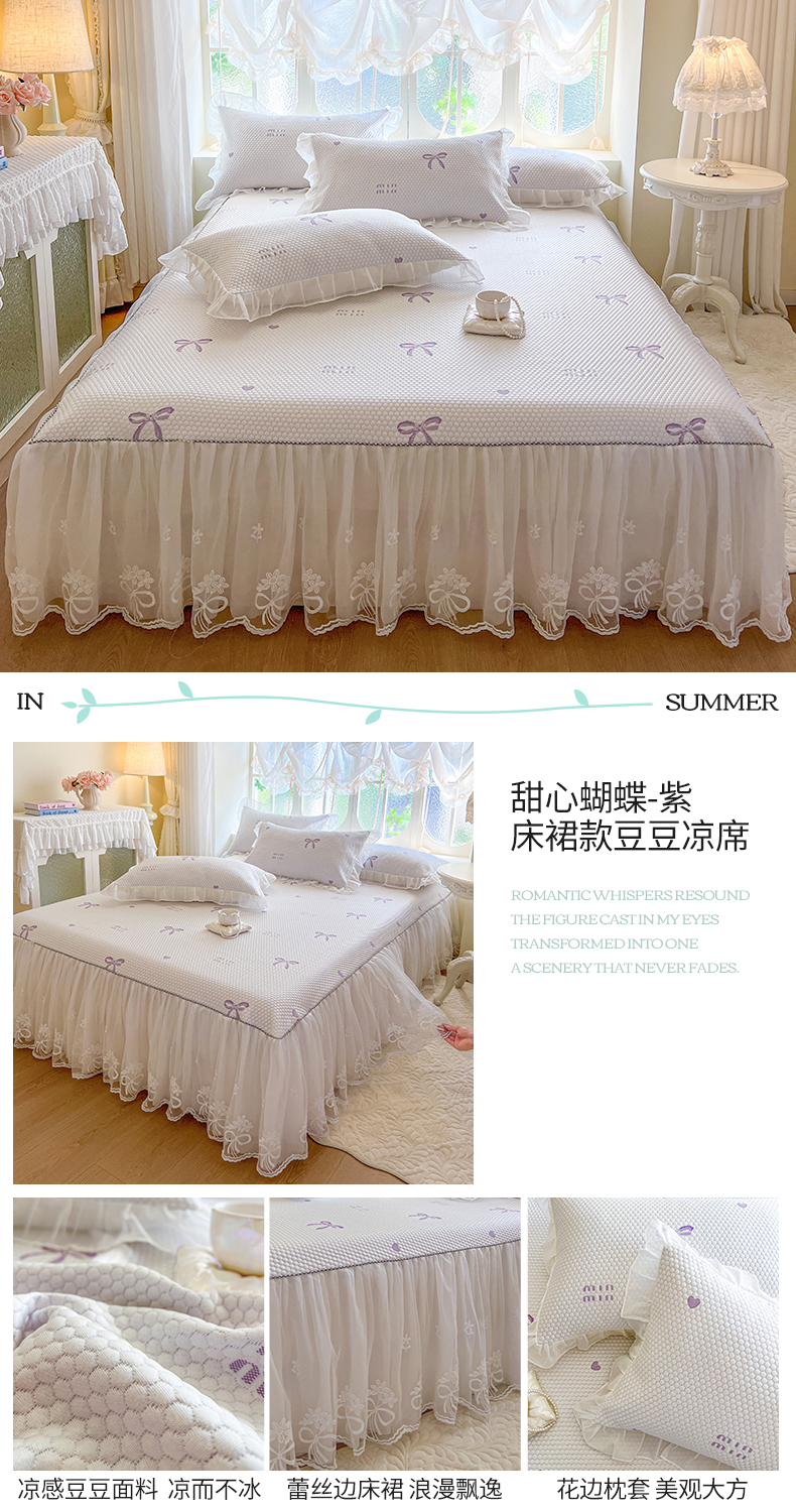 网红馆(ck家纺) 2025新款床裙款豆豆凉感席凉席席子-甜心蝴蝶 甜心蝴蝶-天蓝
