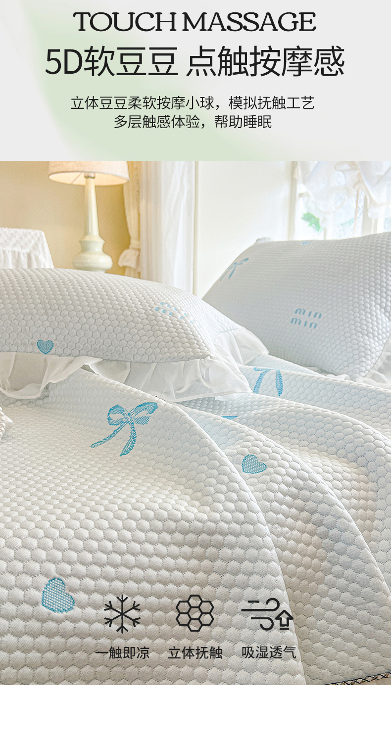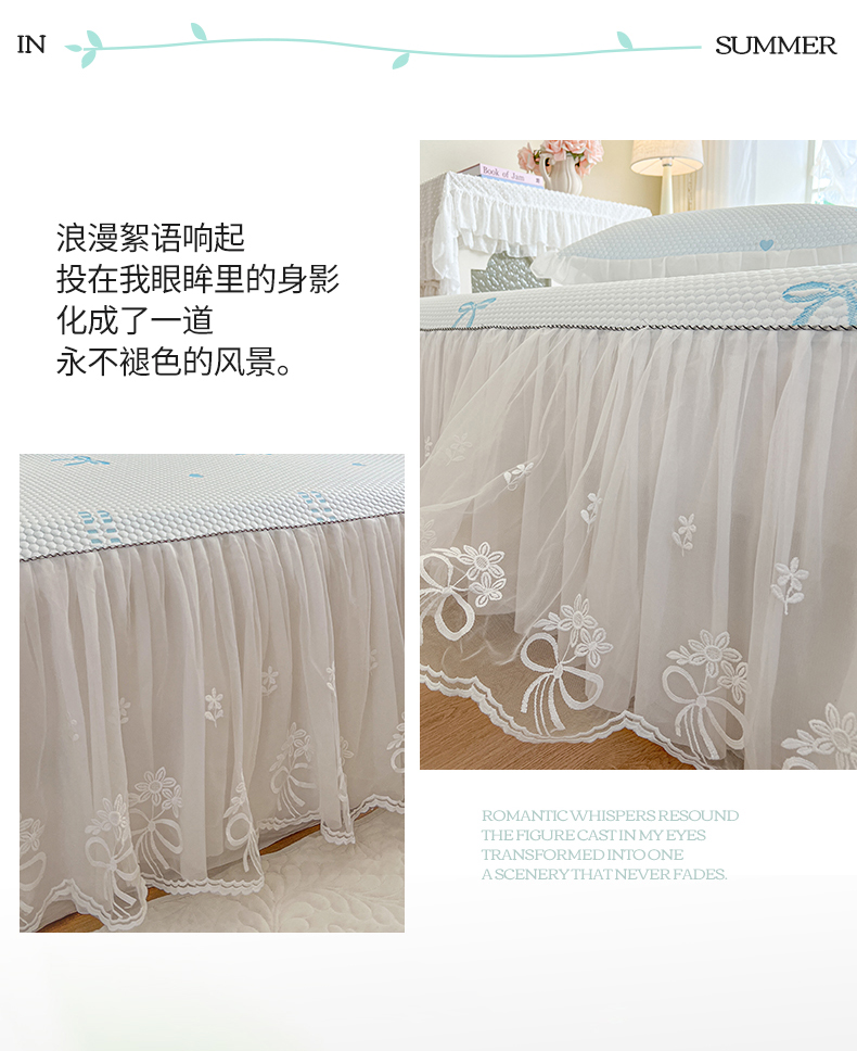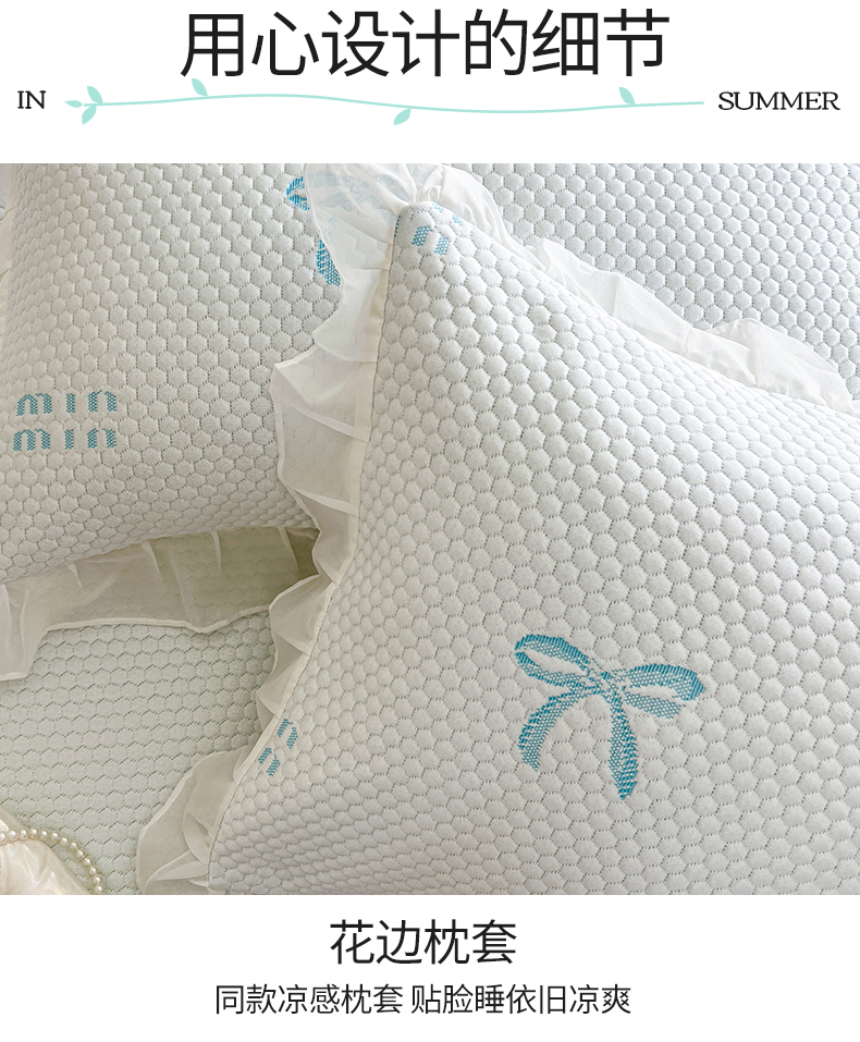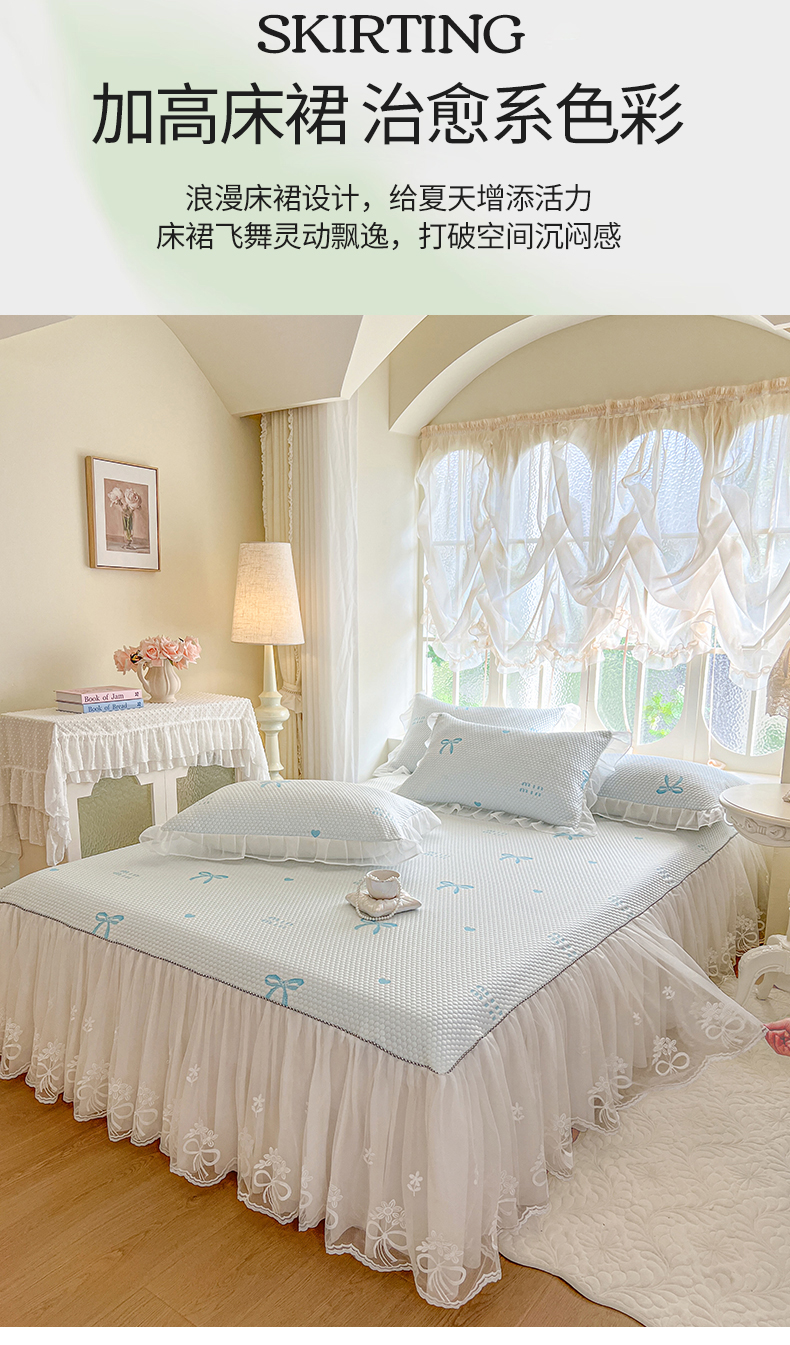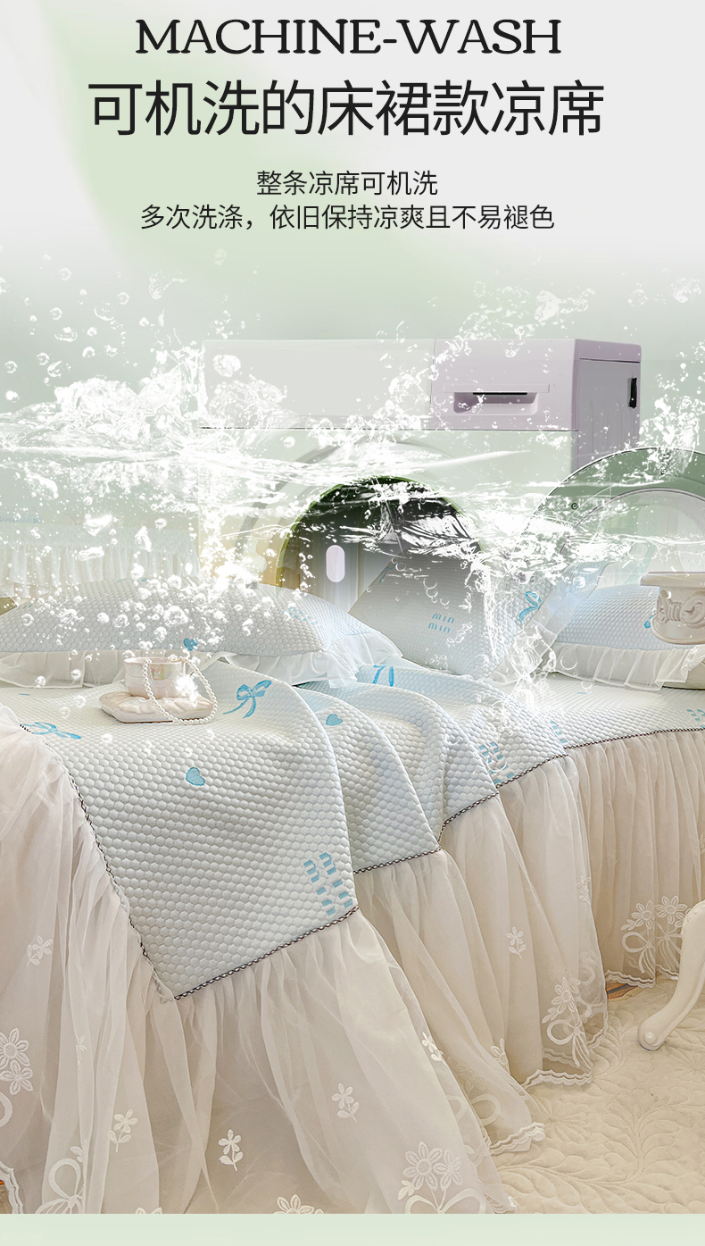 网红馆(ck家纺) 2025新款床裙款豆豆凉感席凉席席子-甜心蝴蝶 甜心蝴蝶-天蓝