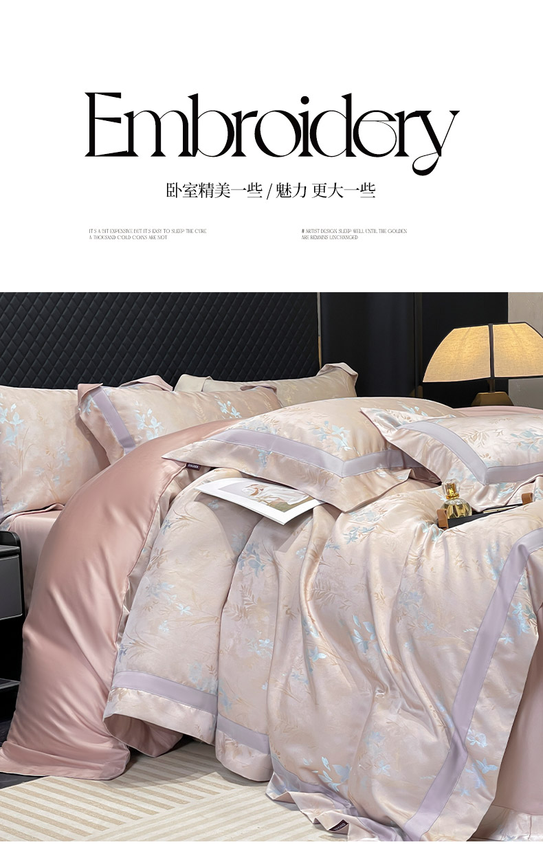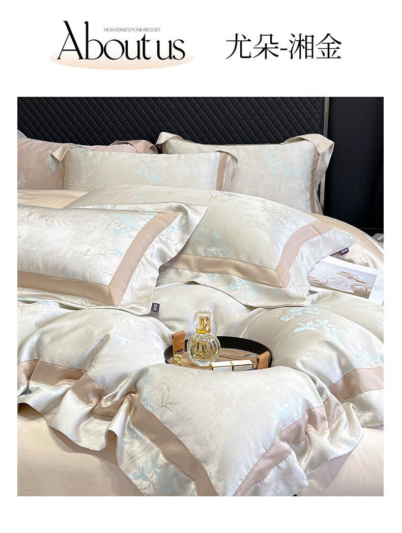 当前位置: 91家纺网 > 商品网购 > 床品套件 > 四件套 > 提花四件套 > 2025春夏新款A类天丝棉贡缎提花四件套真丝全工艺丝滑裸睡床单床笠爆款床上用品 尤朵-芸粉