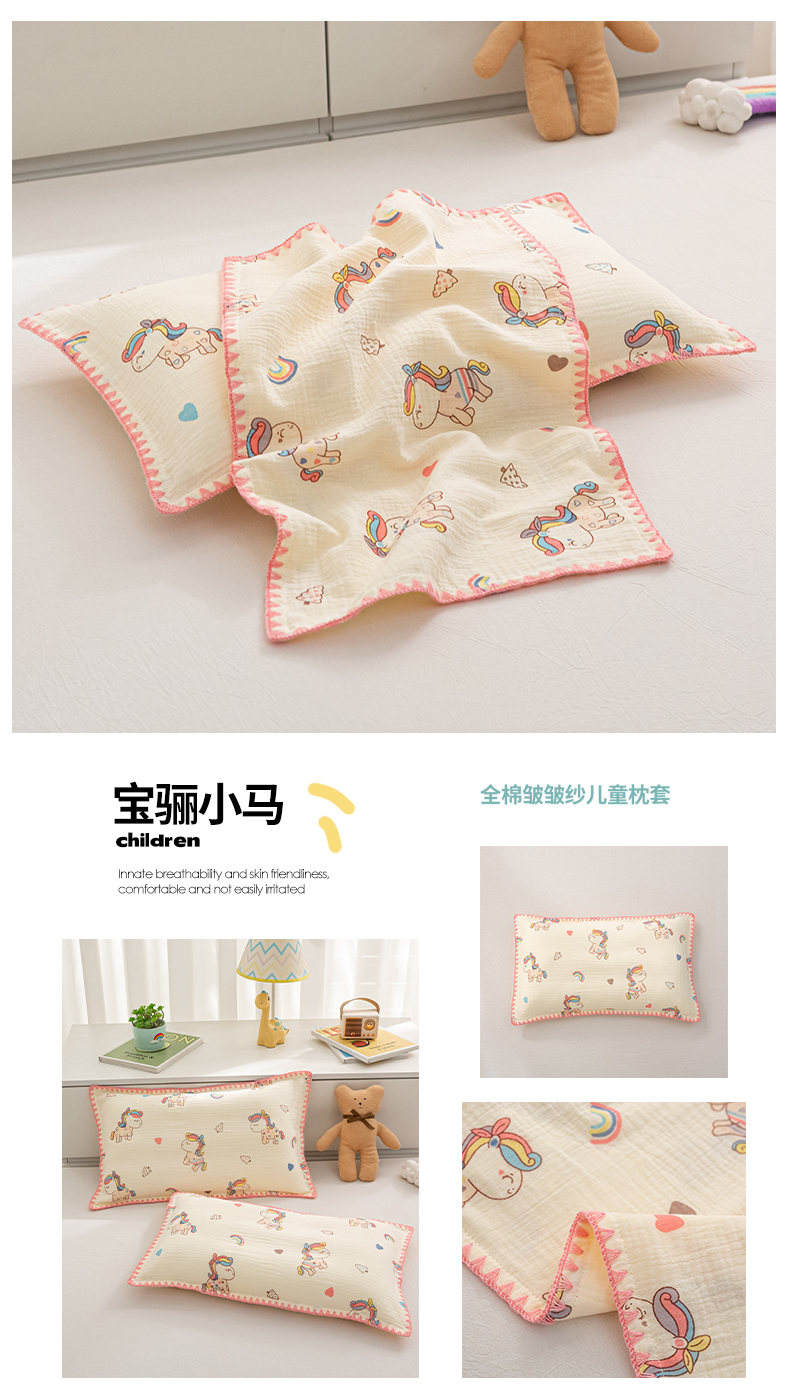 • 91家纺网 家纺一手货源 找家纺 萌番宝 2025春夏新款纯棉A类全棉纯棉皱皱双层纱枕套工艺枕套儿童学生成人枕套单枕套 宝骊小马