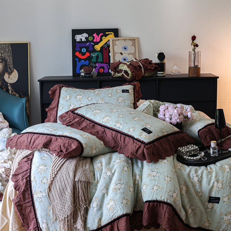 紫碧螺家纺 2025新款A类全棉纯棉仙女双层纱大韩边四件套 仙境少女