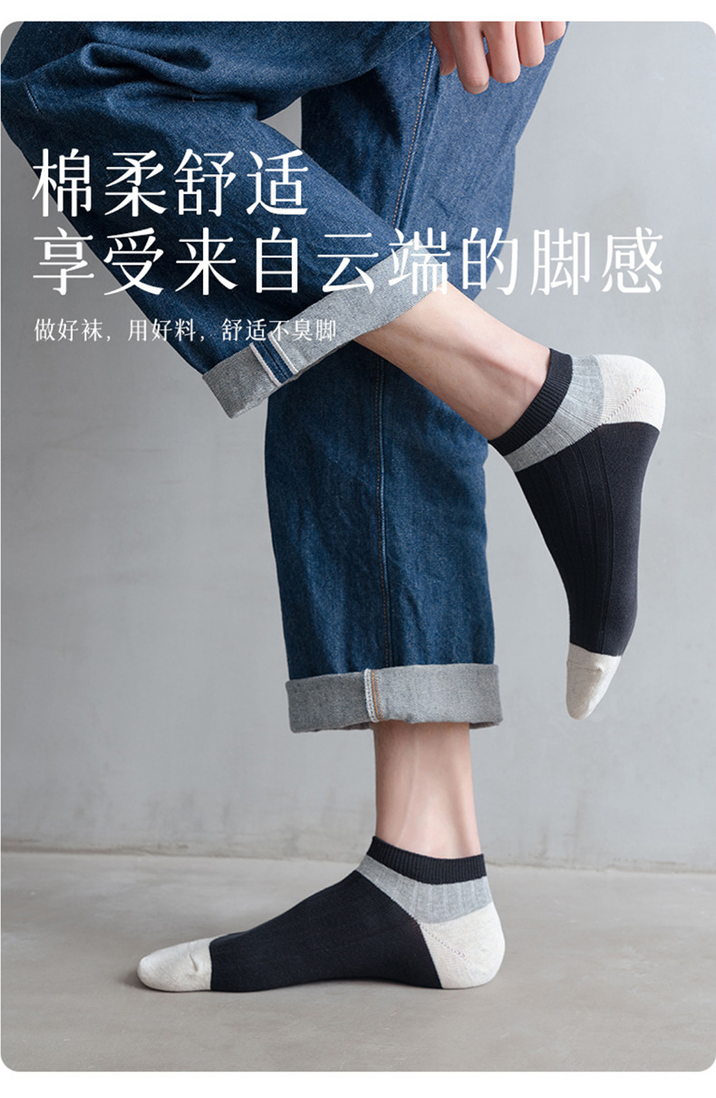 【男士拼色暗纹短袜】日式无印男士拼色暗纹短袜良品百搭休闲防臭7A抑菌吸汗袜子船袜夏,男拼色暗纹短袜-黑色,男拼色暗纹短袜-浅灰,男拼色暗纹短袜-深灰,男拼色暗纹短袜-棕黄,男拼色暗纹短袜-藏青
