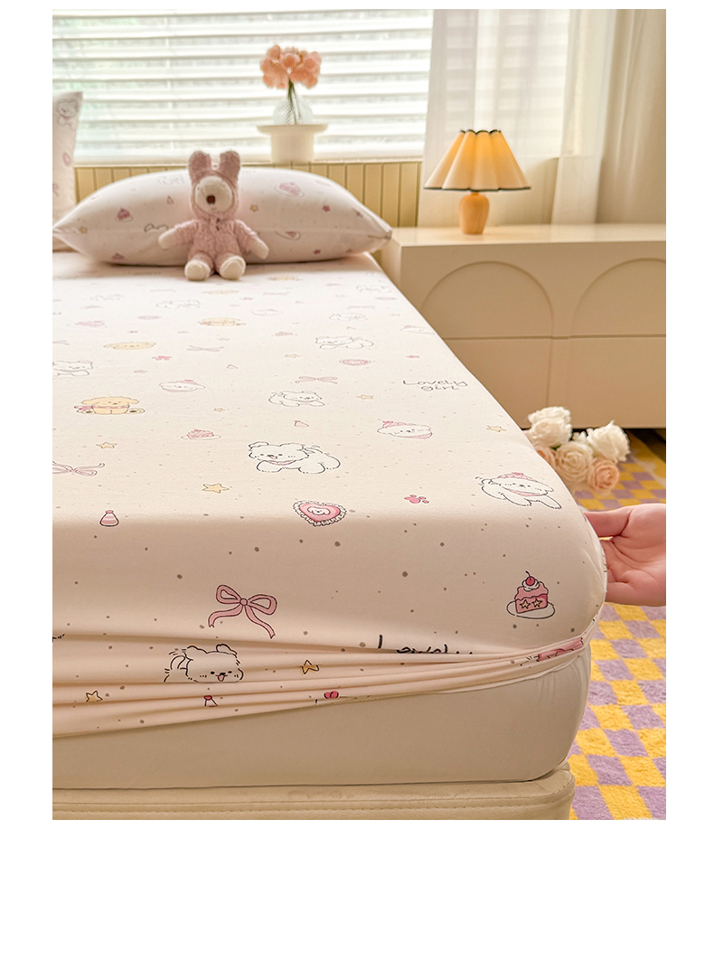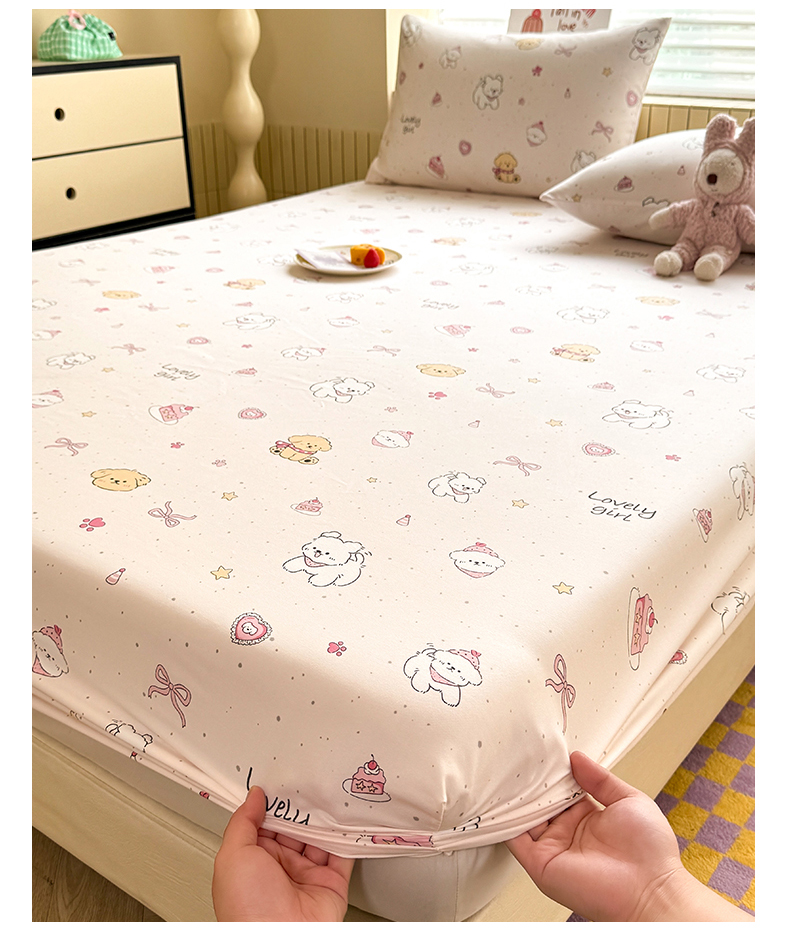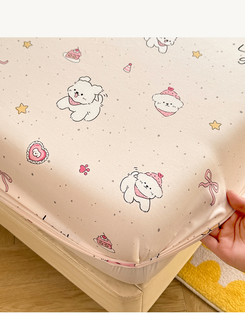 • 91家纺网 家纺一手货源 找家纺 多品家纺 2025春夏新款超柔云感水洗棉单床笠 床笠单件-大床图 蛋糕狗