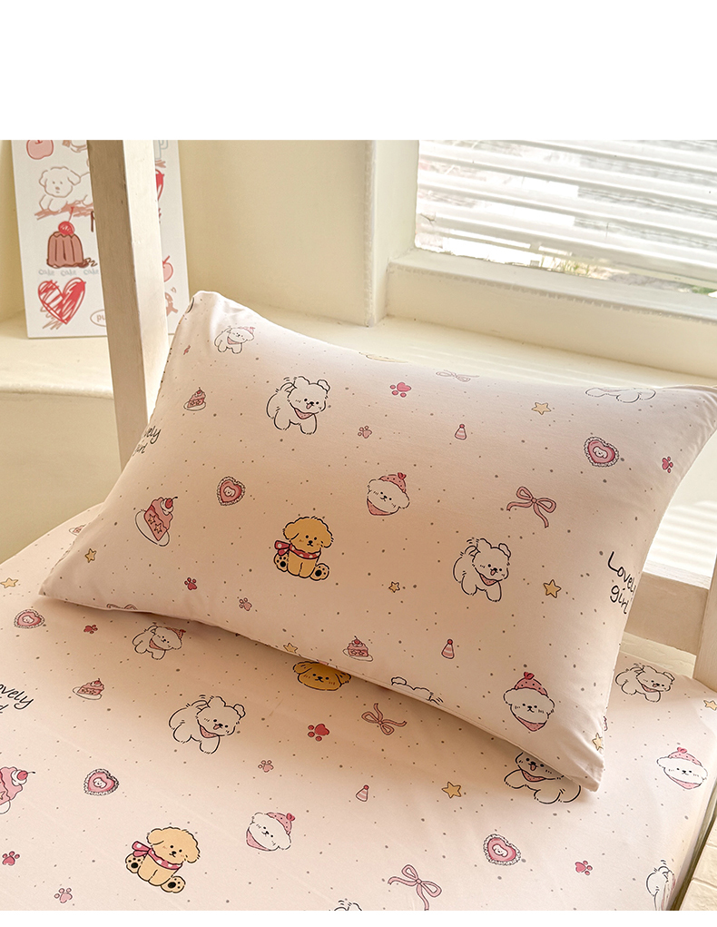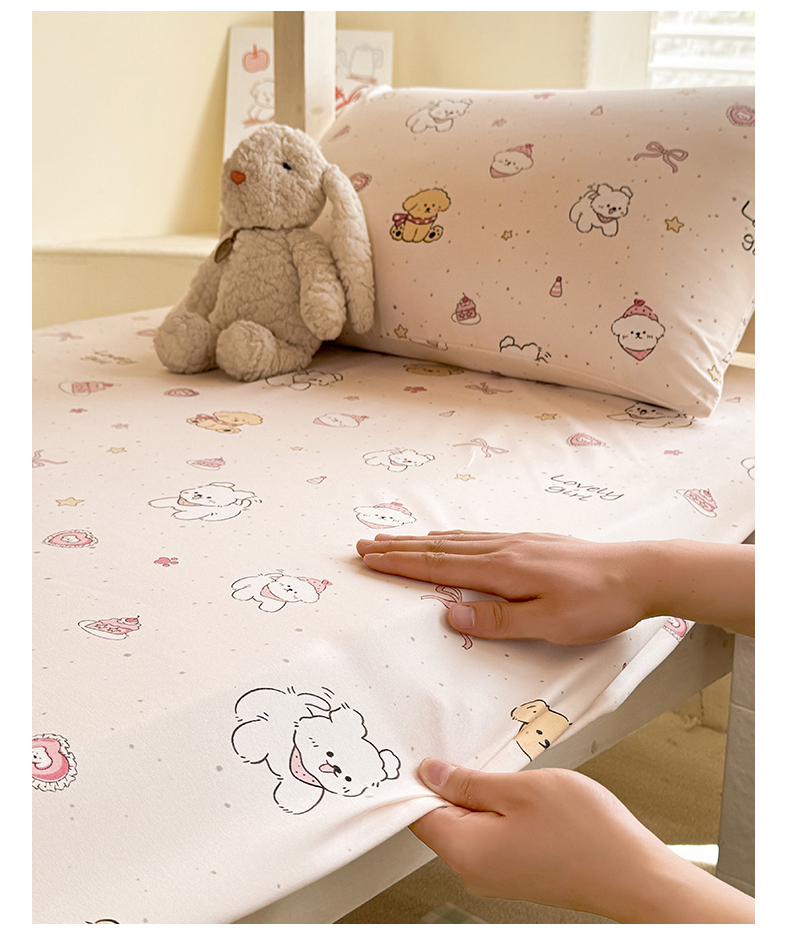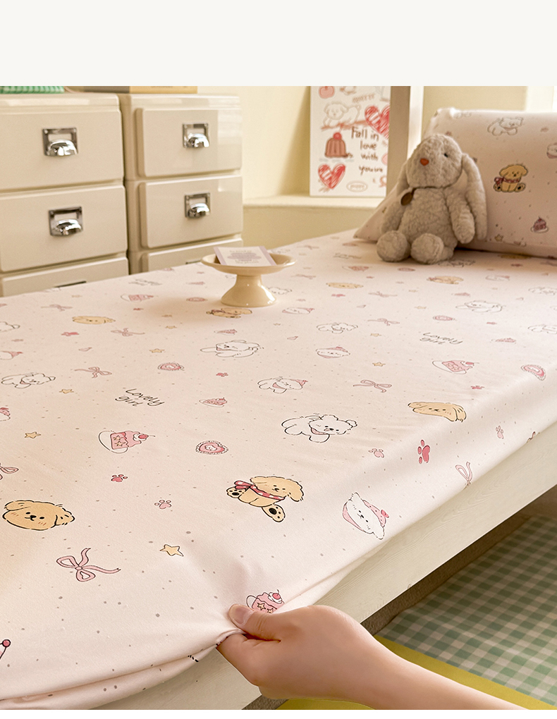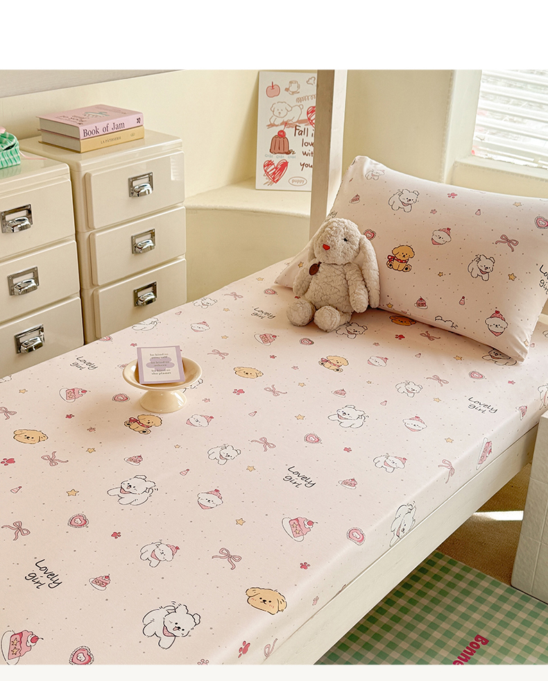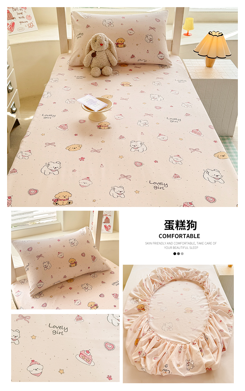 • 91家纺网 家纺一手货源 找家纺 多品家纺 2025春夏新款超柔云感水洗棉单床笠 床笠单件-学生宿舍床 蛋糕狗