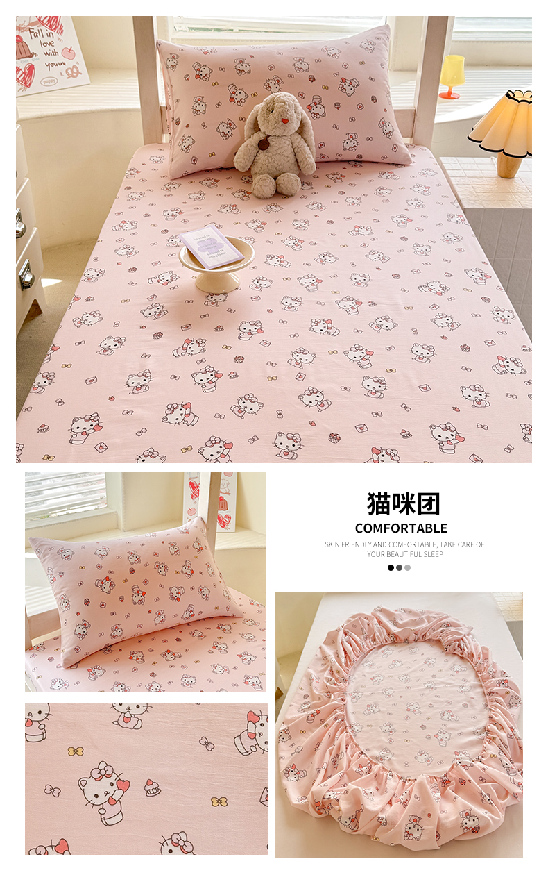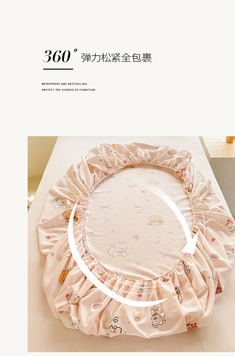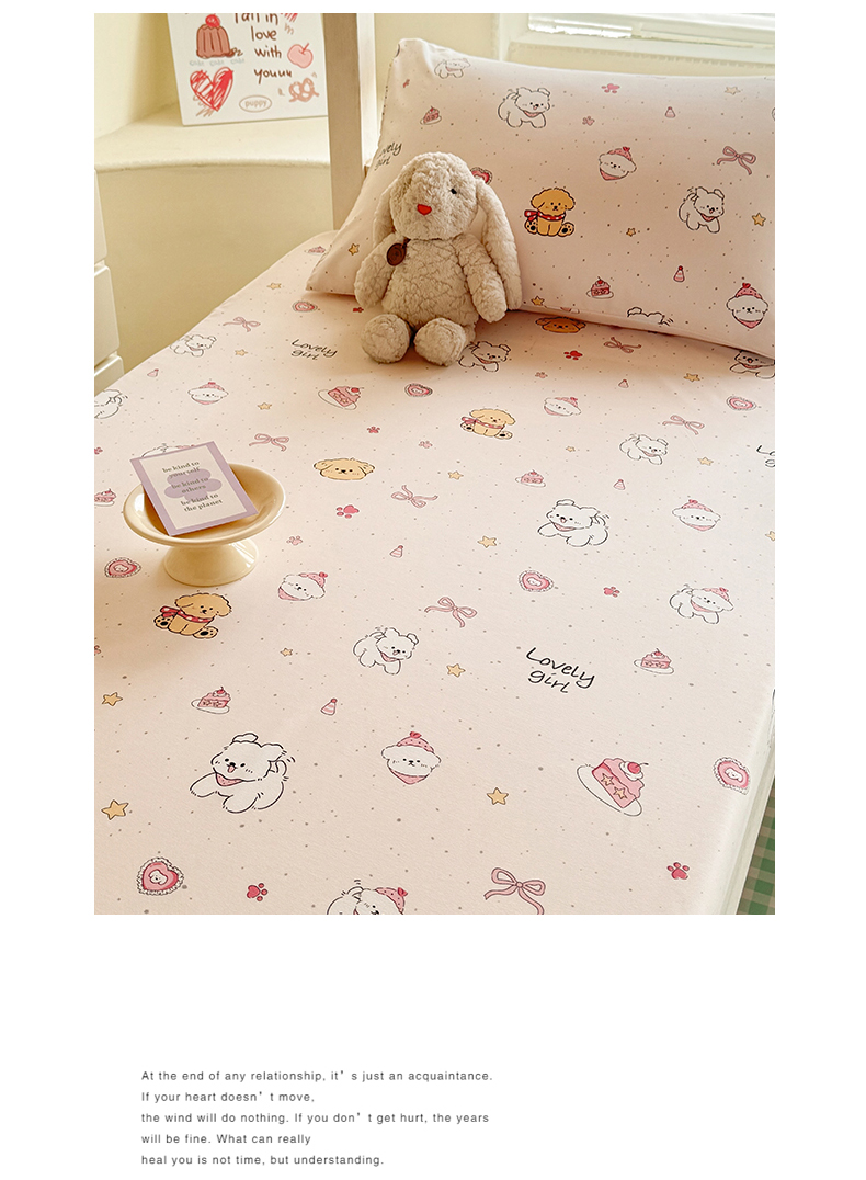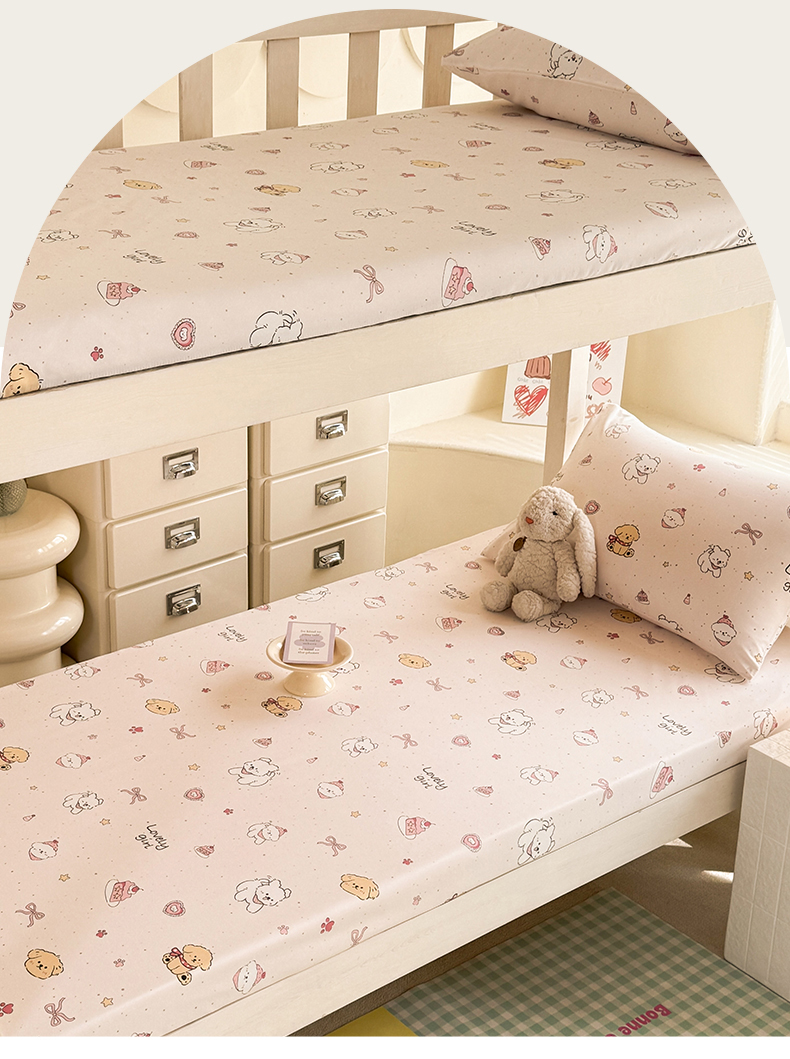 • 91家纺网 家纺一手货源 找家纺 多品家纺 2025春夏新款超柔云感水洗棉单床笠 床笠单件-学生宿舍床 蛋糕狗