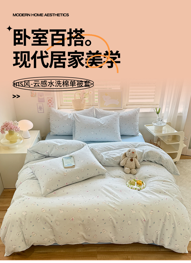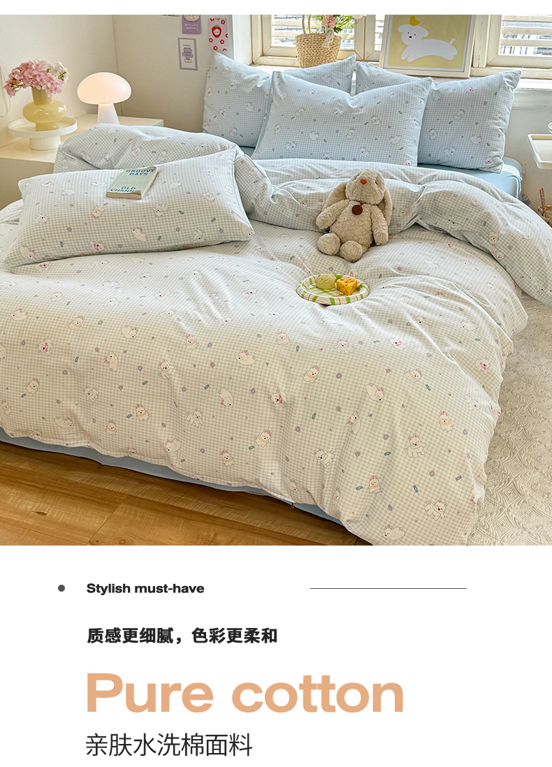 • 91家纺网 家纺一手货源 找家纺 多品家纺 2025春夏新款超柔云感水洗棉单被套 被套单件 可可狗