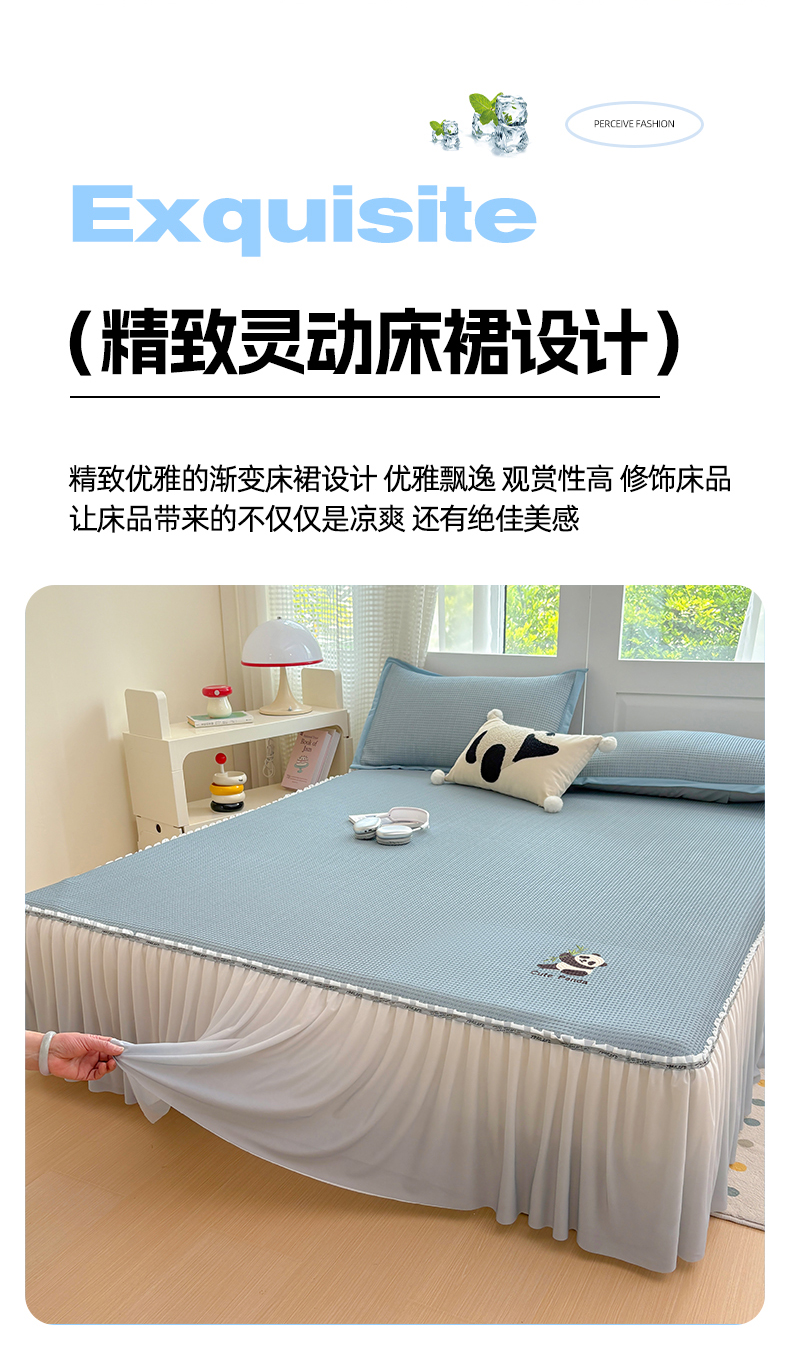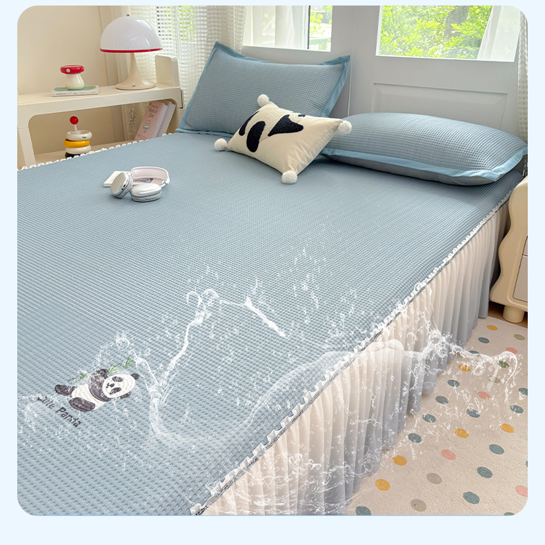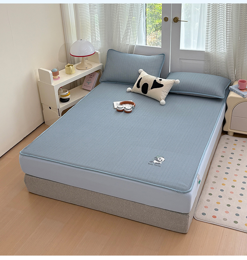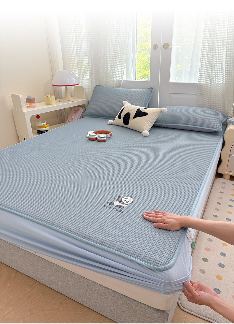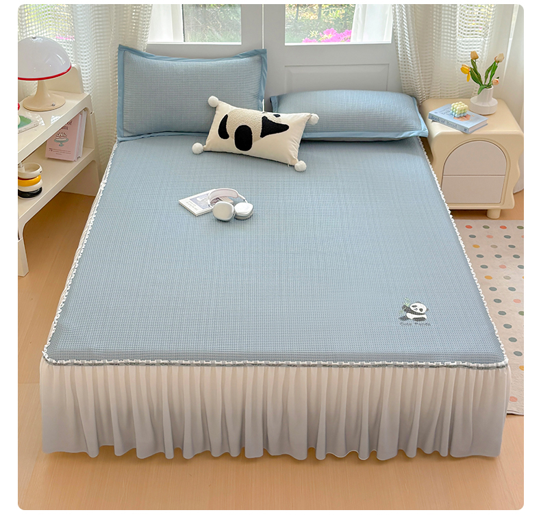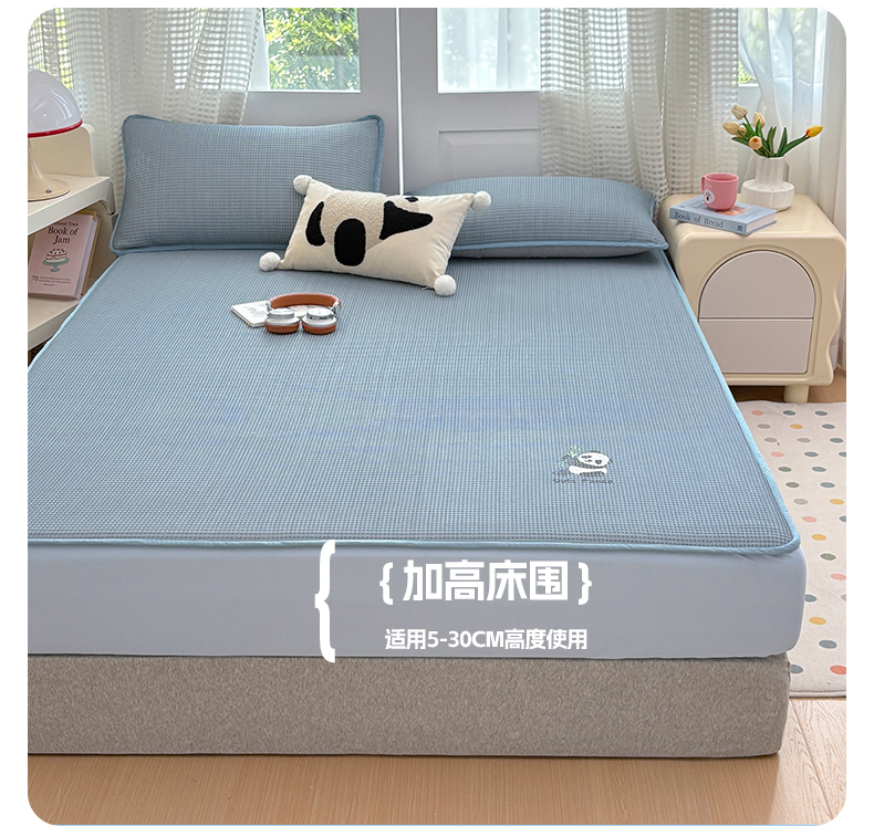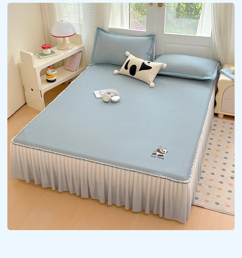宜派家纺 2025新款高分子凉感丝床裙凉席三件套系列 可爱熊-蓝 床笠款