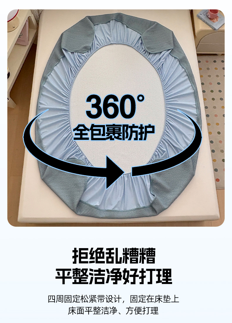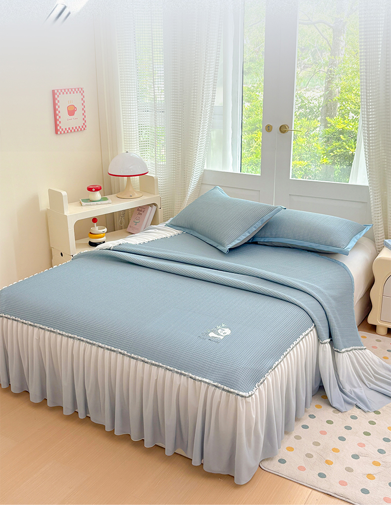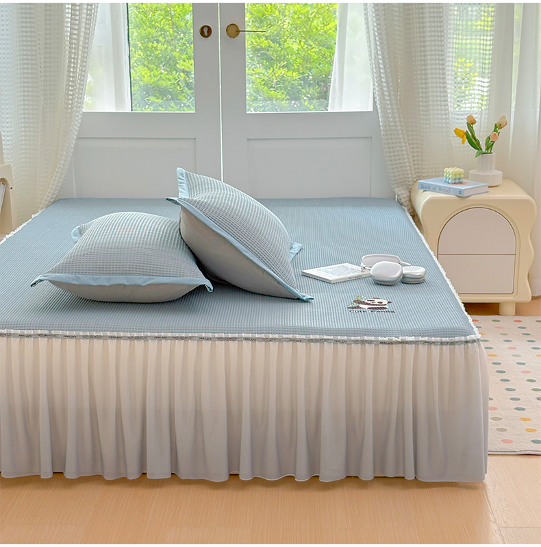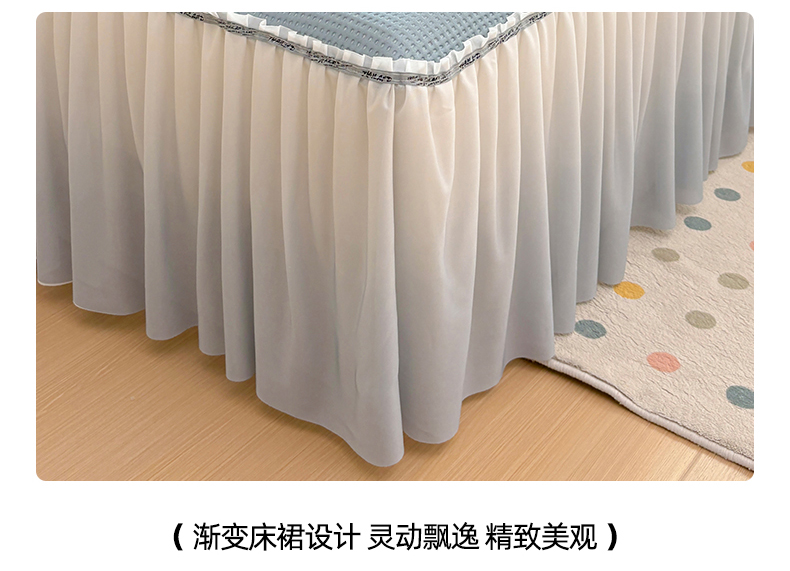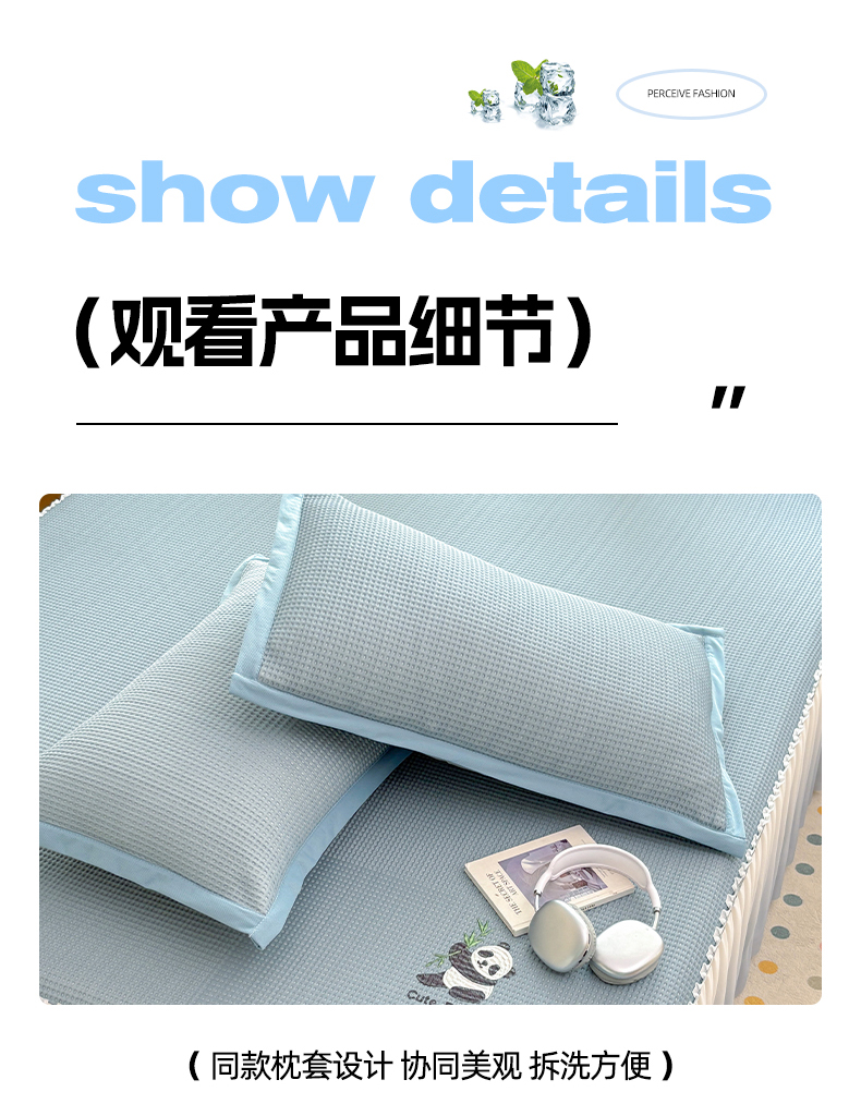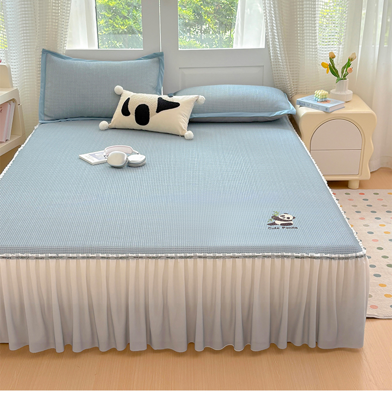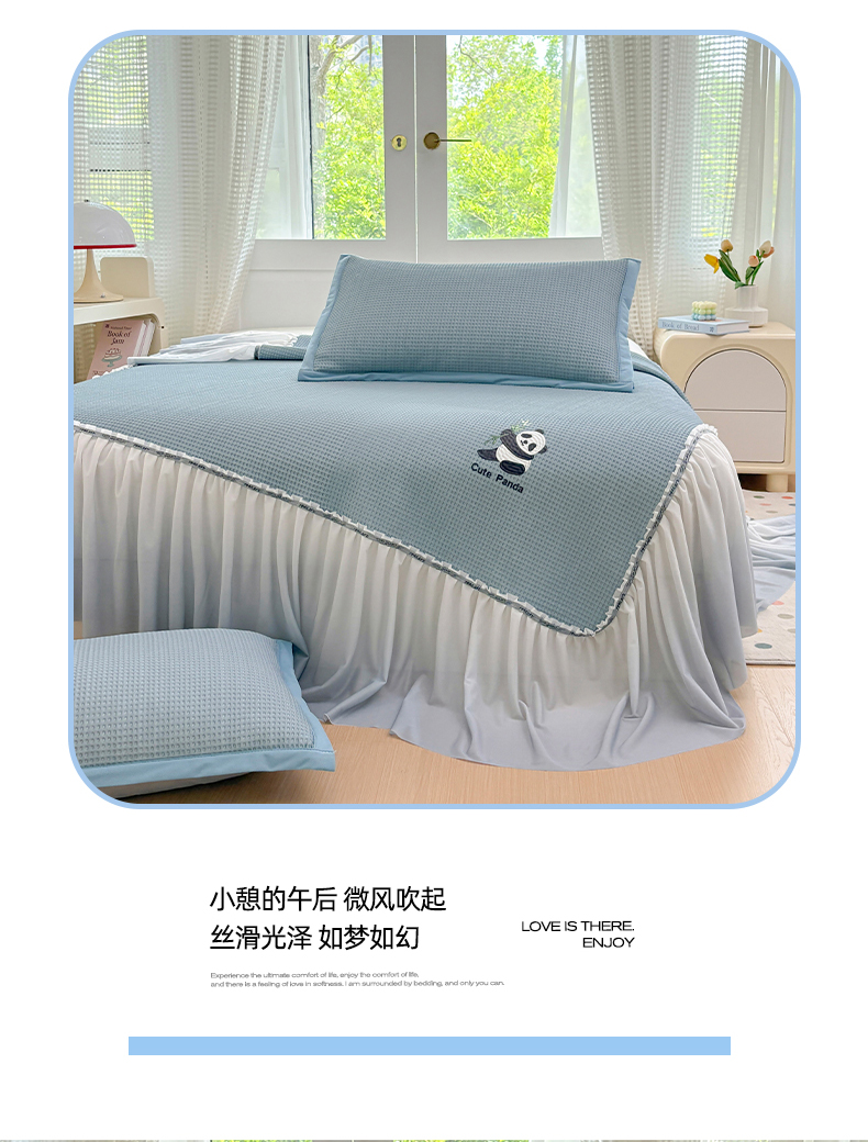 宜派家纺 2025新款高分子凉感丝床裙凉席三件套系列 可爱熊-蓝 床笠款