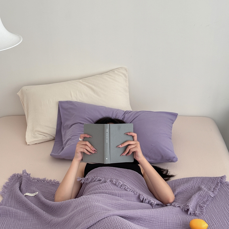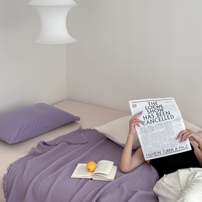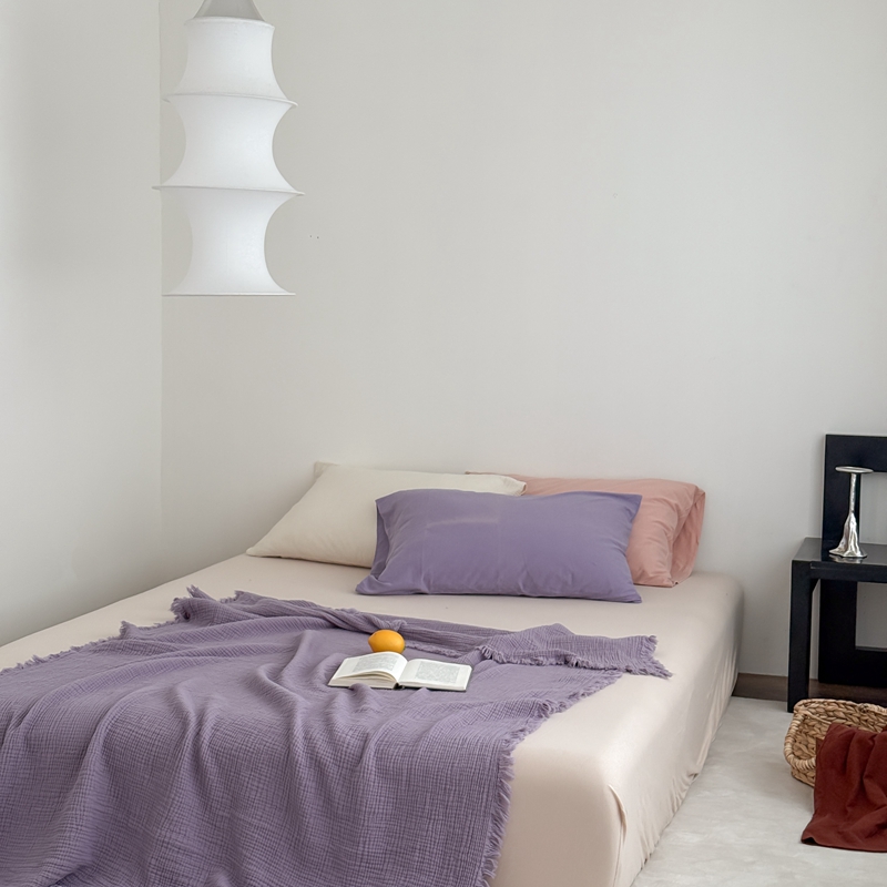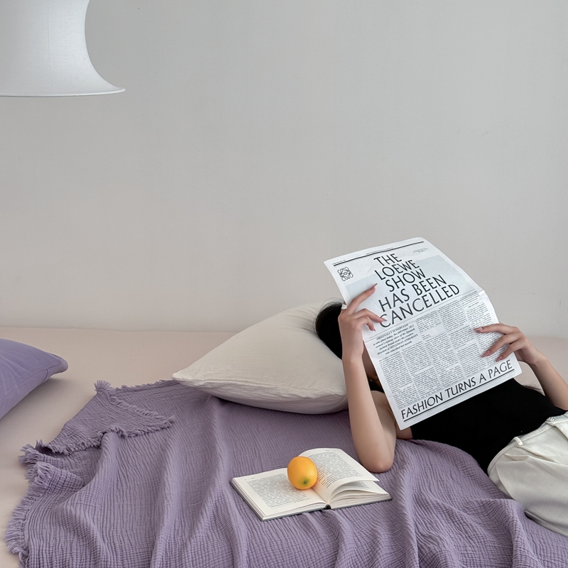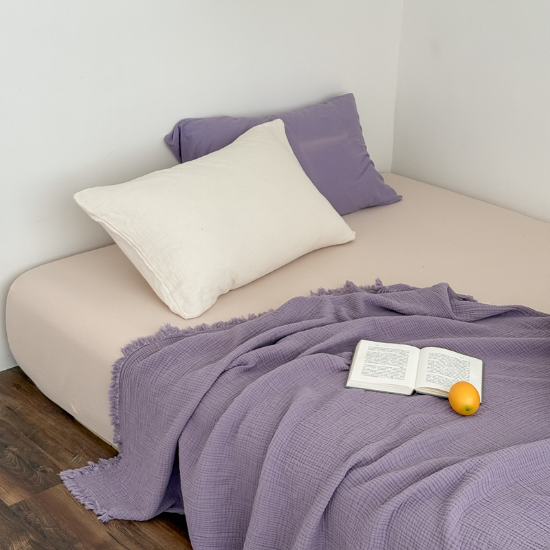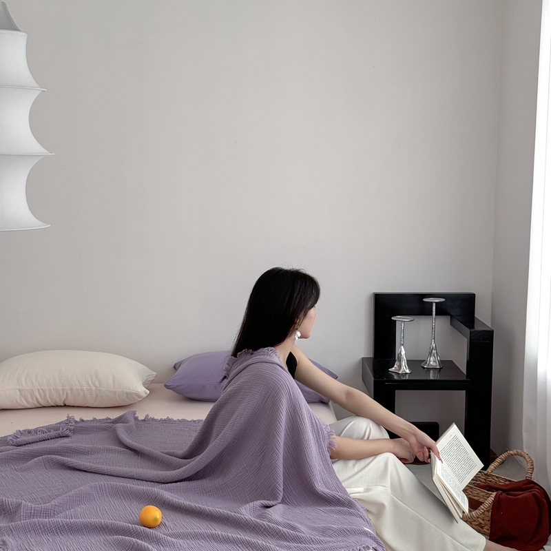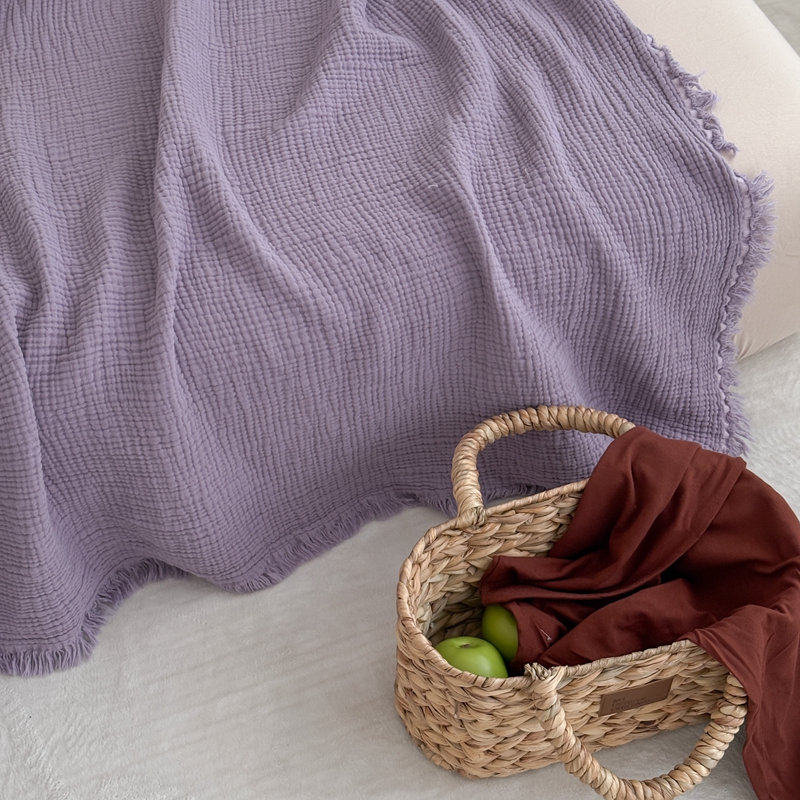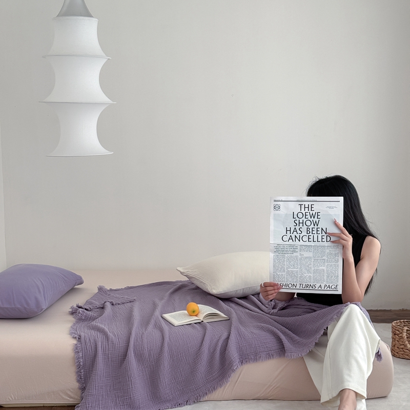 山舍家居 2025新款全棉四层纱流苏盖毯第三批 床拍图 烟紫