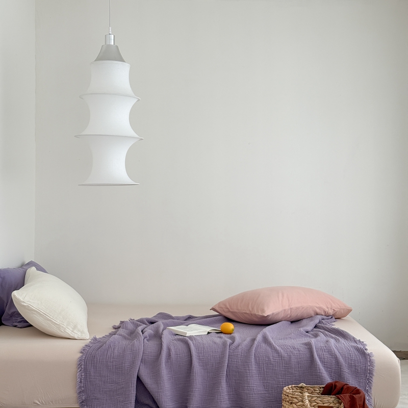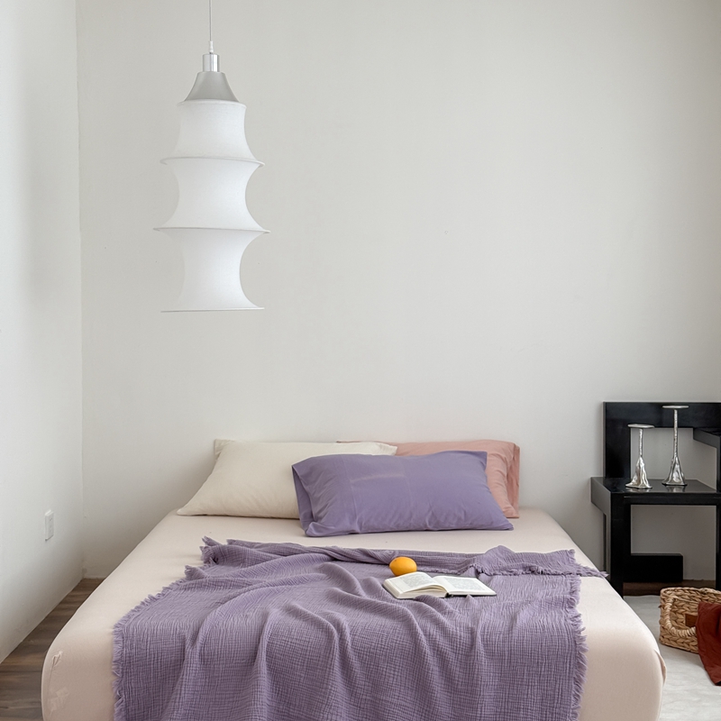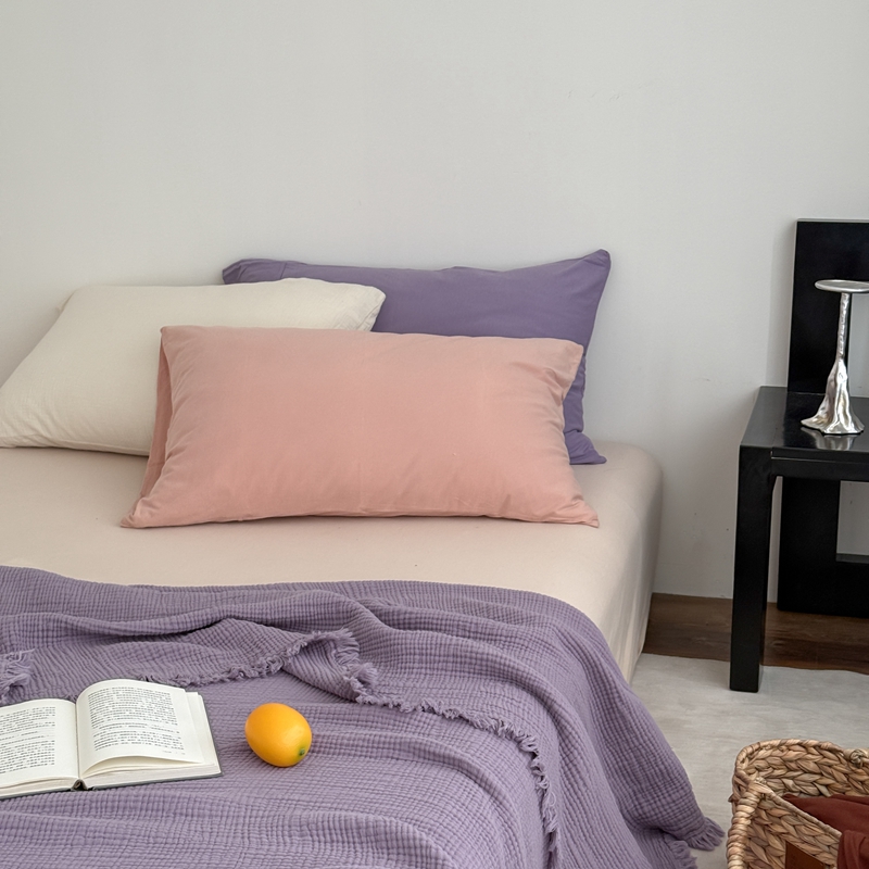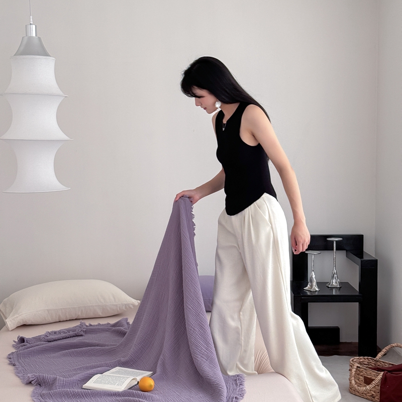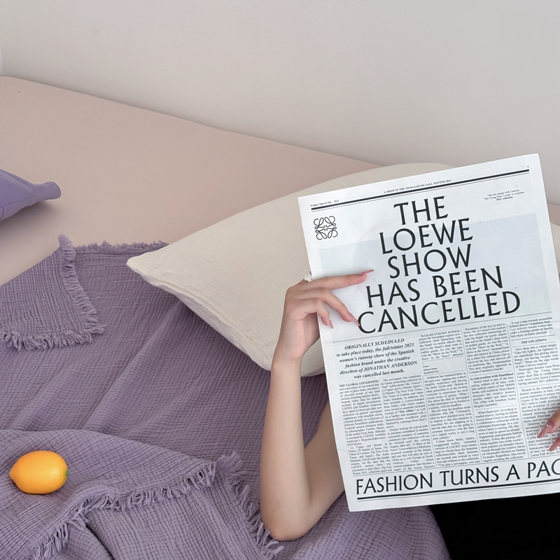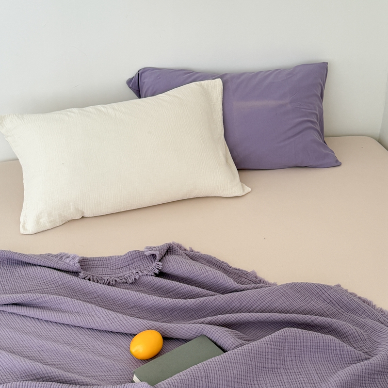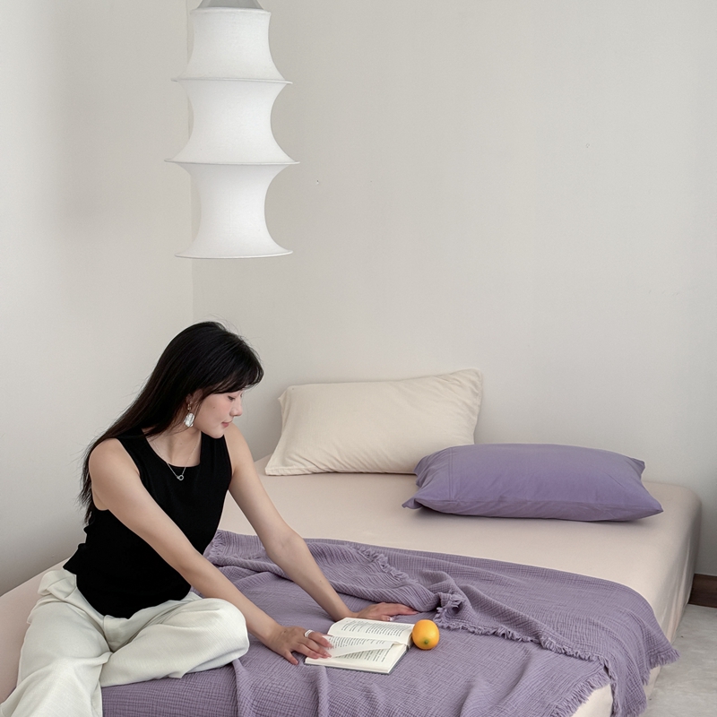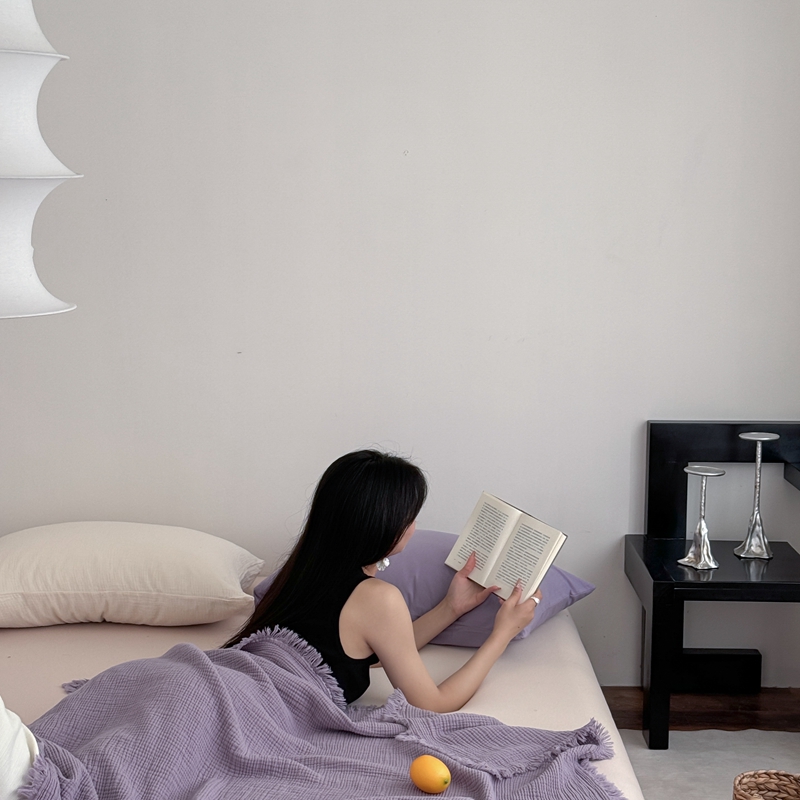 山舍家居 2025新款全棉四层纱流苏盖毯第三批 床拍图 烟紫