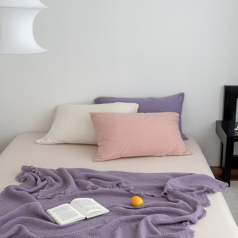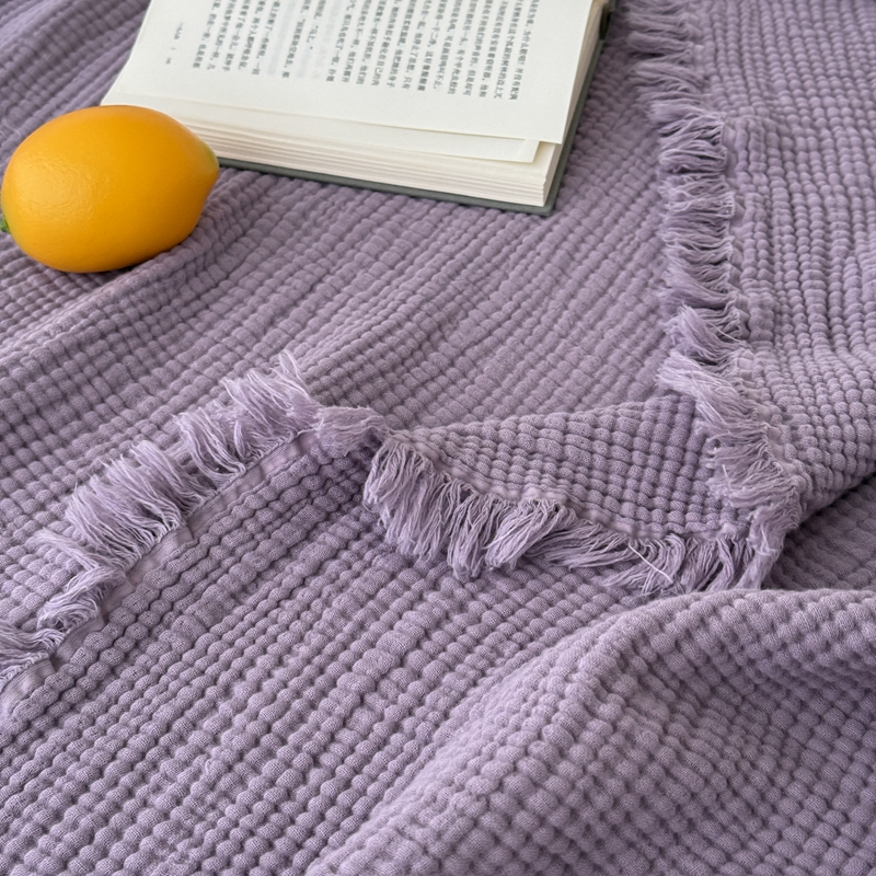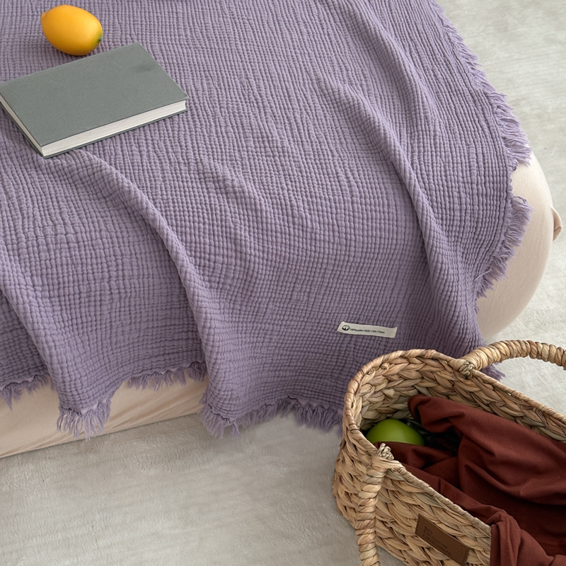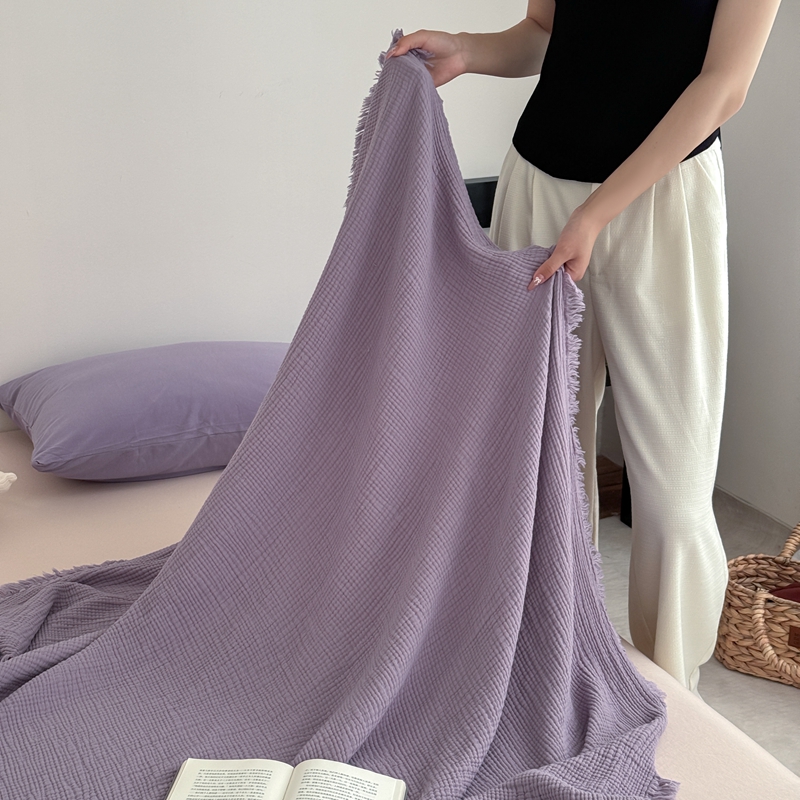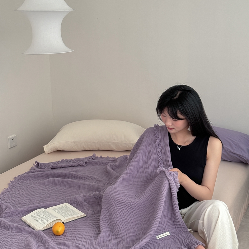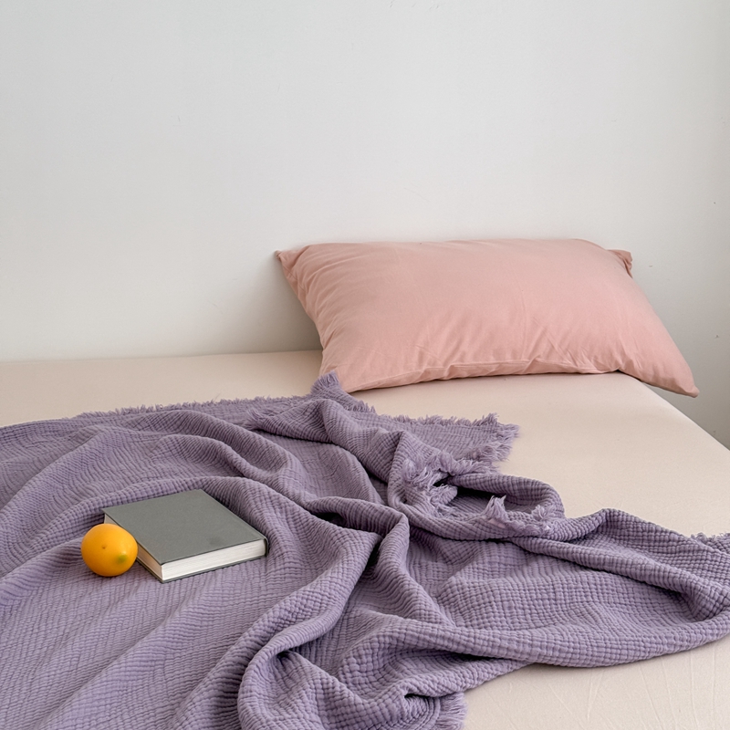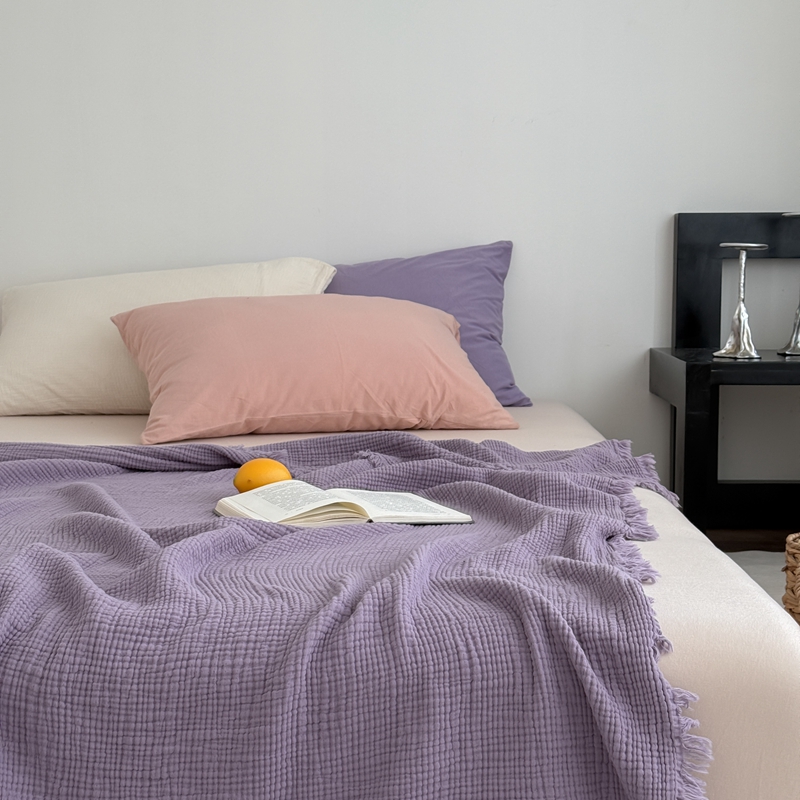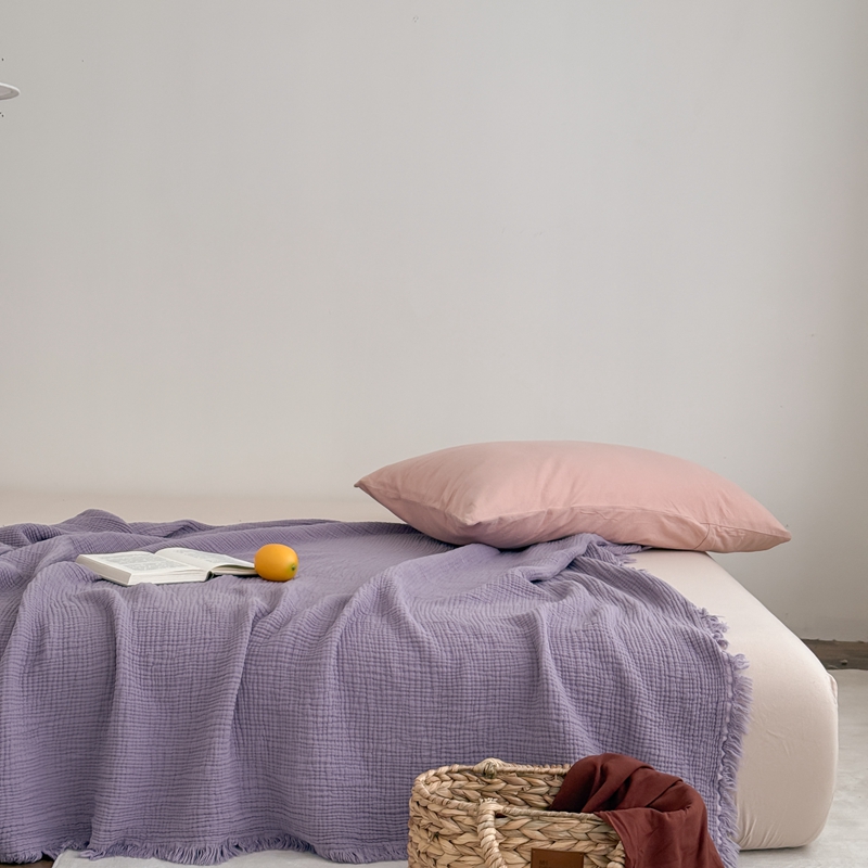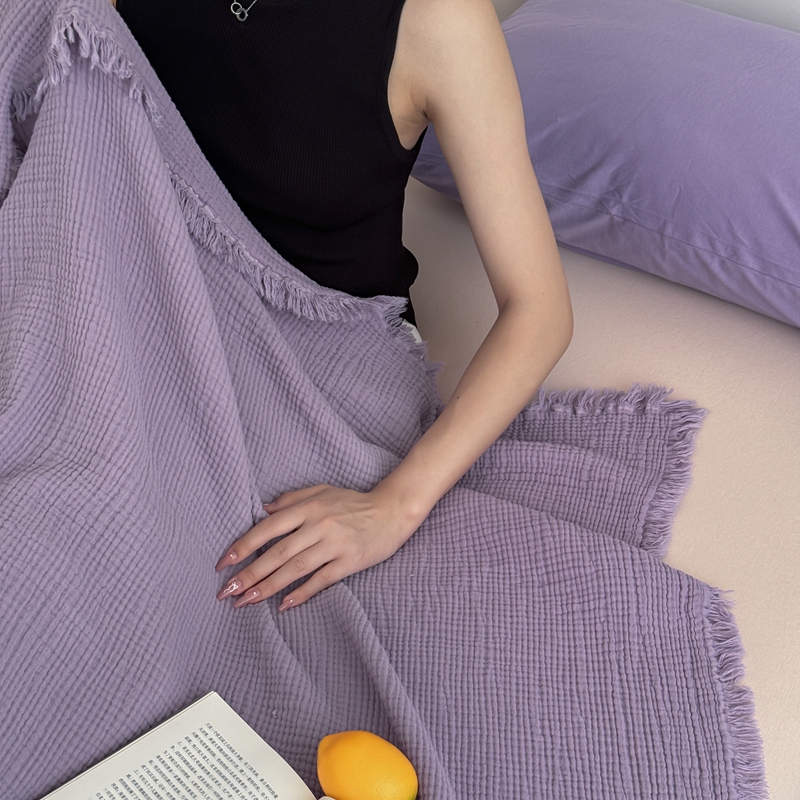 商品名称:山舍家居 2025新款全棉四层纱流苏盖毯第三批 床拍图 烟紫