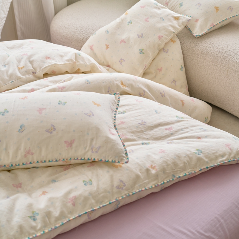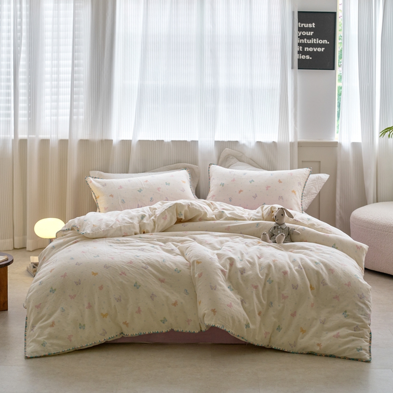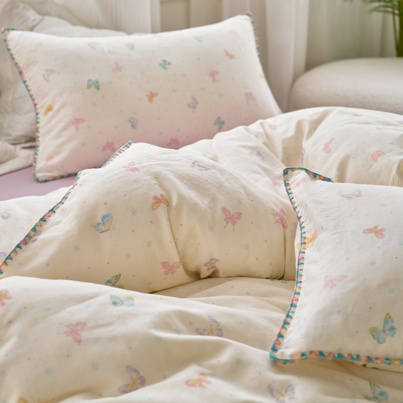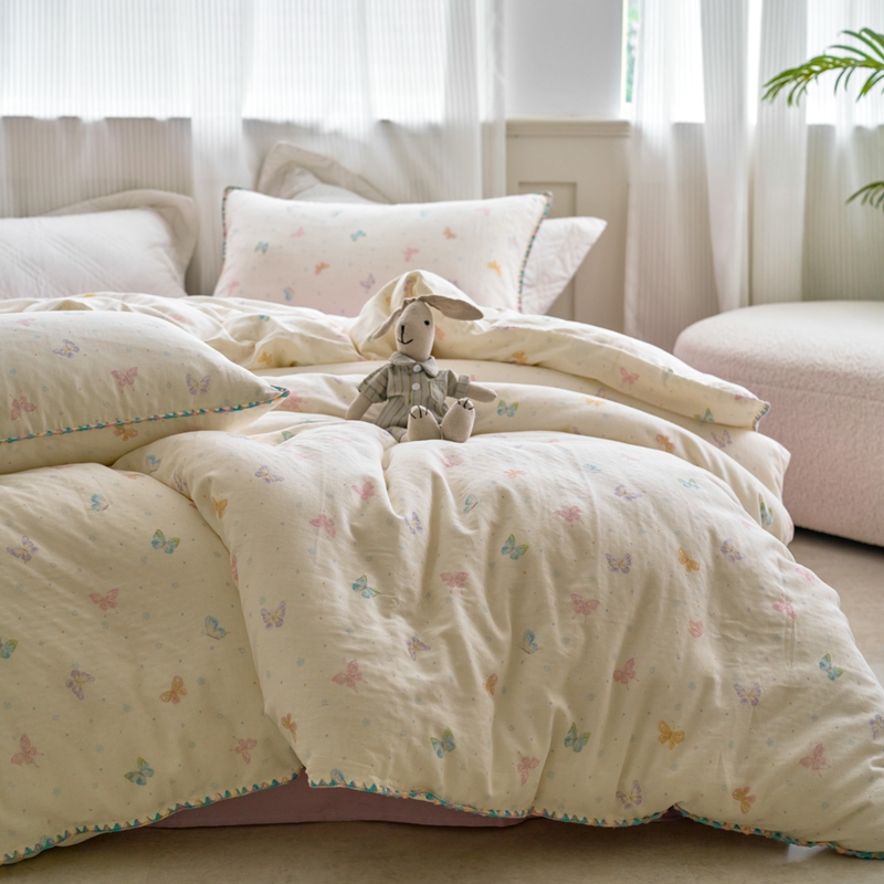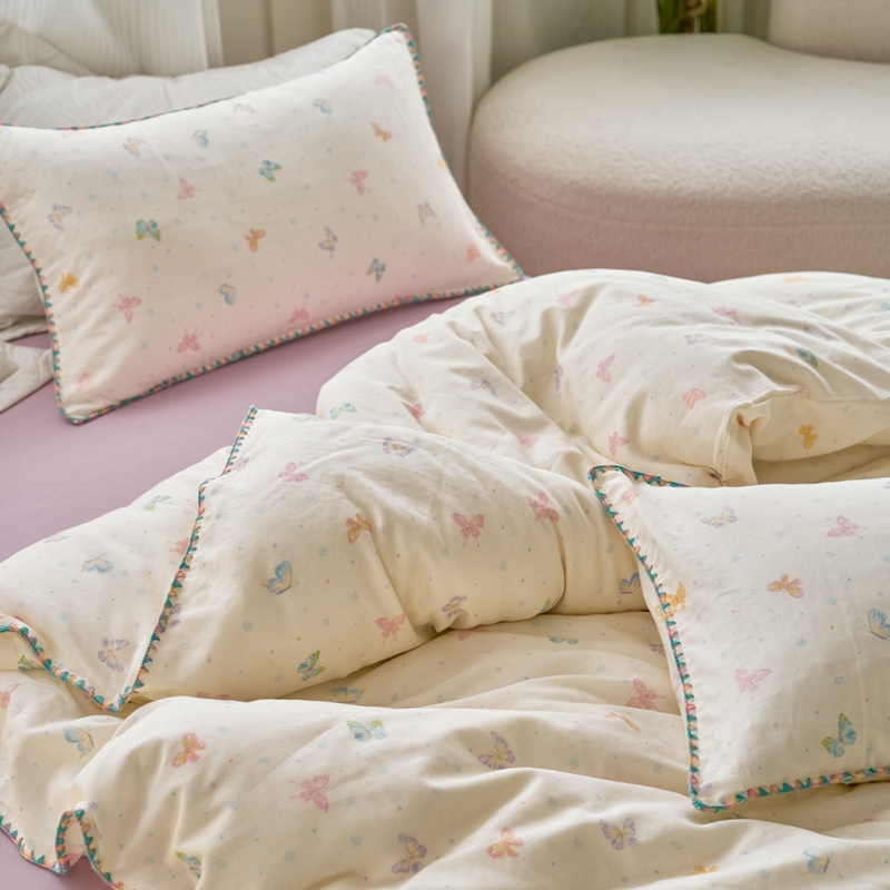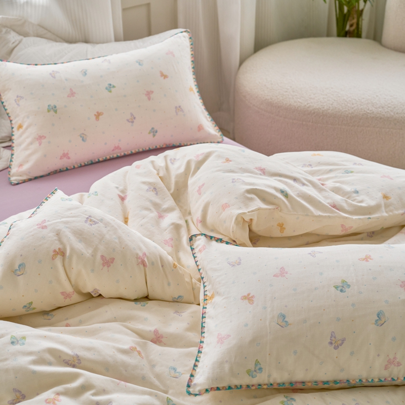 洋铭区(原狠狠爱) 2025新款全棉彩边双层四件套 彩蝶仙子
