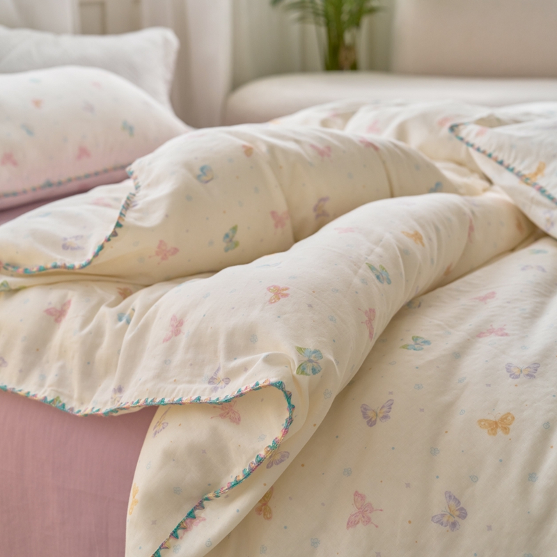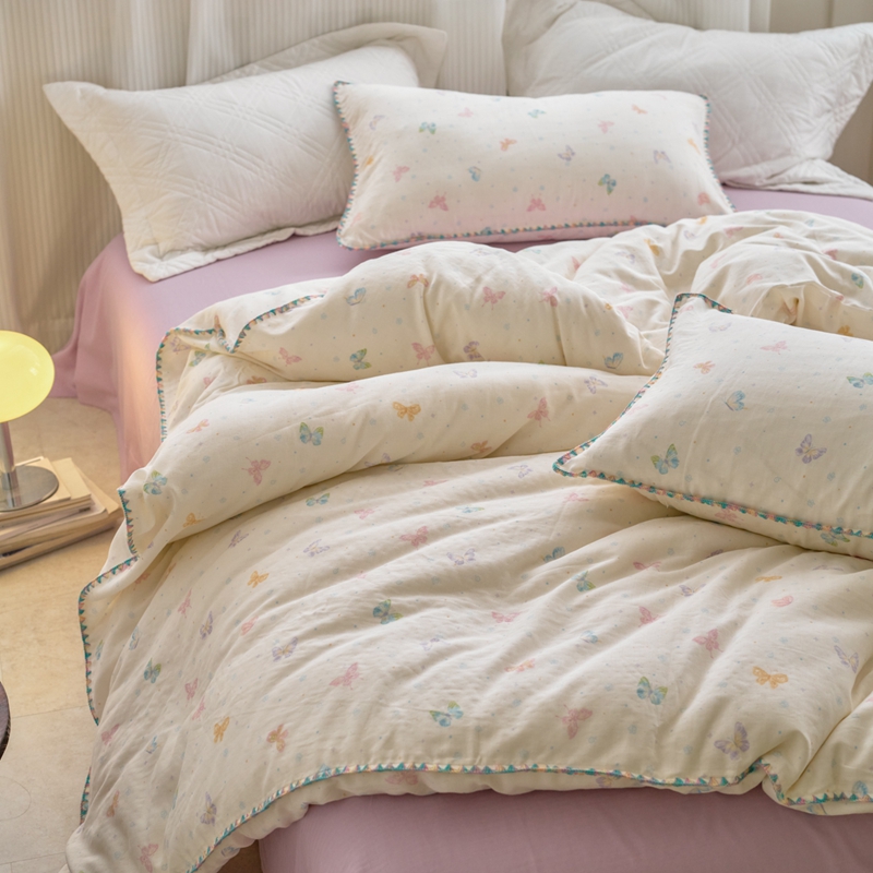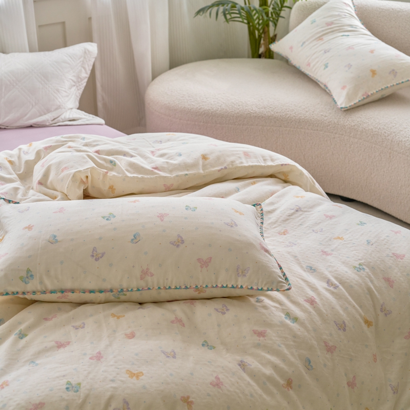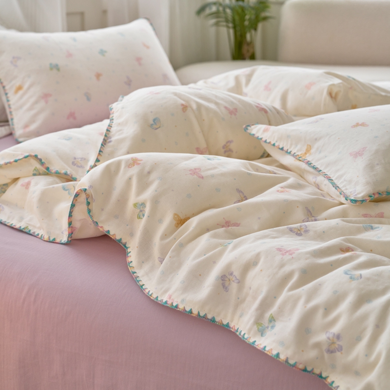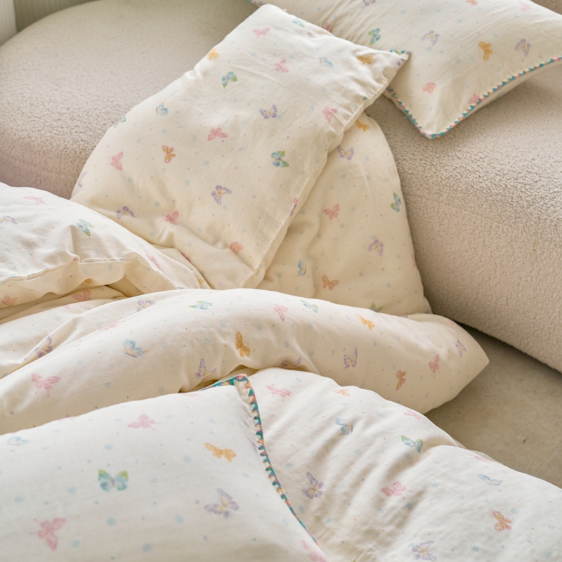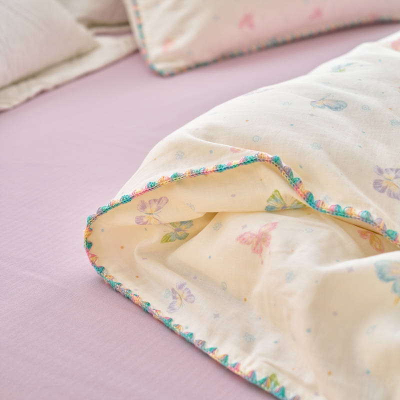 洋铭区(原狠狠爱) 2025新款全棉彩边双层四件套 彩蝶仙子