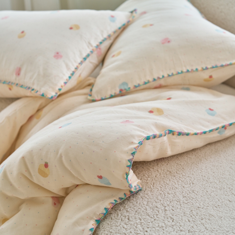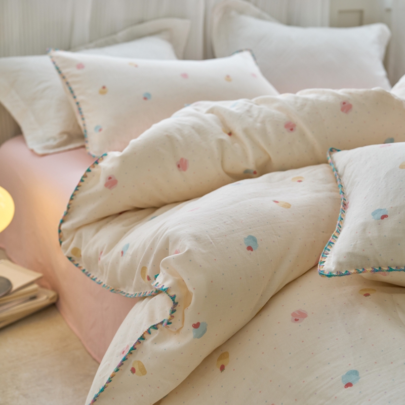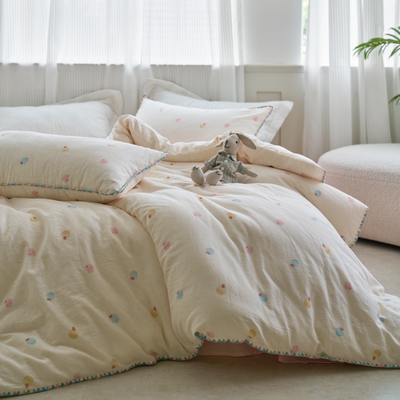 商品名称:洋铭区(原狠狠爱) 2025新款全棉彩边双层四件套 小奶糕