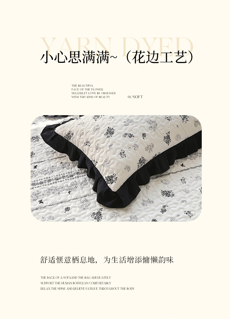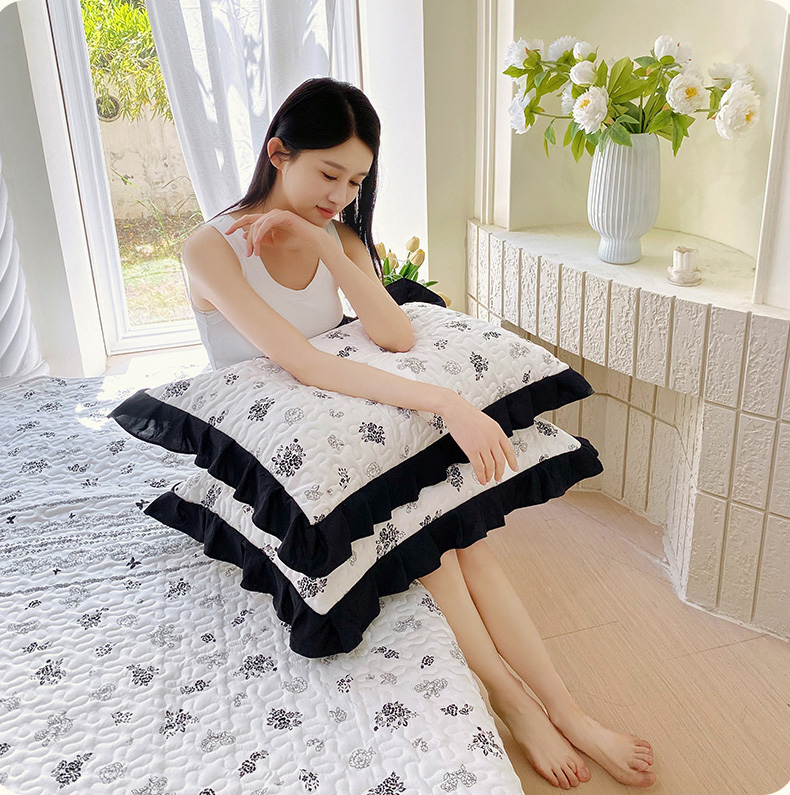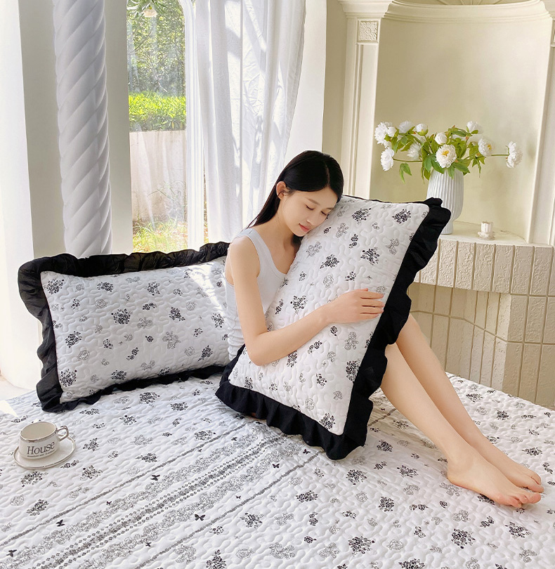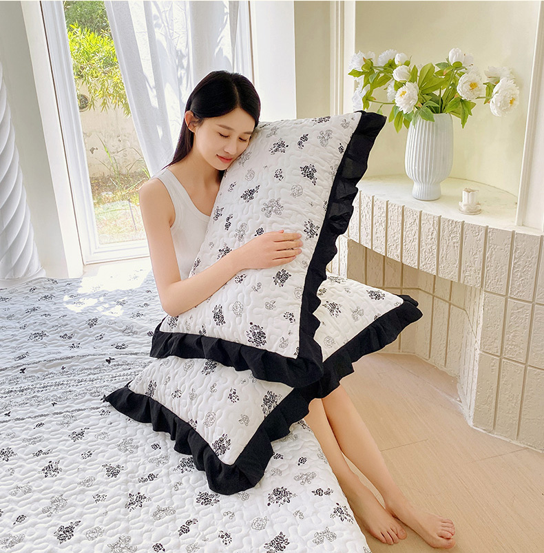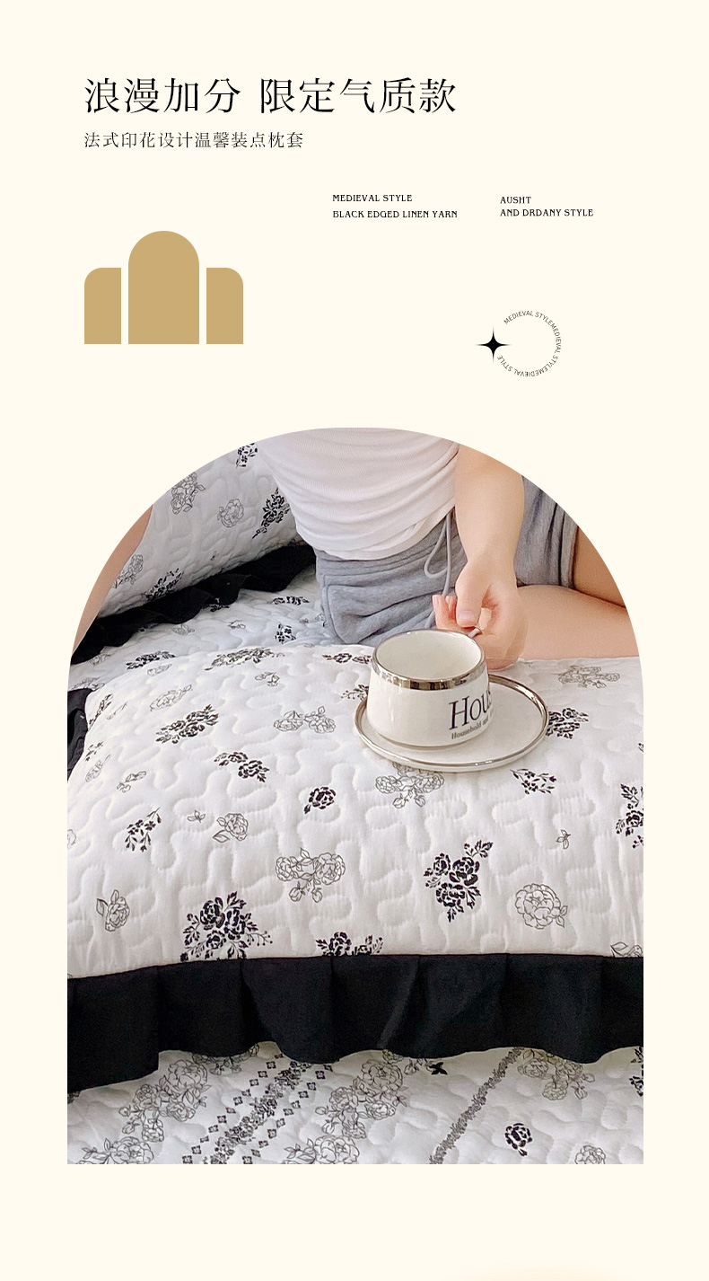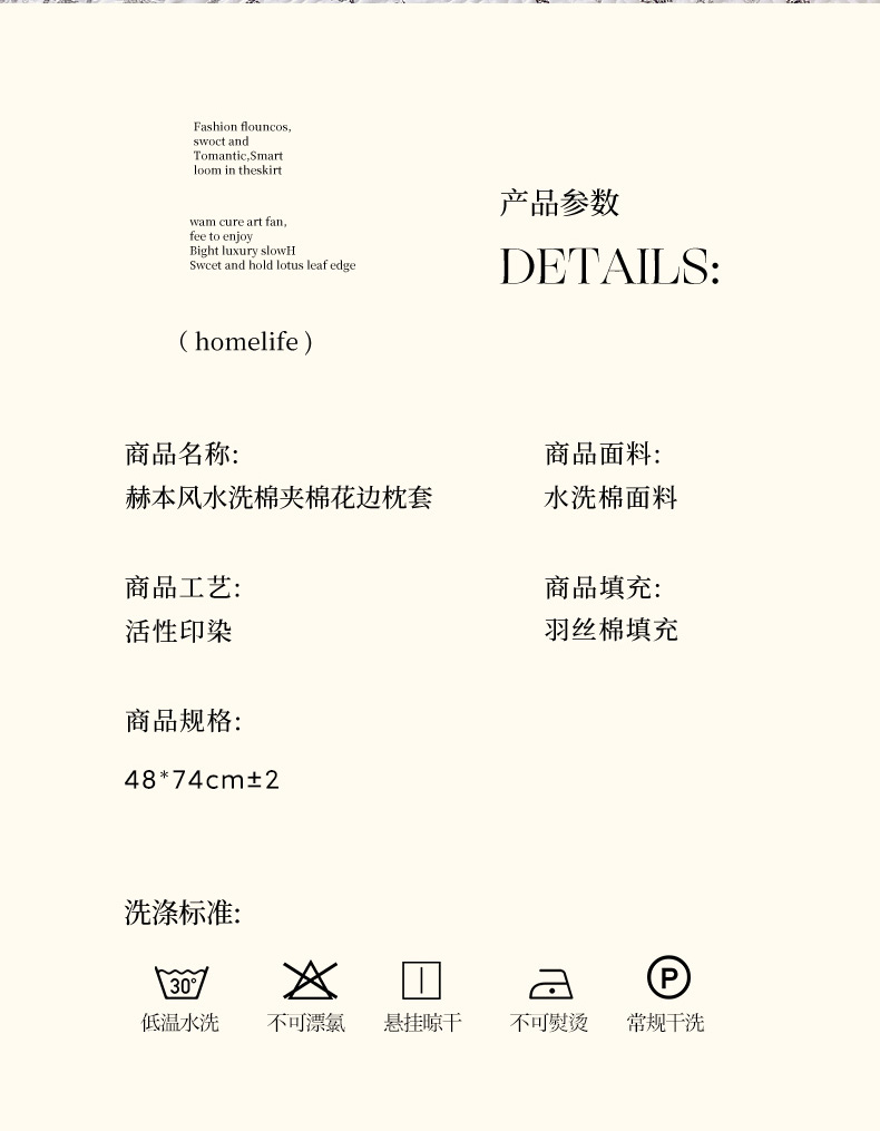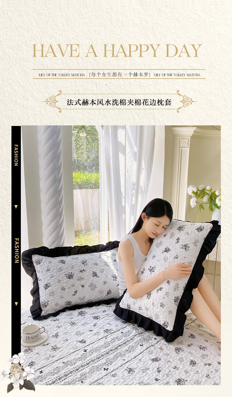 商品名称:雨彤家纺2025新款赫本风水洗棉夹棉花边枕套 爱翩翩
