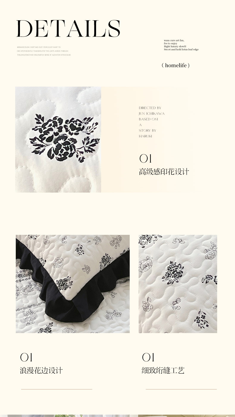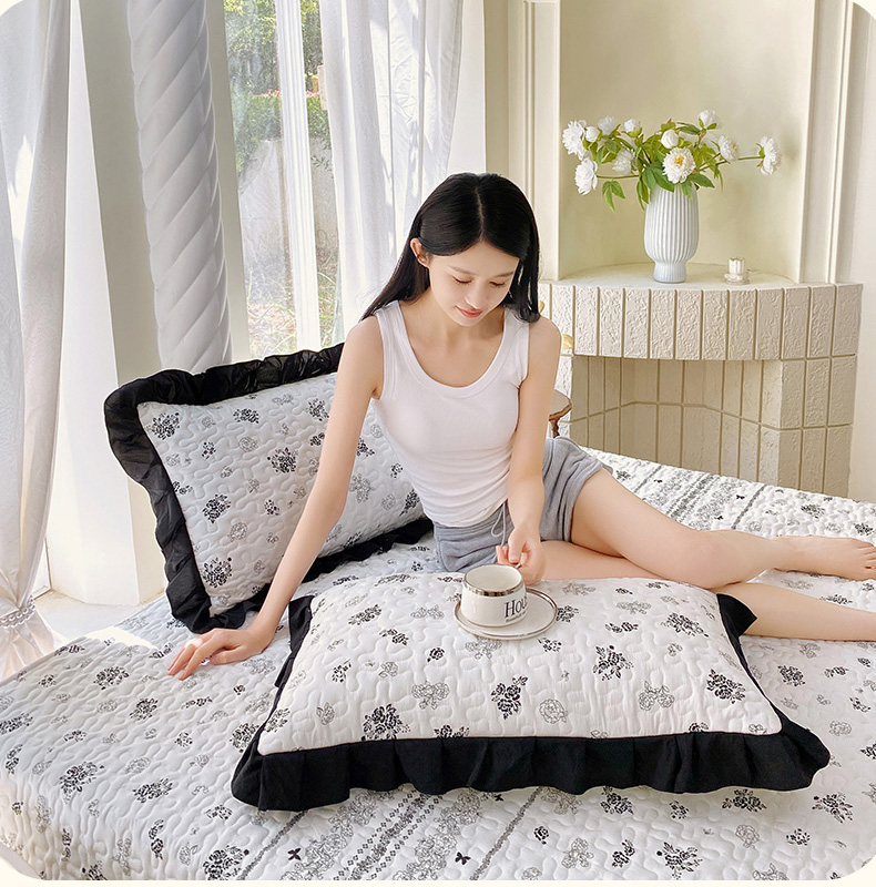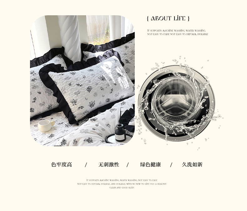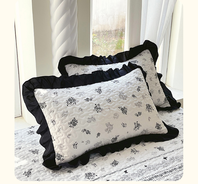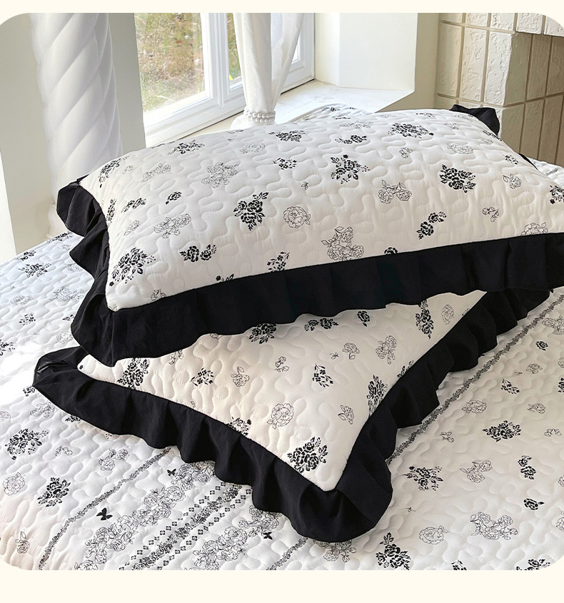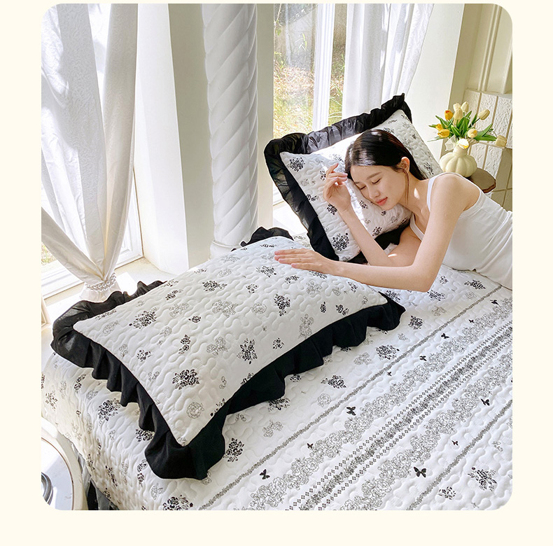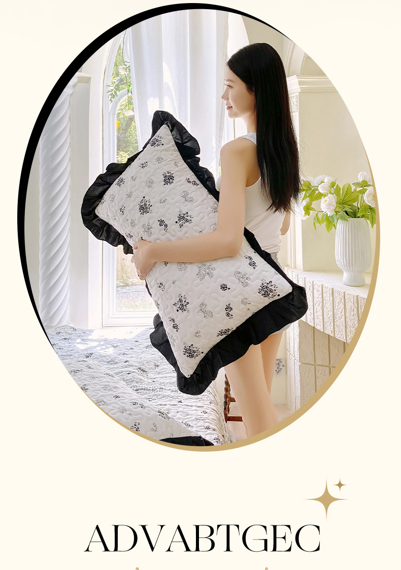 商品名称:雨彤家纺2025新款赫本风水洗棉夹棉花边枕套 爱翩翩