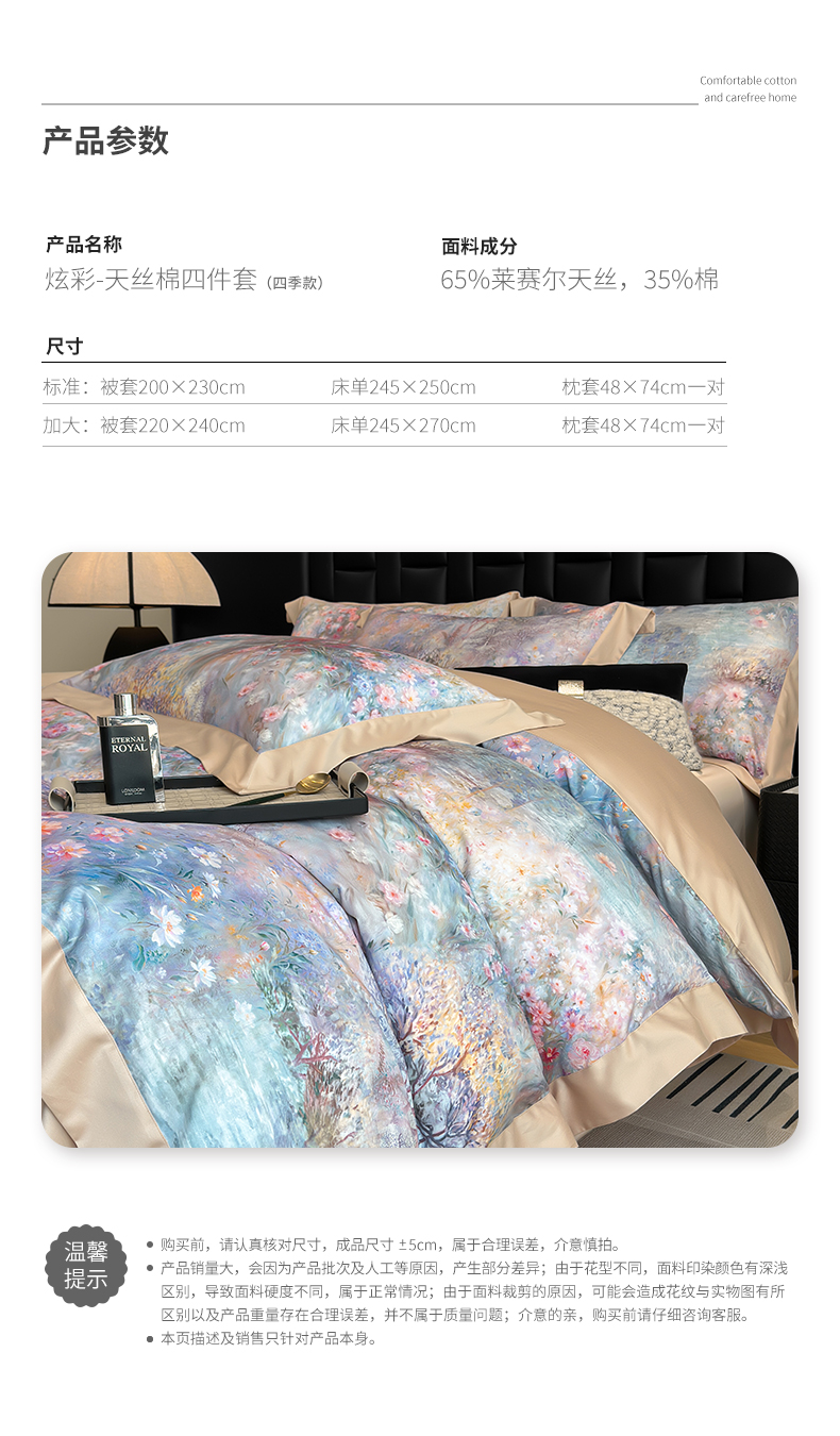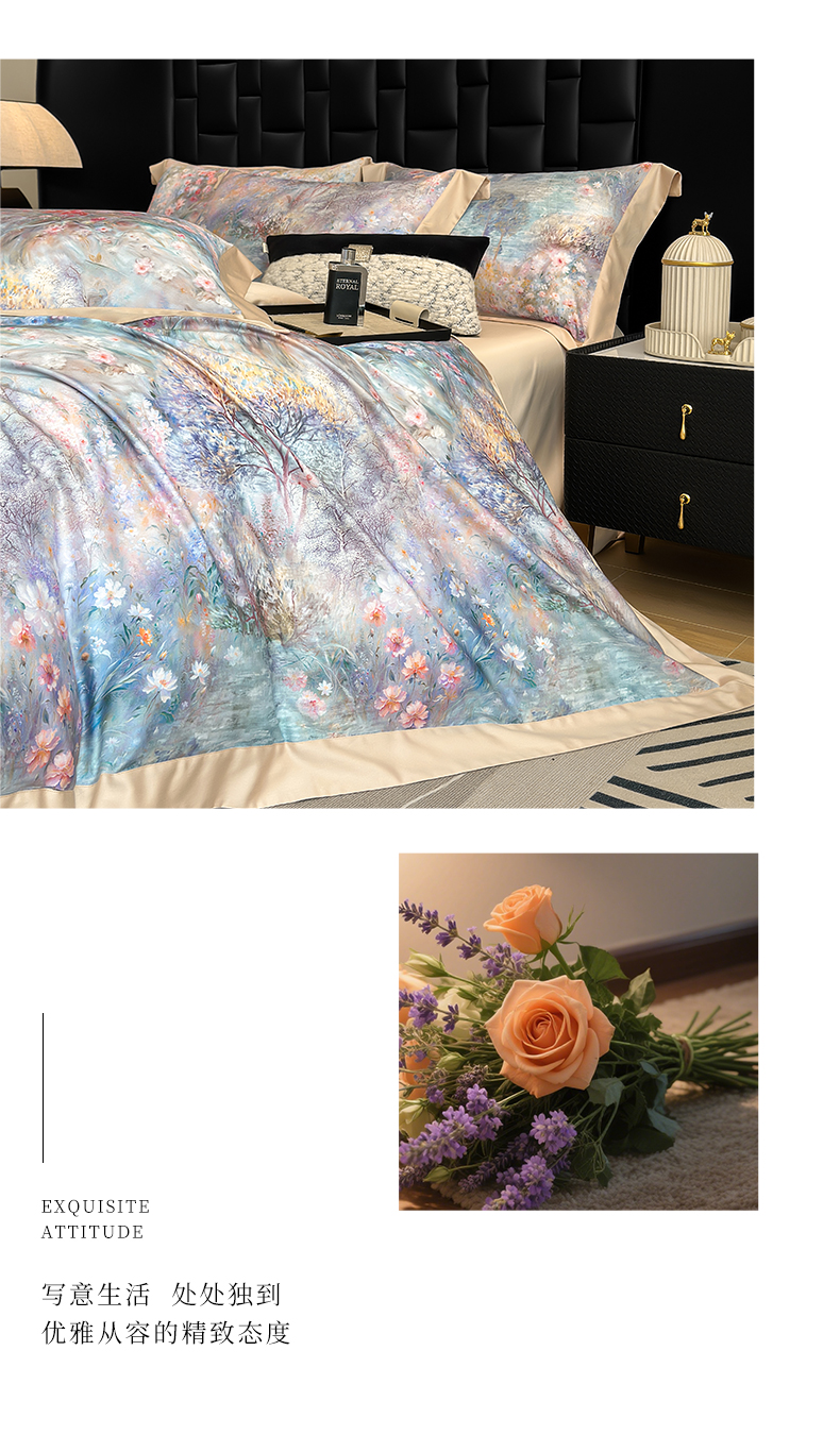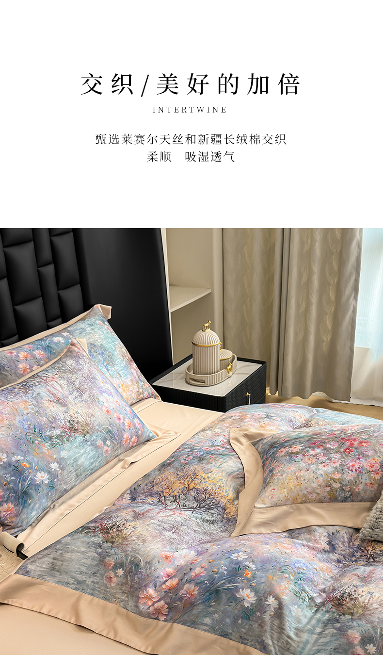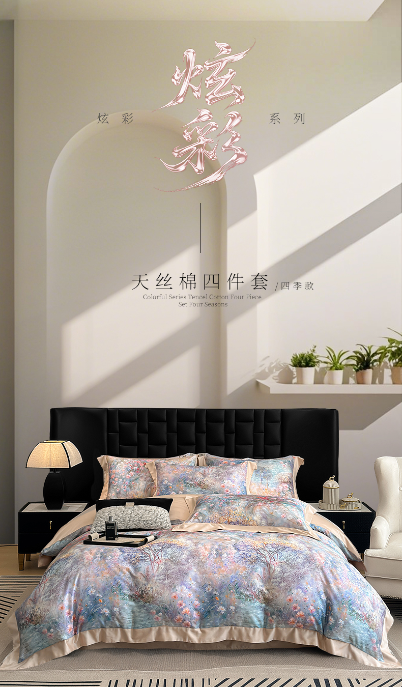 商品名称:元元家居(元元被业) 2026新款天丝棉四季款四件套-炫彩系列 开往春天的地铁