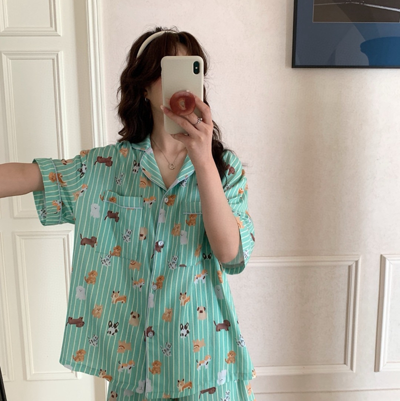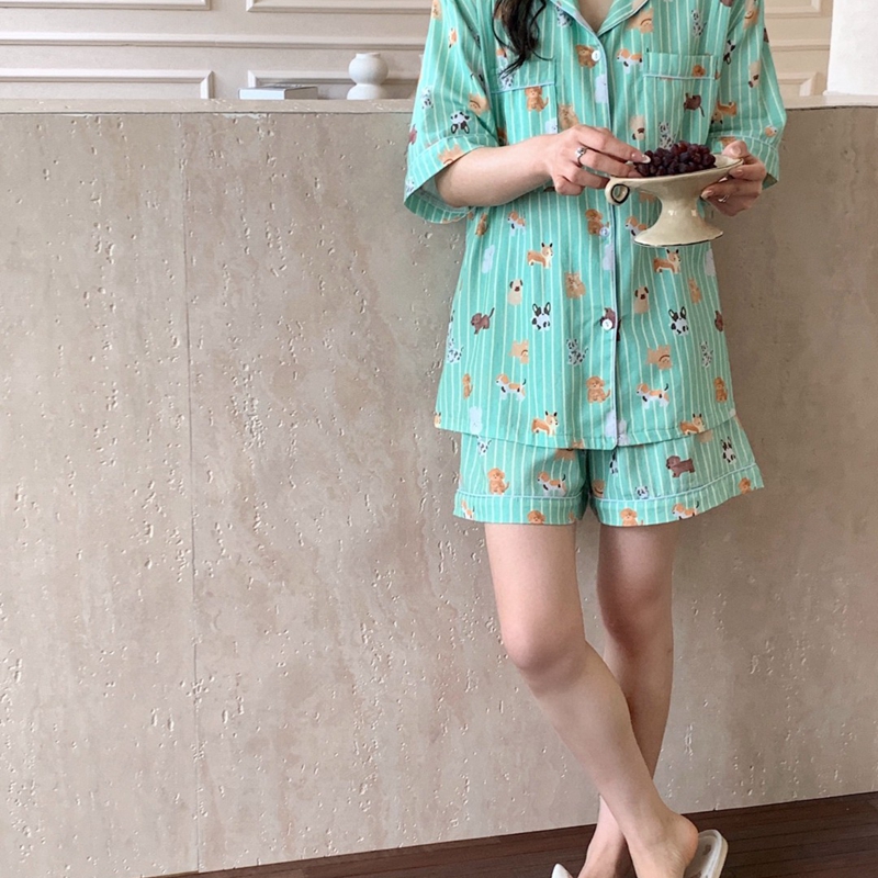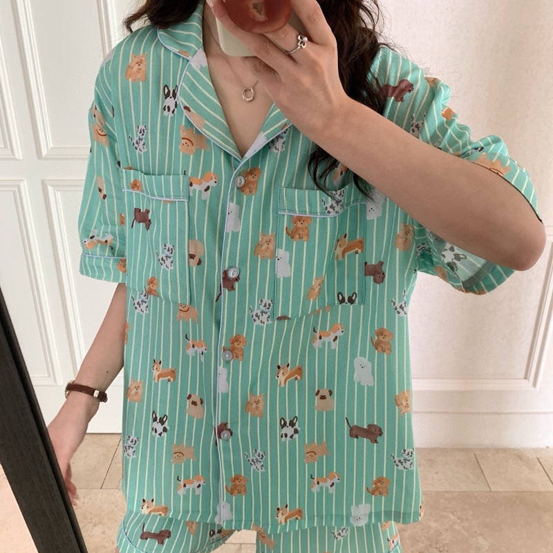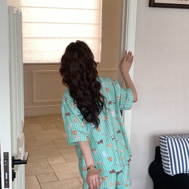商品名称:妍景2025新款25671-泰系卡通小狗套装 绿色
