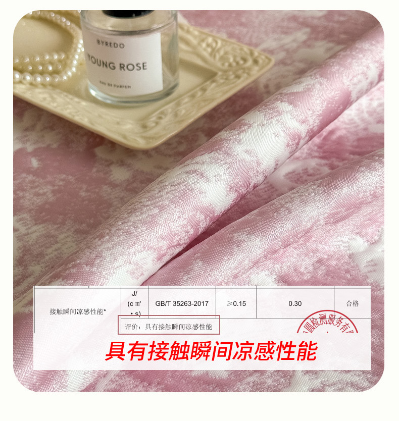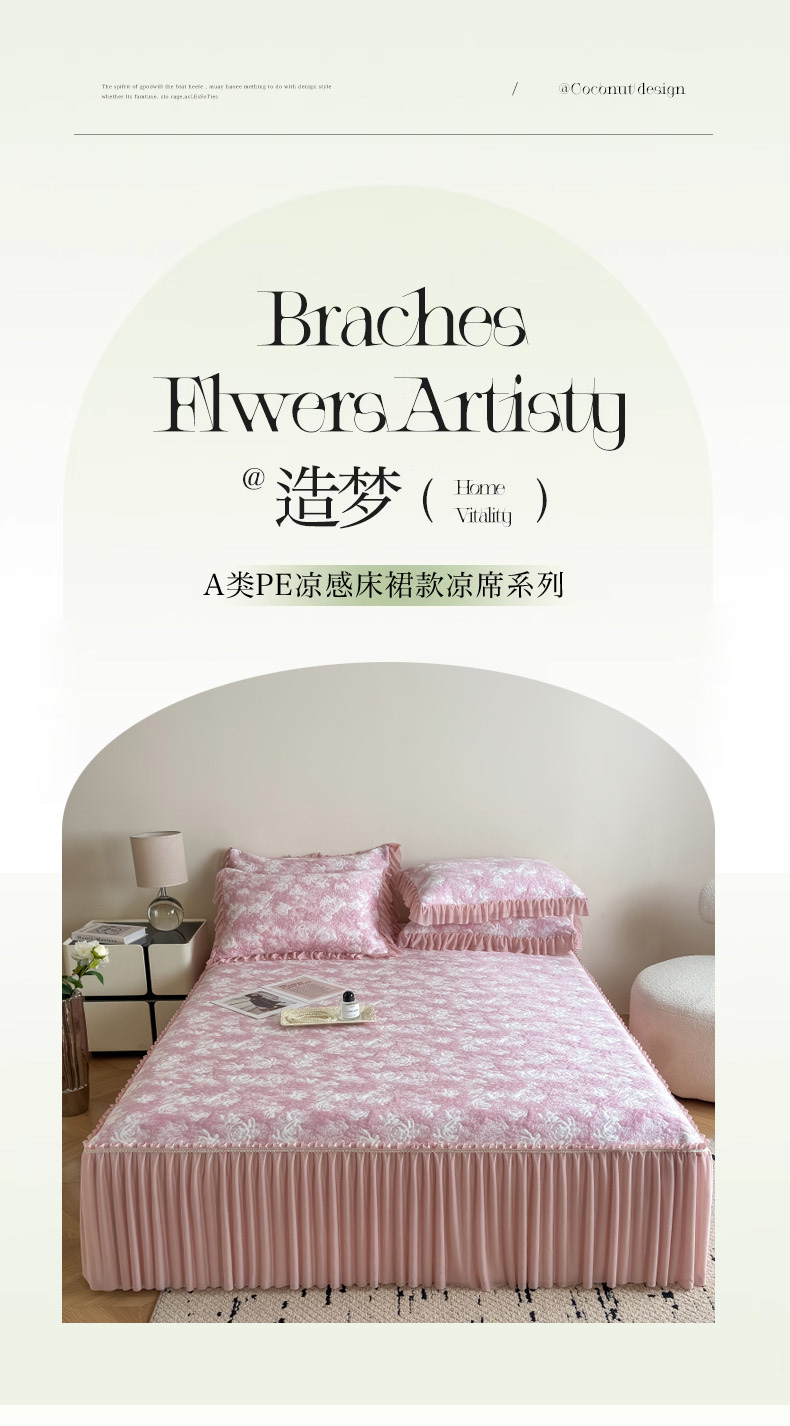 商品名称:(总)九花鹿 2025新款PE双面提花床裙冰丝席-莫奈玫瑰