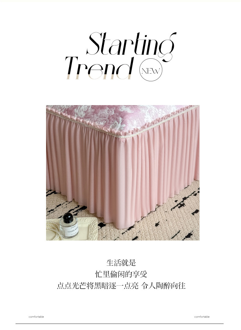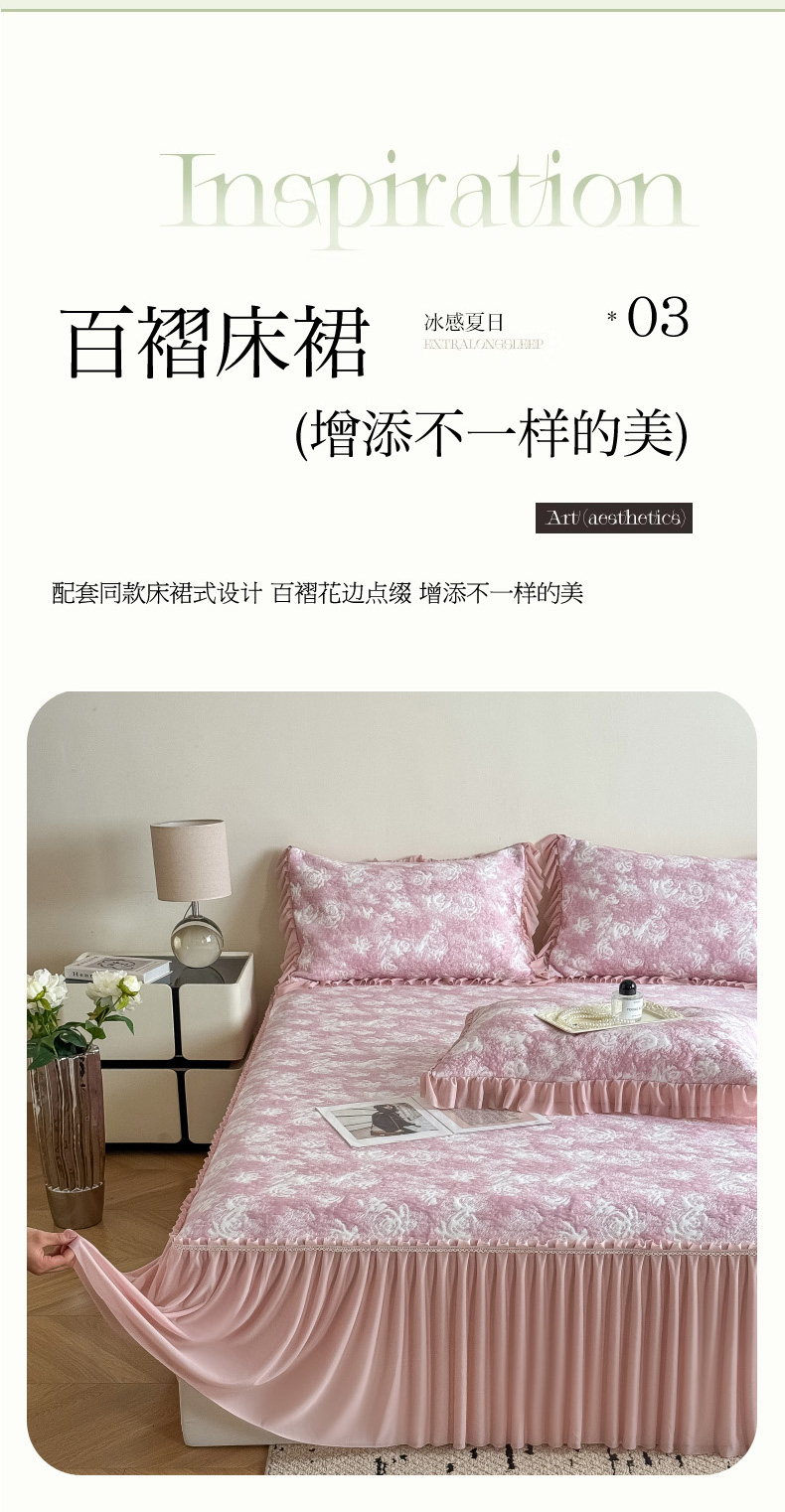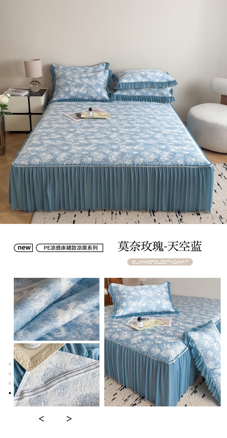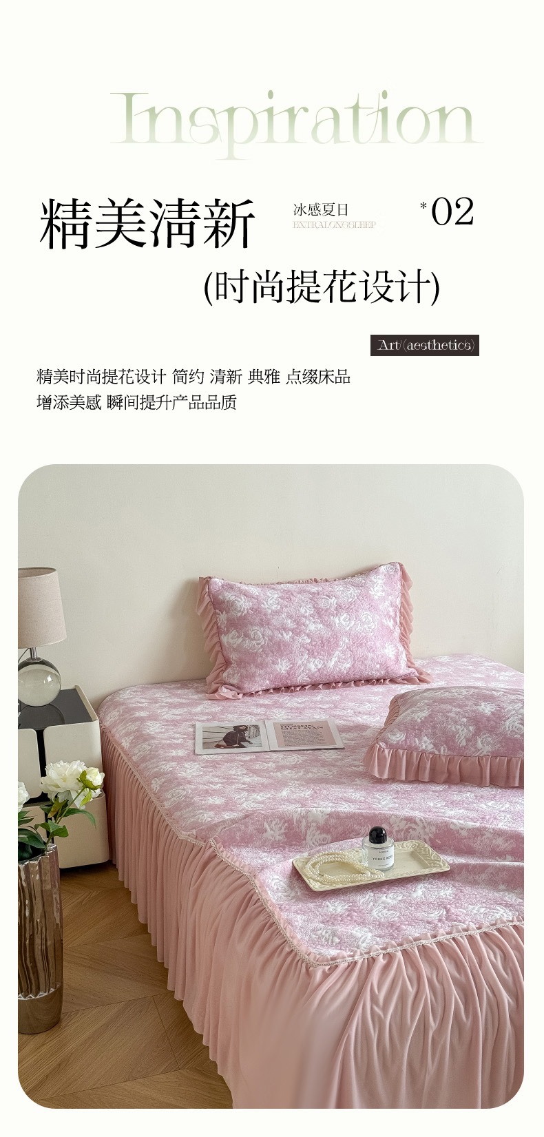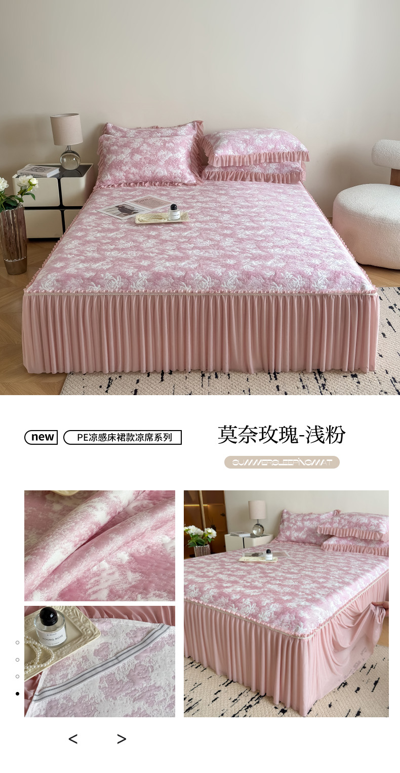 (总)九花鹿 2025新款PE双面提花床裙冰丝席-莫奈玫瑰