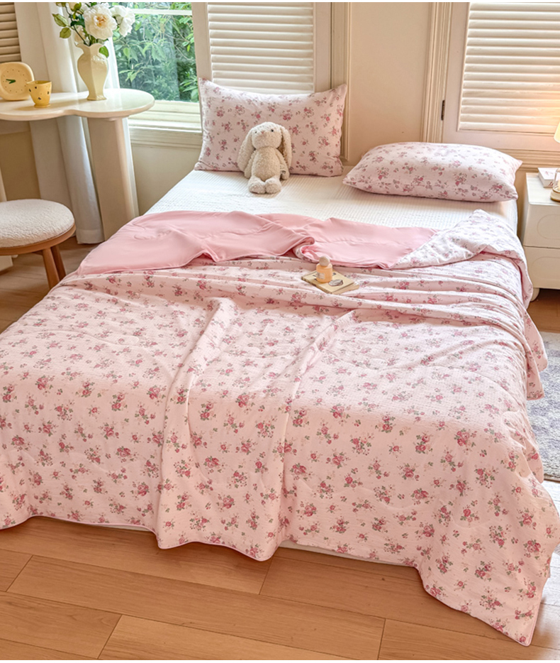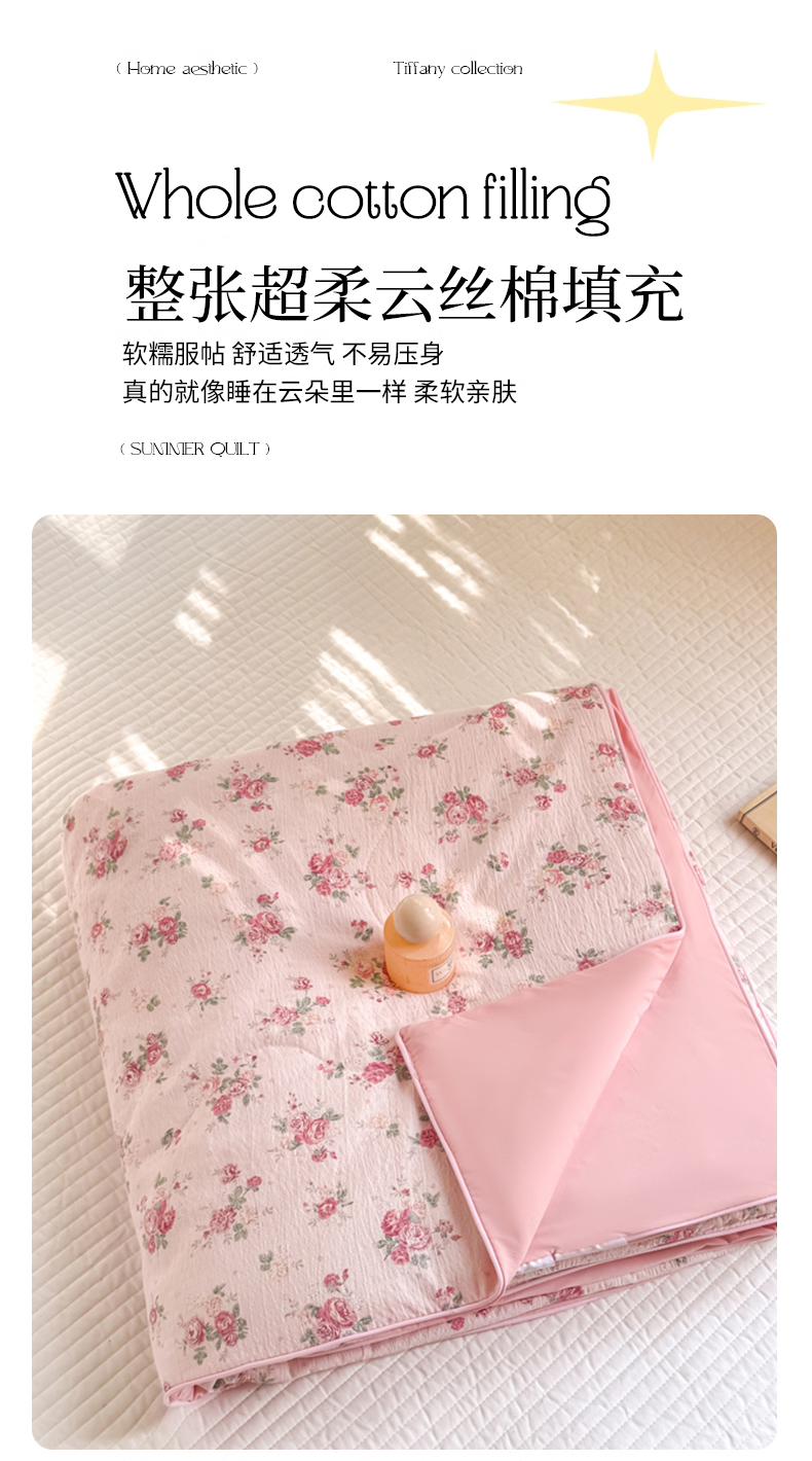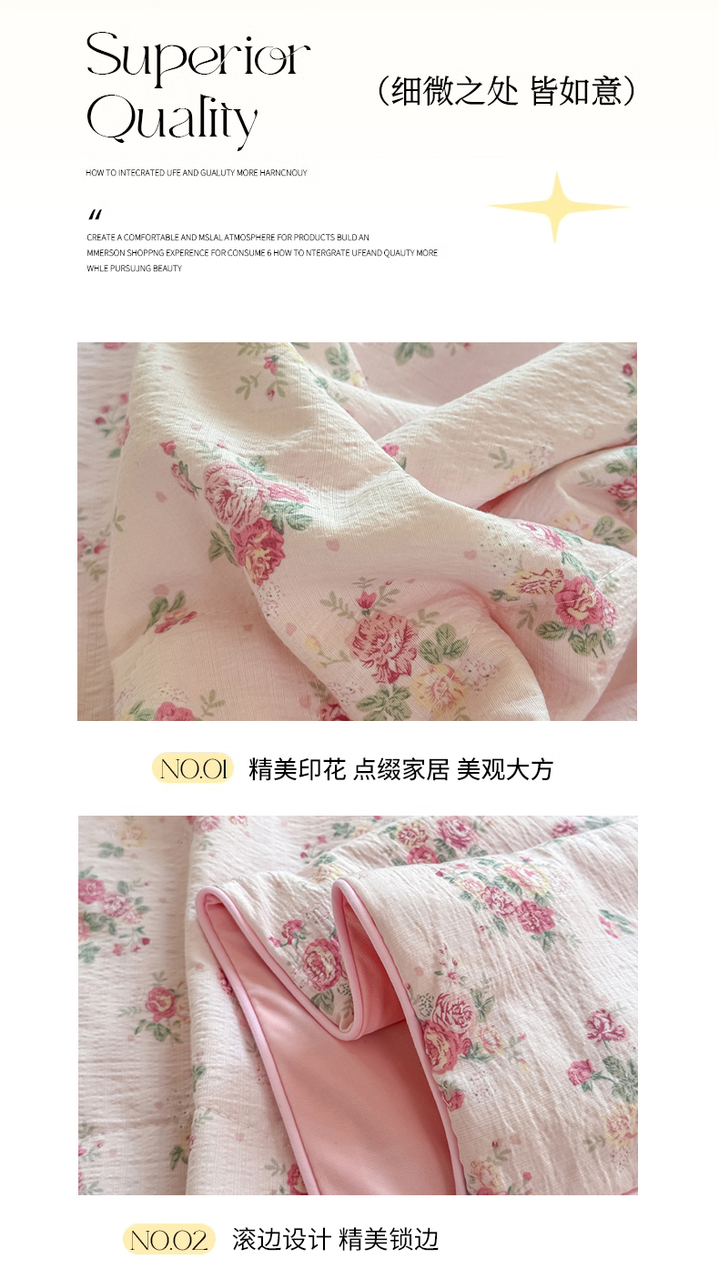 商品名称:丽美人家纺 2025新款爆款双拼皱皱纱冰皮被夏被夏凉被空调被 冰皮-春意