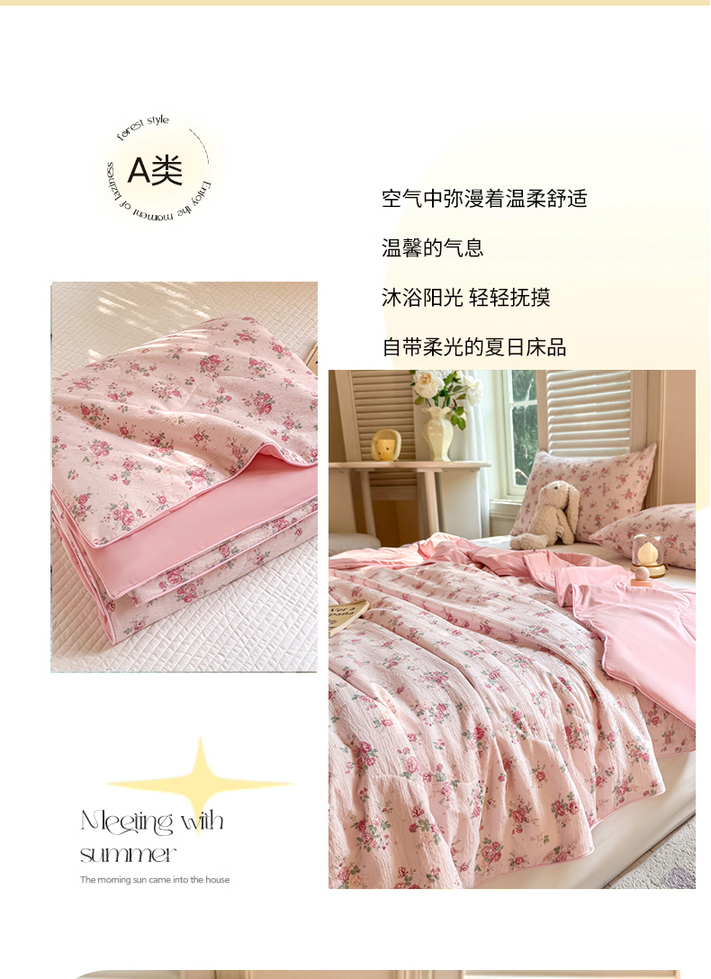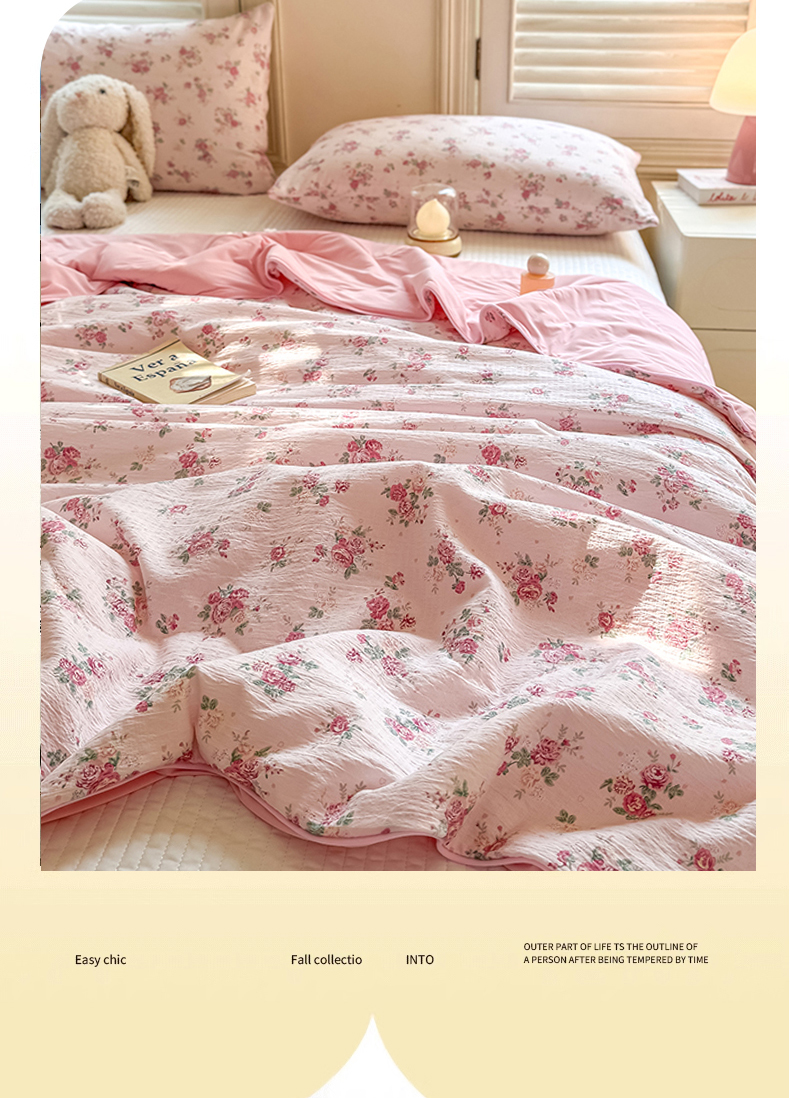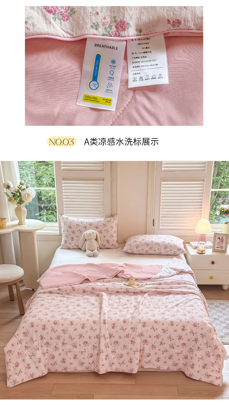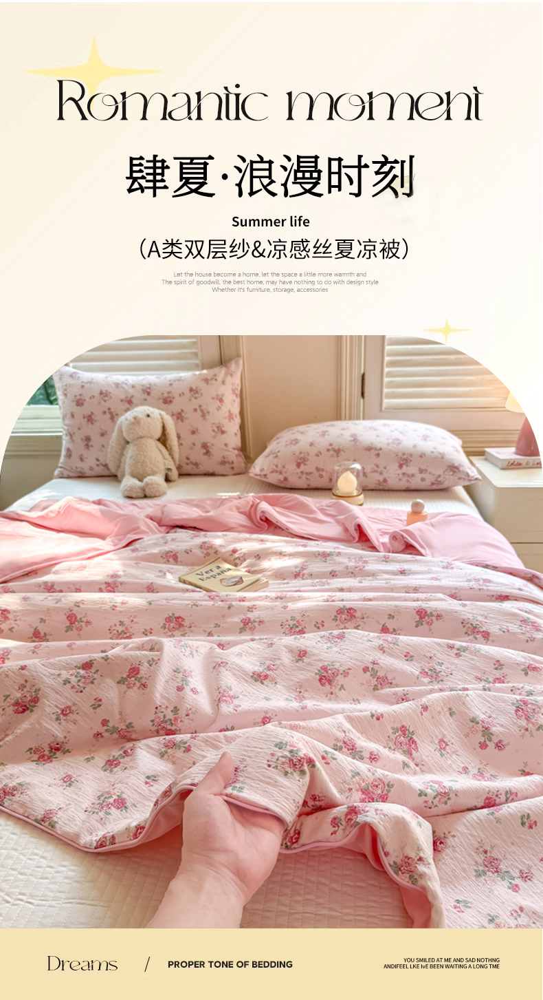 商品名称:丽美人家纺 2025新款爆款双拼皱皱纱冰皮被夏被夏凉被空调被 冰皮-春意