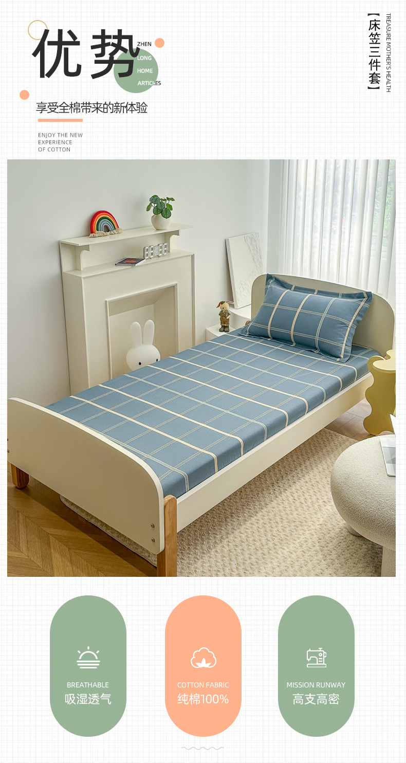 当前位置: 91家纺网 > 商品网购 > 床品套件 > 三件套 > 凌云家纺 2025新款13372全棉学生床笠款三件套 上下铺六件套一整套 绅士蓝