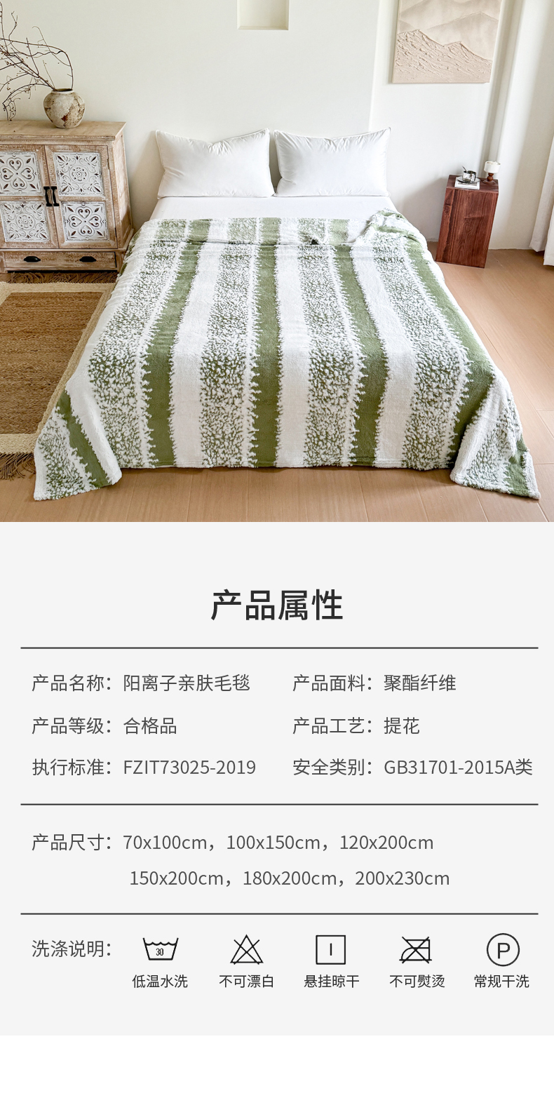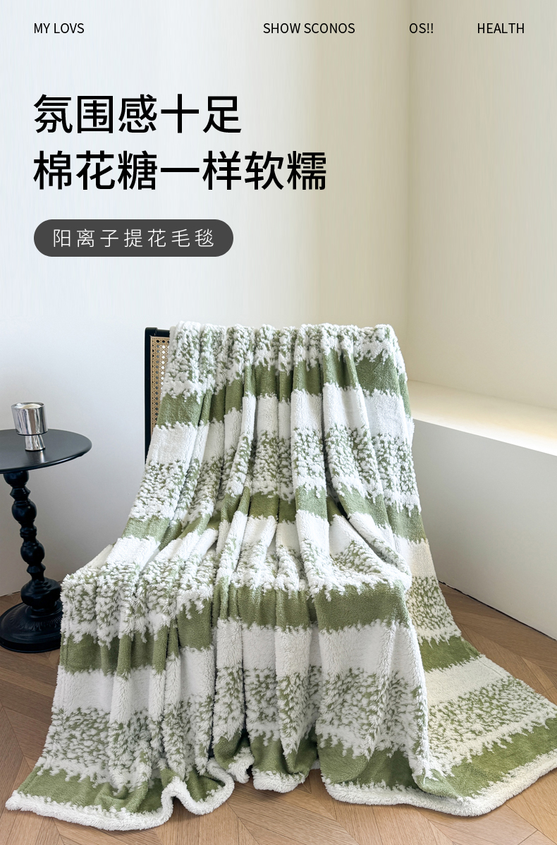 商品名称:丹本家纺 2025新款ins风条纹毛毯提升格调好物清新条纹风毛毯跨境电商阳离子提花简约时尚毯毛毯毯子 绿