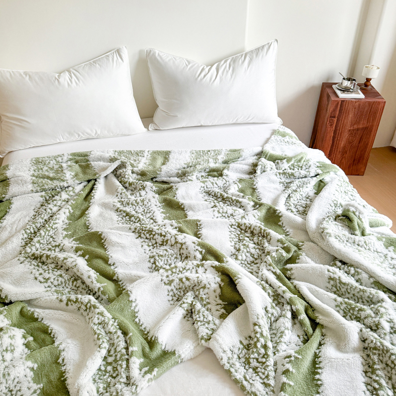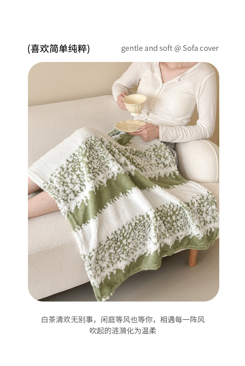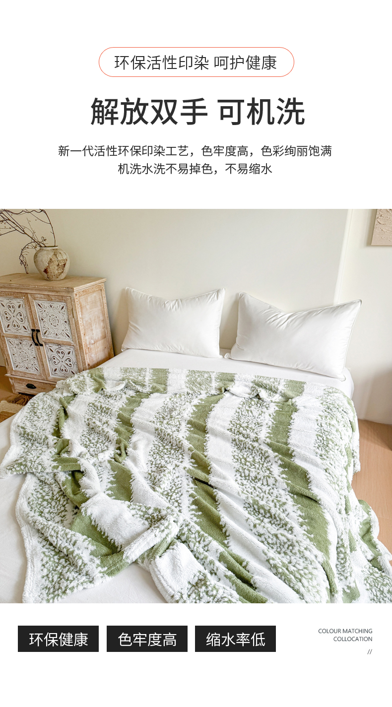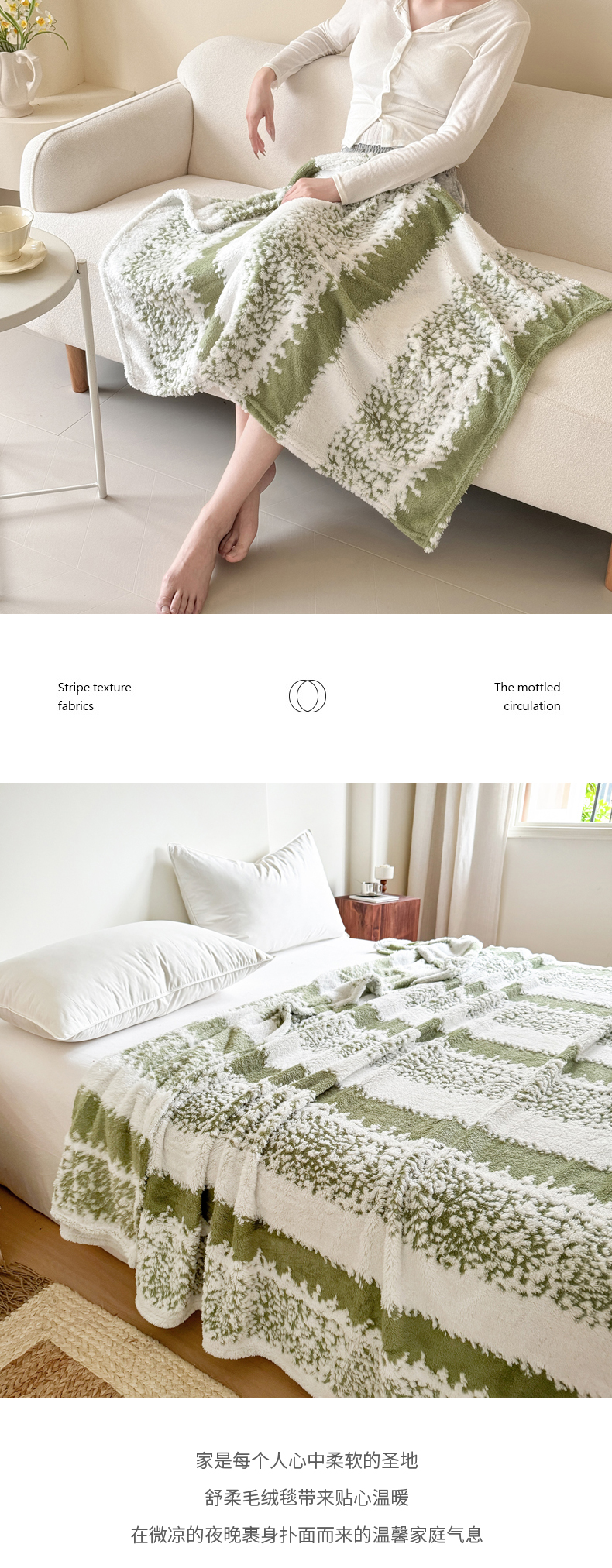 丹本家纺 2025新款ins风条纹毛毯提升格调好物清新条纹风毛毯跨境电商阳离子提花简约时尚毯毛毯毯子 绿