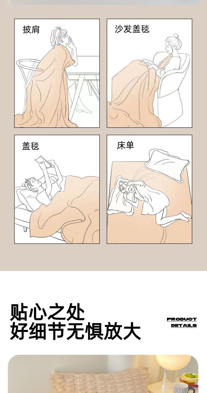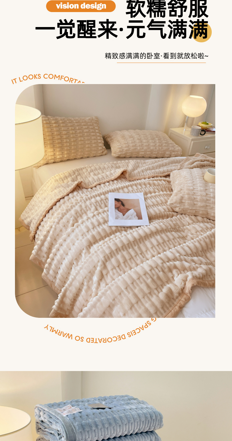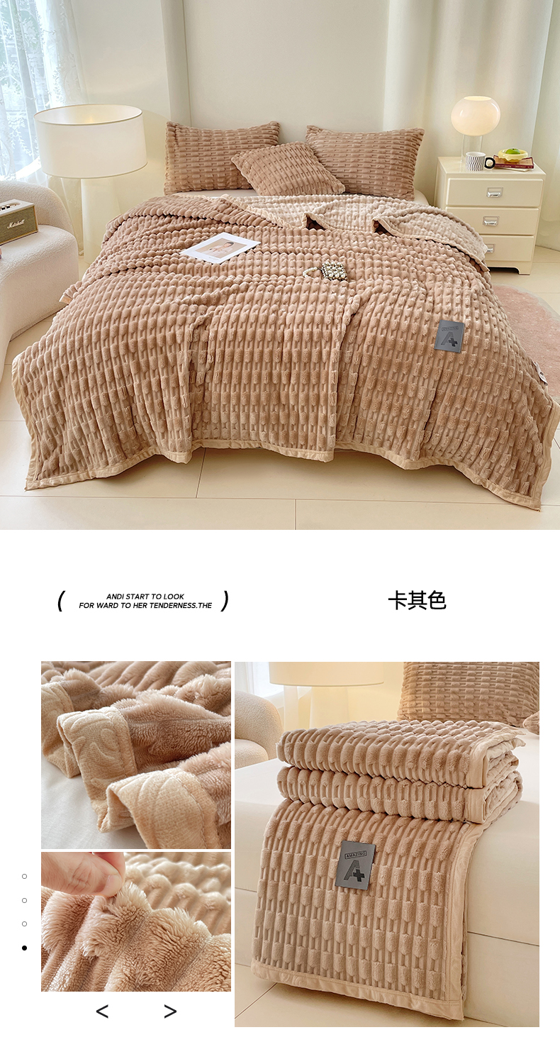 (总)楼兰公主 2025新款竹节绒毛毯,豆沙粉,卡其色,抹茶绿,奶油咖,深灰色,烟雾蓝,组合图仅供参考