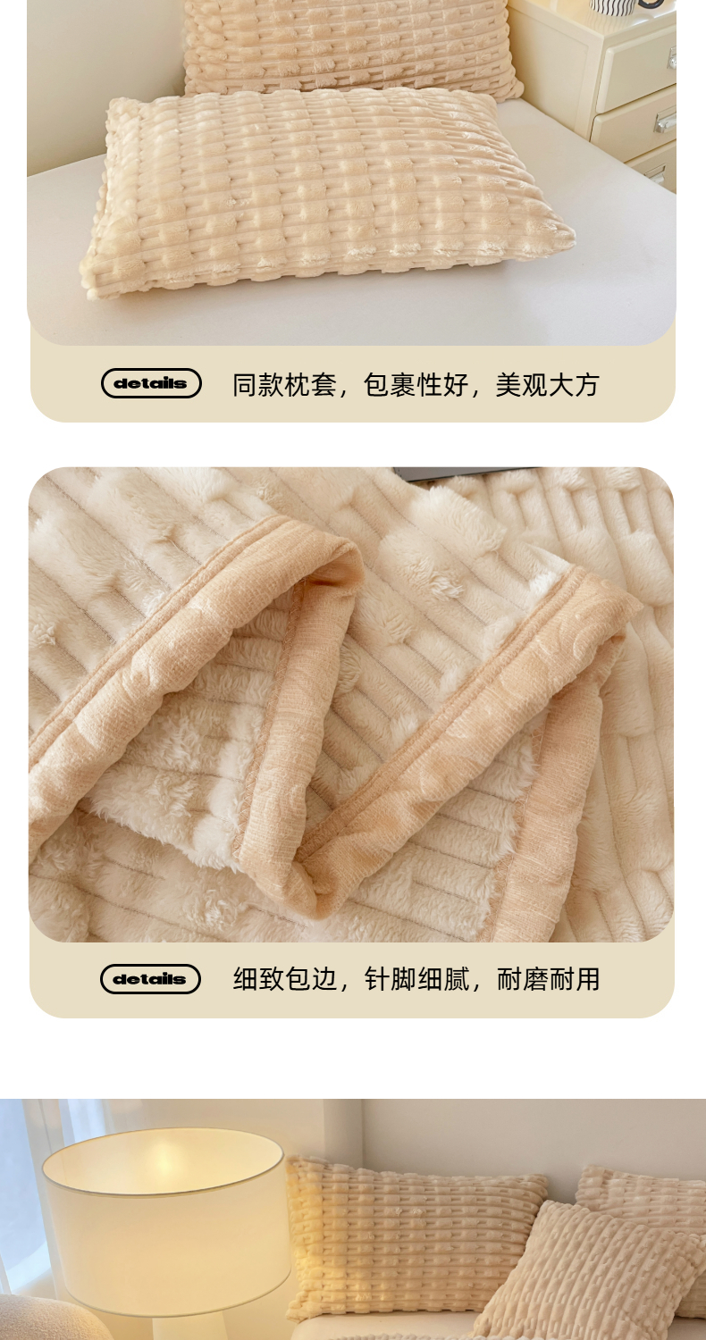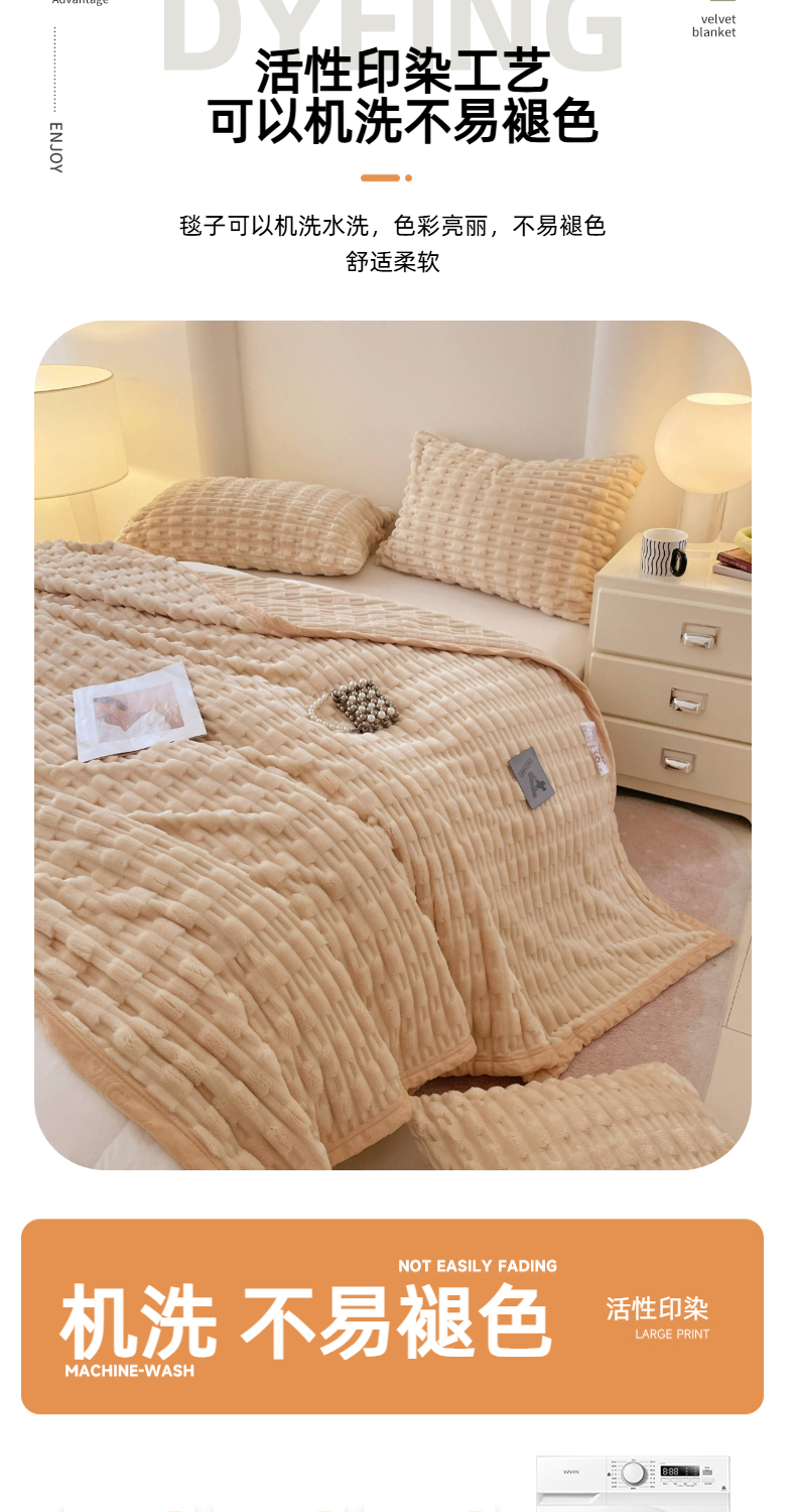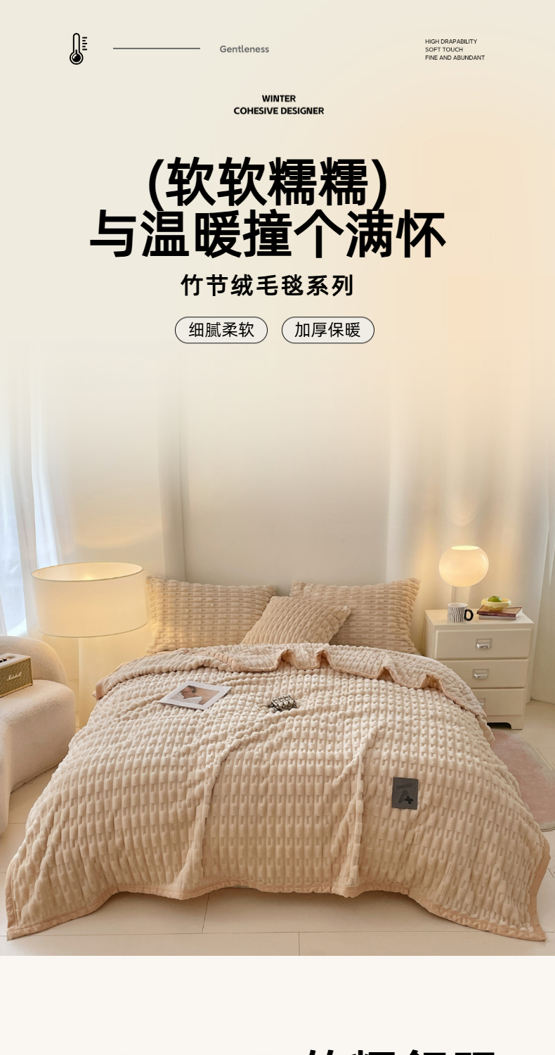 商品名称:楼兰公主 2025新款竹节绒毛毯 奶油咖