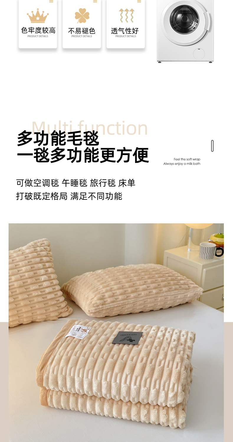 (总)楼兰公主毛毯专供 2025新款300克韩式风阳离子抽条毛毯,阳离子-粉,阳离子-黄,阳离子-灰,阳离子-咖,阳离子-蓝,阳离子-紫