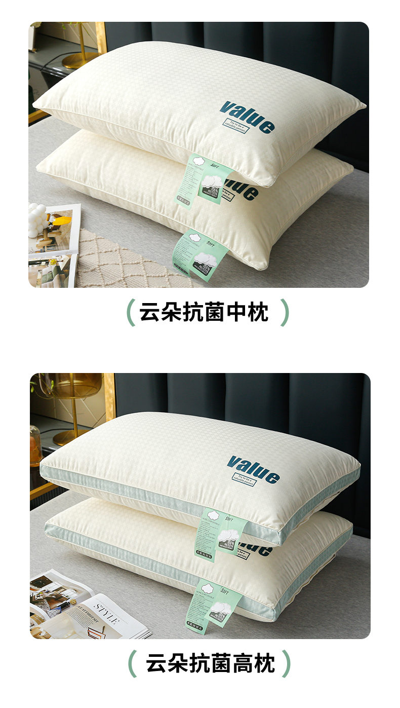 当前位置: 91家纺网 > 商品网购 > 枕头/枕芯/保健枕/颈椎枕 > 普通枕芯 > 罗亿家纺 2025新款云朵抗菌舒适枕枕头枕芯 云朵抗菌立体高枕 48*74cm/只