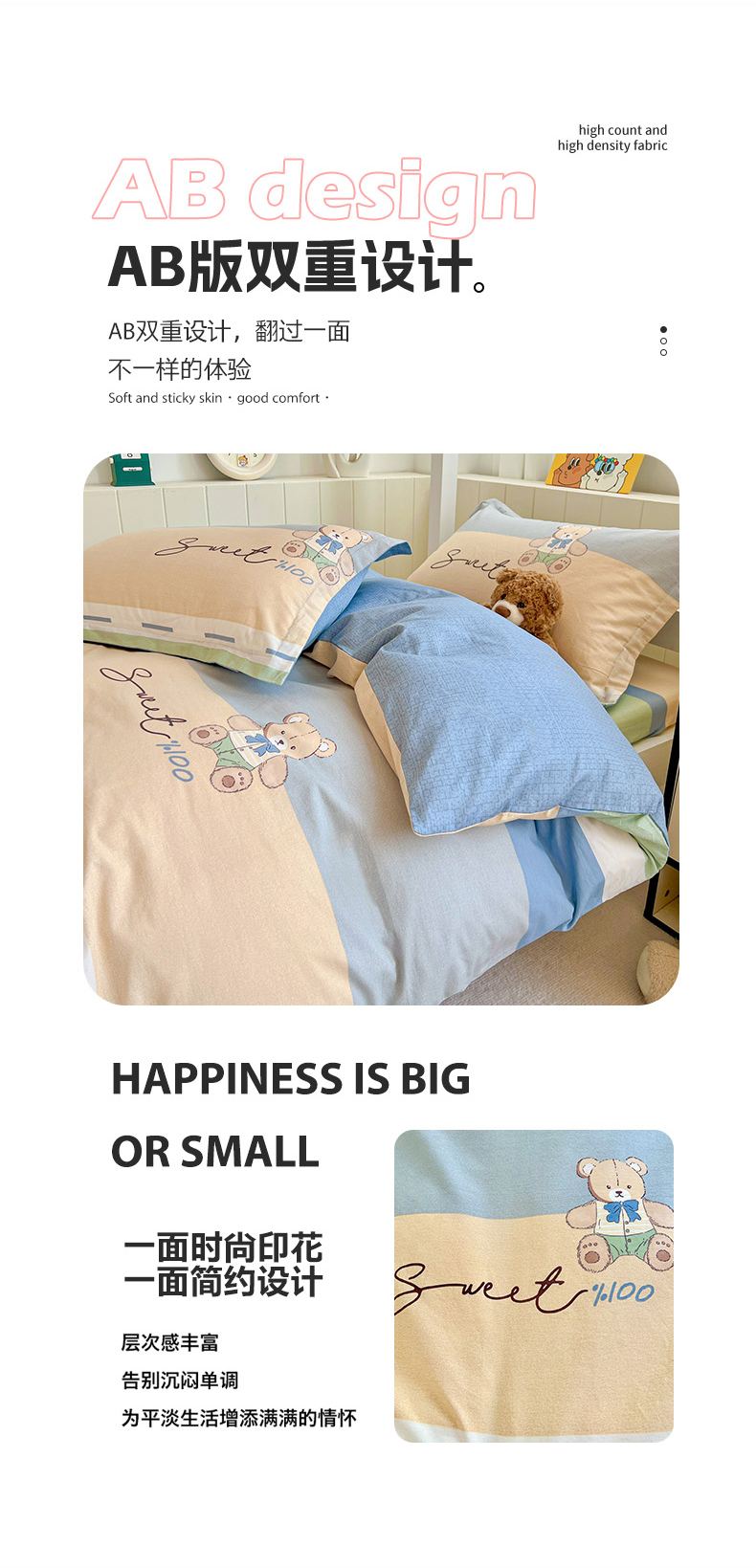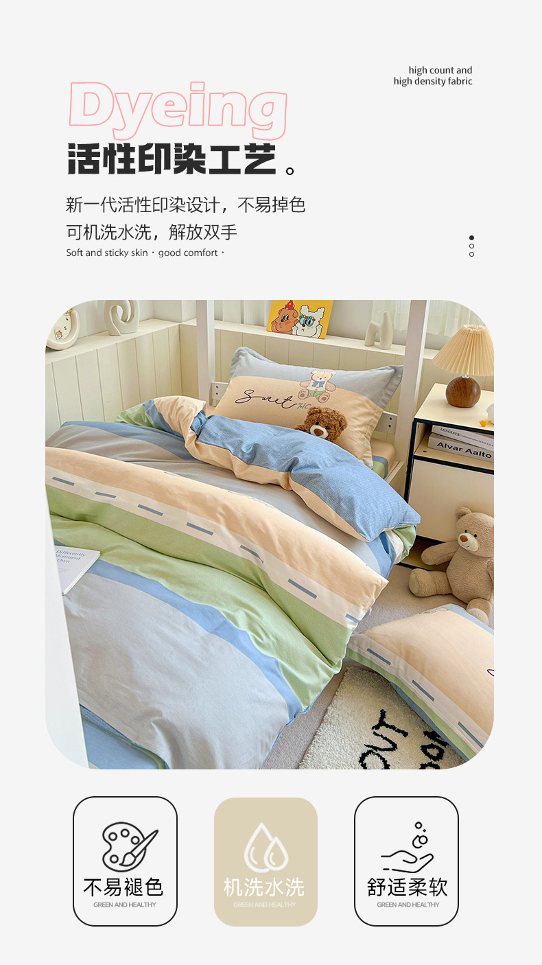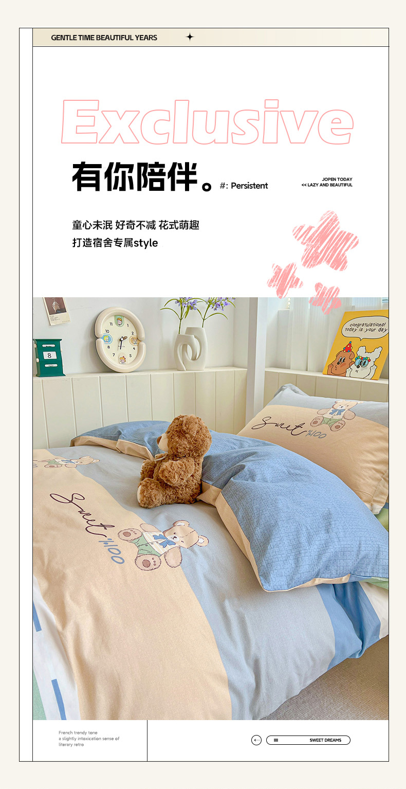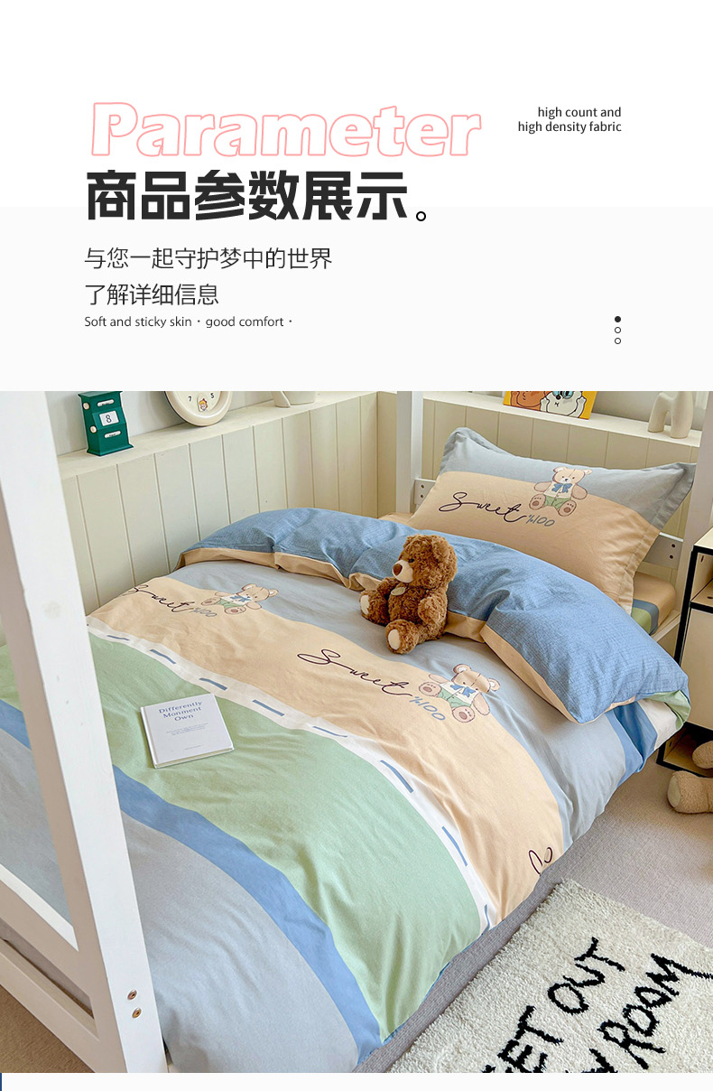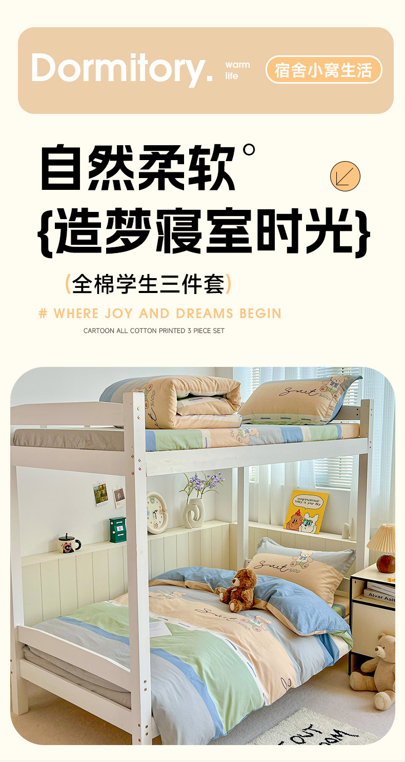 商品名称:春雨家居 2025新款学生季全棉三件套(预留缩水) 5.摩登熊宝