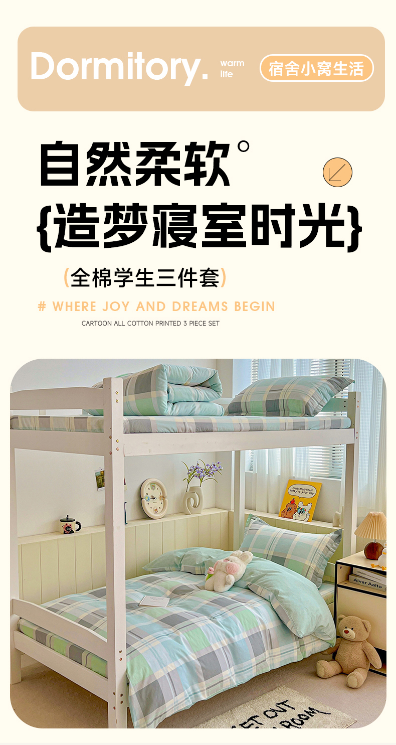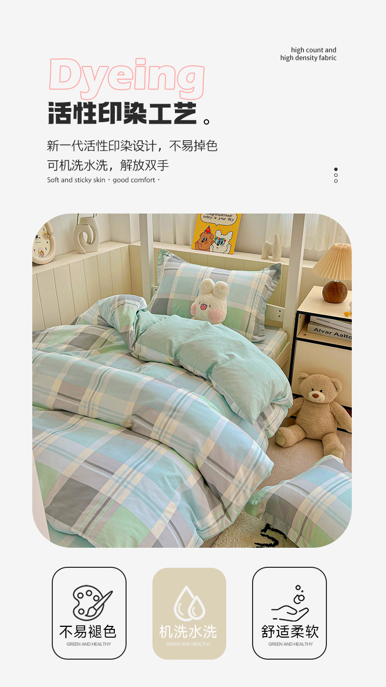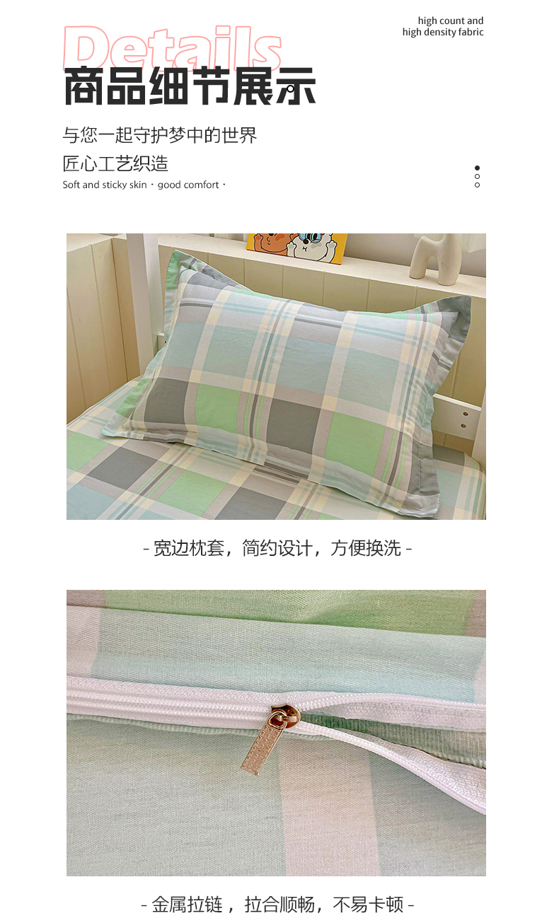 商品名称:春雨家居 2025新款学生季全棉三件套(预留缩水) 15.宜家风尚-绿