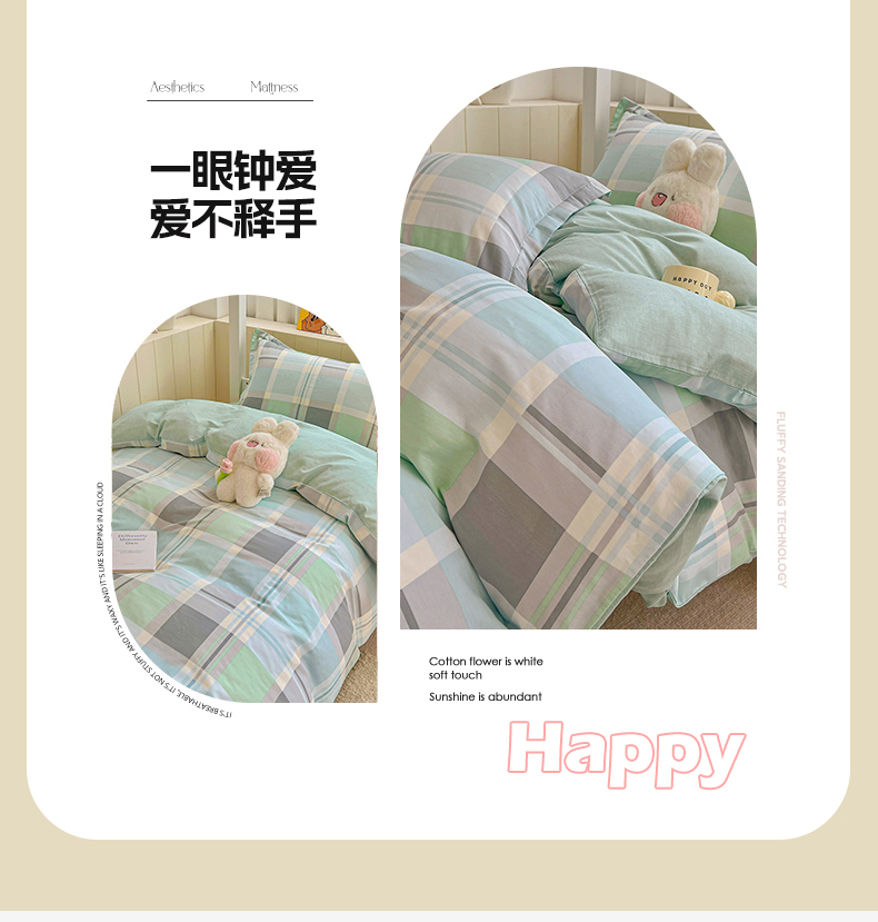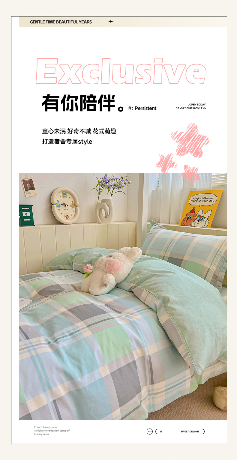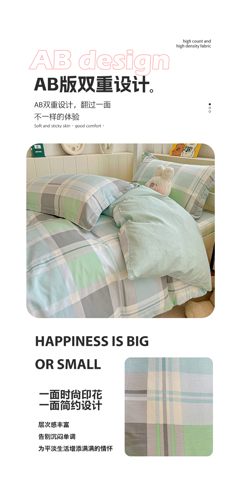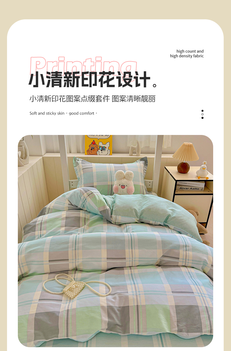 商品名称:春雨家居 2025新款学生季全棉三件套(预留缩水) 15.宜家风尚-绿