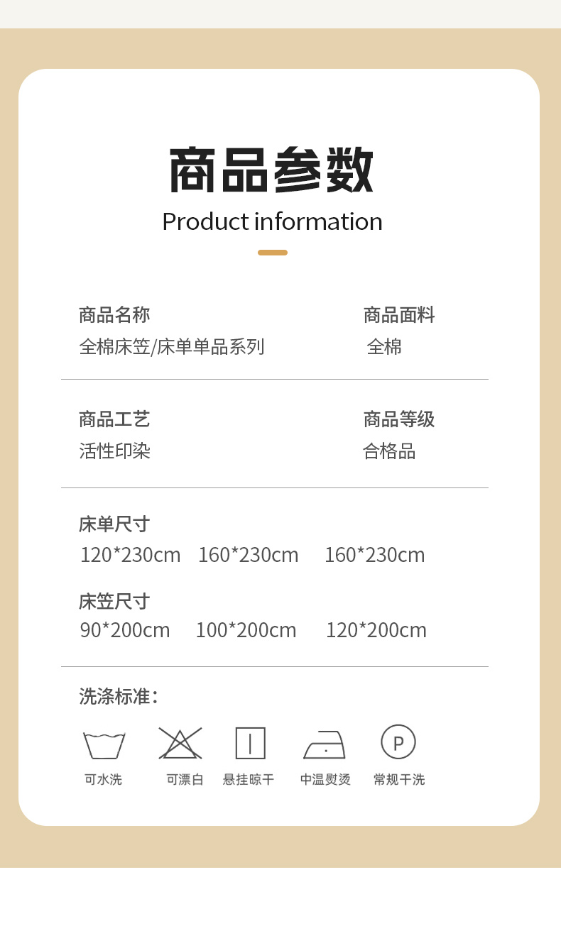 床单/床笠尺寸 12