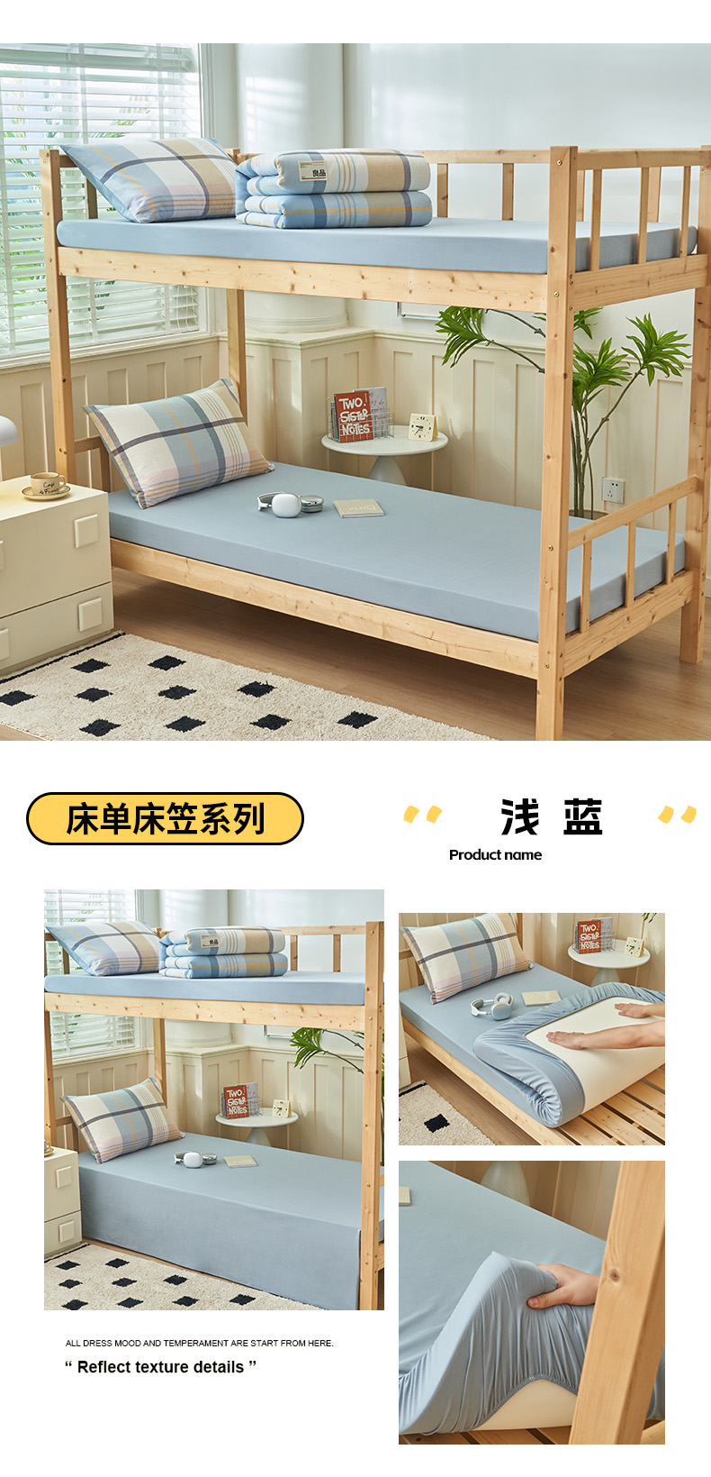 寐绸2025家纺学生季床单床笠 浅蓝