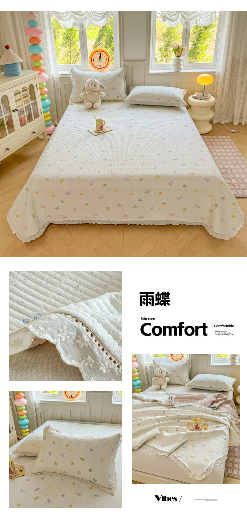 商品名称:源舜 2025新款云感双层纱全棉法式花边床盖三件套 雨蝶
