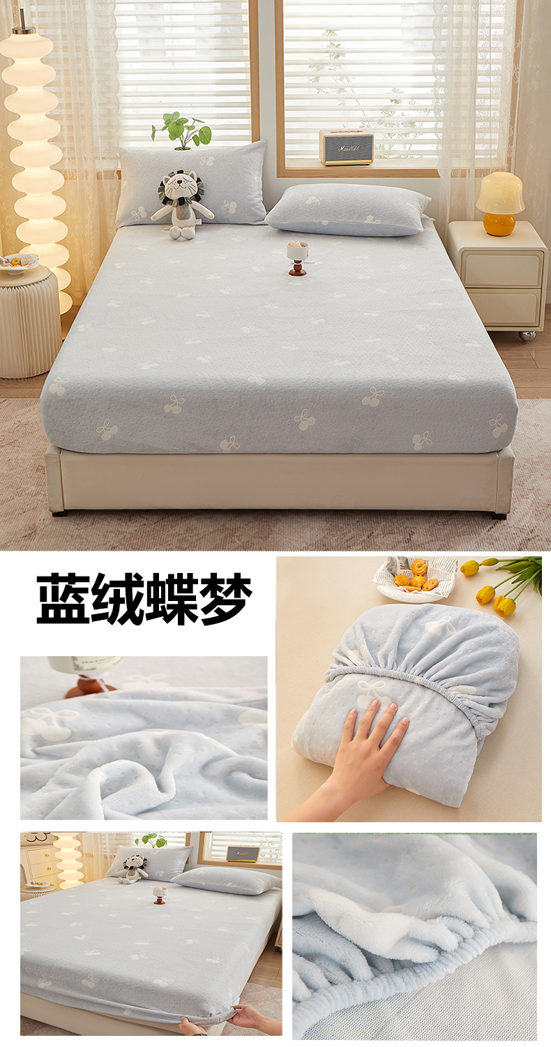 楼兰公主 2025新款雕花绒床笠 蓝绒蝶梦