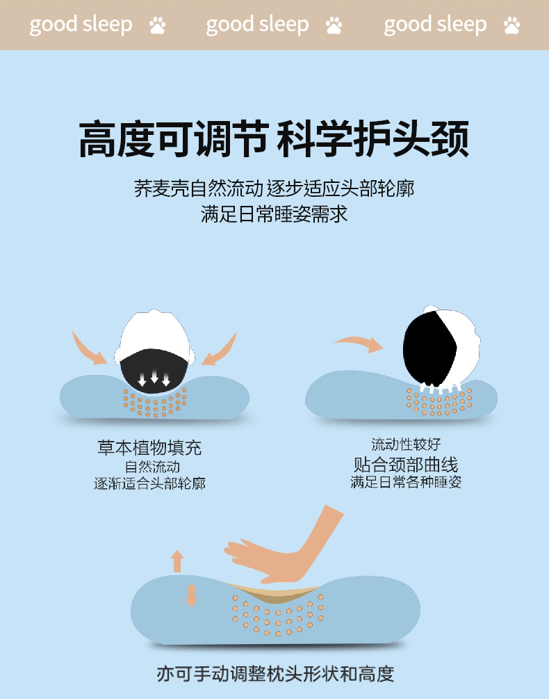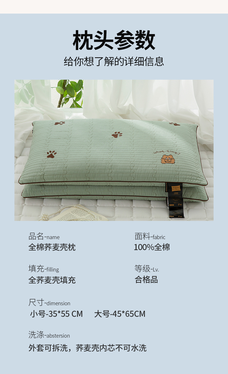 商品名称:(总)仁宇枕业 2025新款新品全棉绣花单人成人儿童甜梦小时光虎爪系列全荞麦枕头枕芯