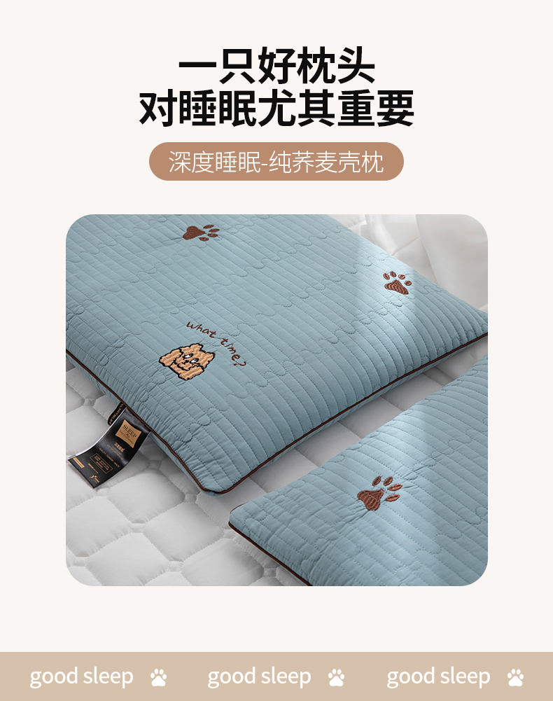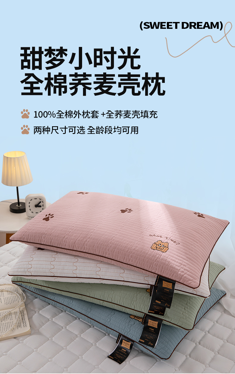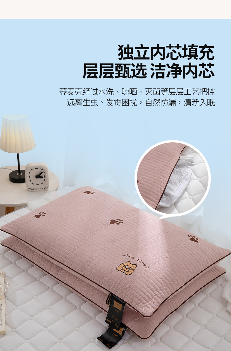 (总)仁宇枕业 2025新款新品全棉绣花单人成人儿童甜梦小时光虎爪系列全荞麦枕头枕芯